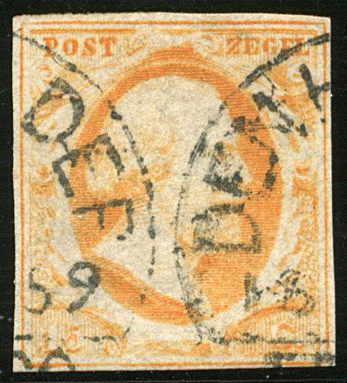 HELDER A (de H/S 250) op 15 cent nr. 3b, pos. 100. Vol tot breed gerande prachtzegel met zeer mooie, volledige afst. (Image)