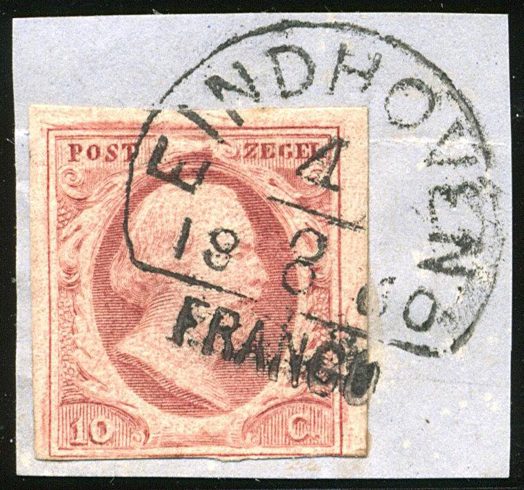 EINDHOVEN C type II (de H/S 150) op 10 cent nr. 2j-Pl.V-81. Zegel met drie mooie randen, onder zeer smal tot aangesneden, op knipsel met prachtige afst.