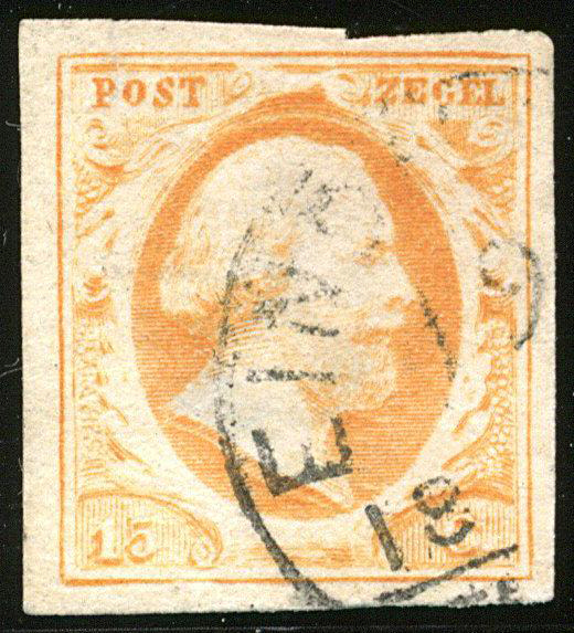 ENKHUIZEN A (de H/S R) op 15 cent nr. 3a. Zegel met twee smalle en twee brede randen, en heeft een ideale afst. Zeldzaam! (Image)