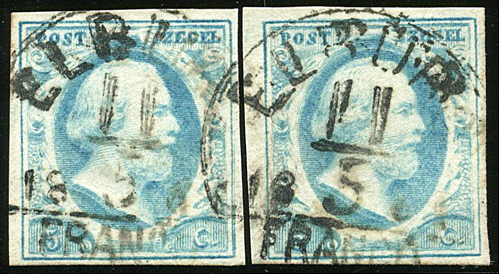 ELBURG C type II (de H/S 350) op 5 cent nr. 1n-Pl.IV-36 en 37. Twee smal tot normaal gerande zegels, ooit een paar vormend, na afweken in tweeën is geknipt