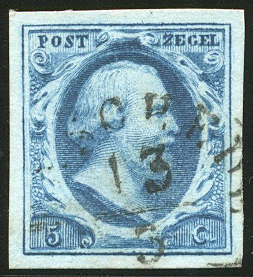 ENKHUIZEN C (de H/S R) op 5 cent. Smal tot normaal gerande zegel met scherp gedeelte van deze zeldzame afst. (Image)
