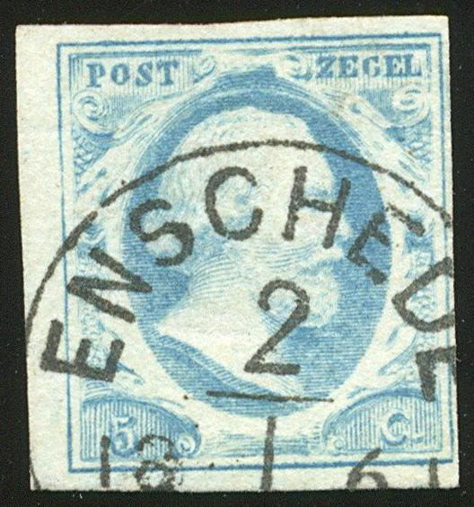 ENSCHEDE A (de H/S R) op 5 cent nr. 1a-Pl.I-59. Prachtige postzegel met een lichte, herkenbare afst. (Image)