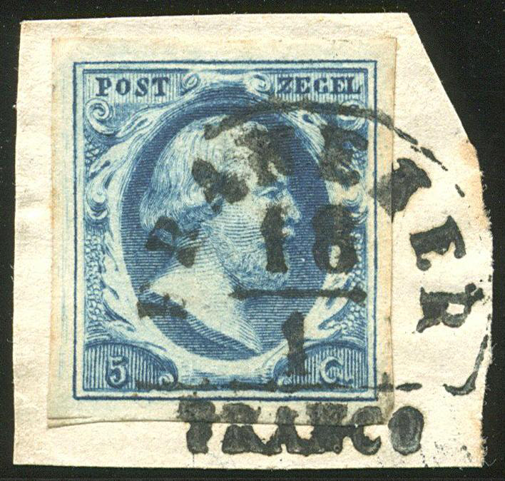 FRANEKER A (de H/S 250) op 5 cent. Vol tot breed gerand prachtex. op knipsel waarop volledige afst. (Image)