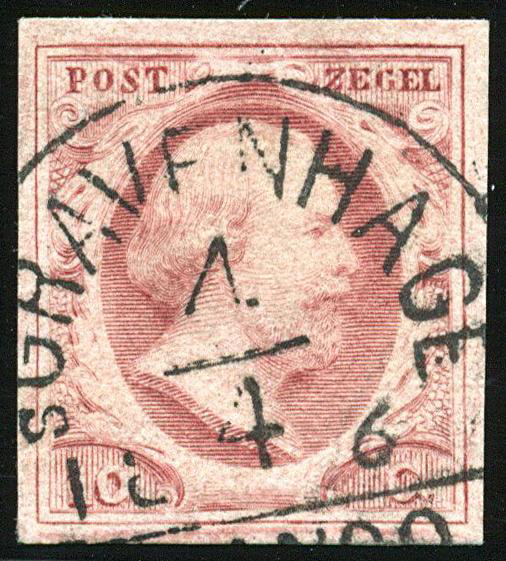 'sGRAVENHAGE C type IX (de H/S 50) op 10 cent nr. 2j-Pl.V. Smal tot breed gerand prachtex. met de mooist bekende afdruk. Afgebeeld in de H/S (Image)