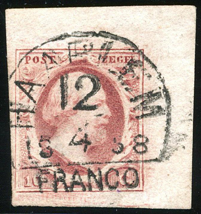 HAARLEM B type I (de H/S 125) op 10 cent nr. 2b-Pl.I-83. Vol tot breed gerand prachtex. met bijna ideale afst. (Image)