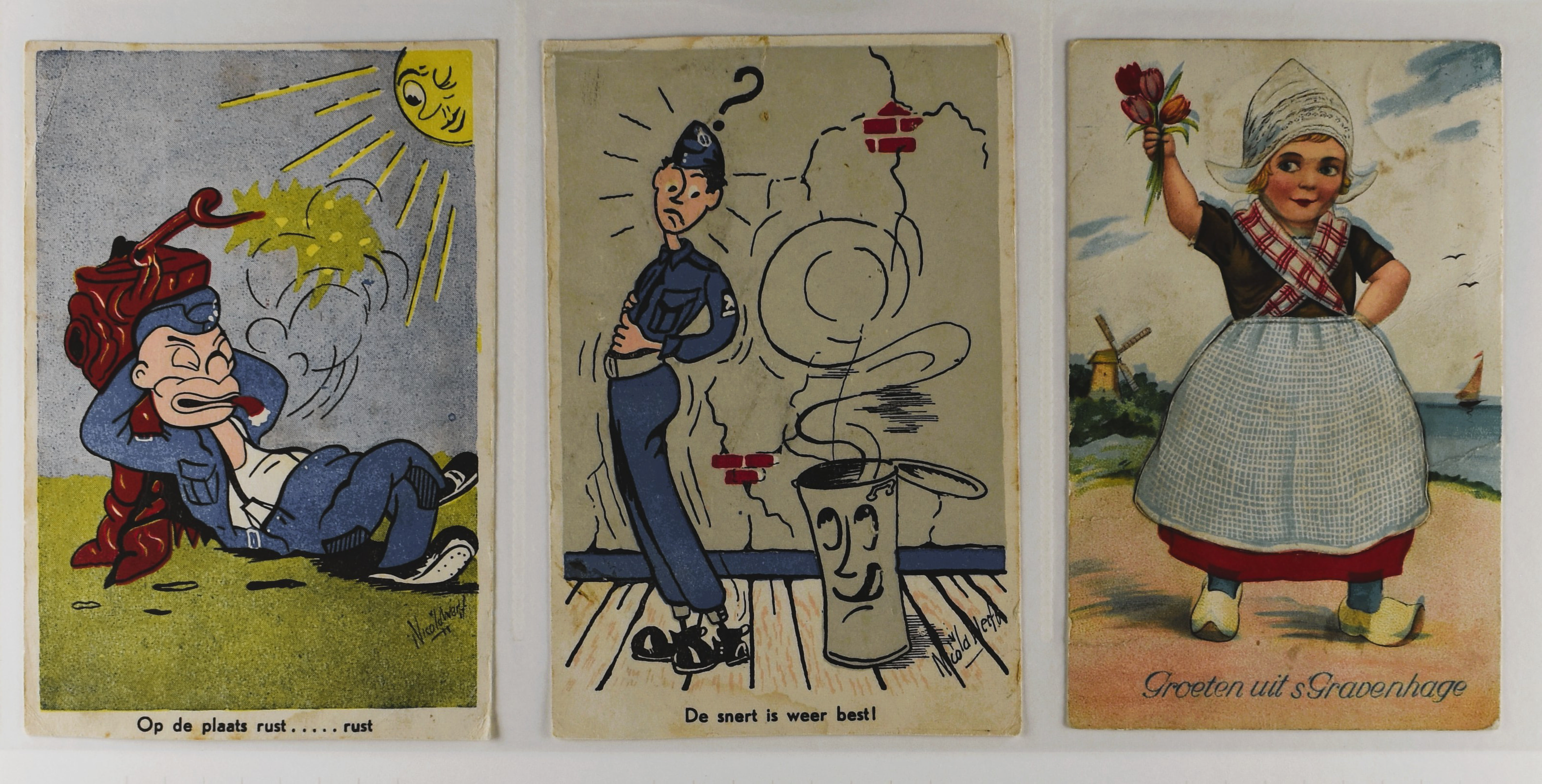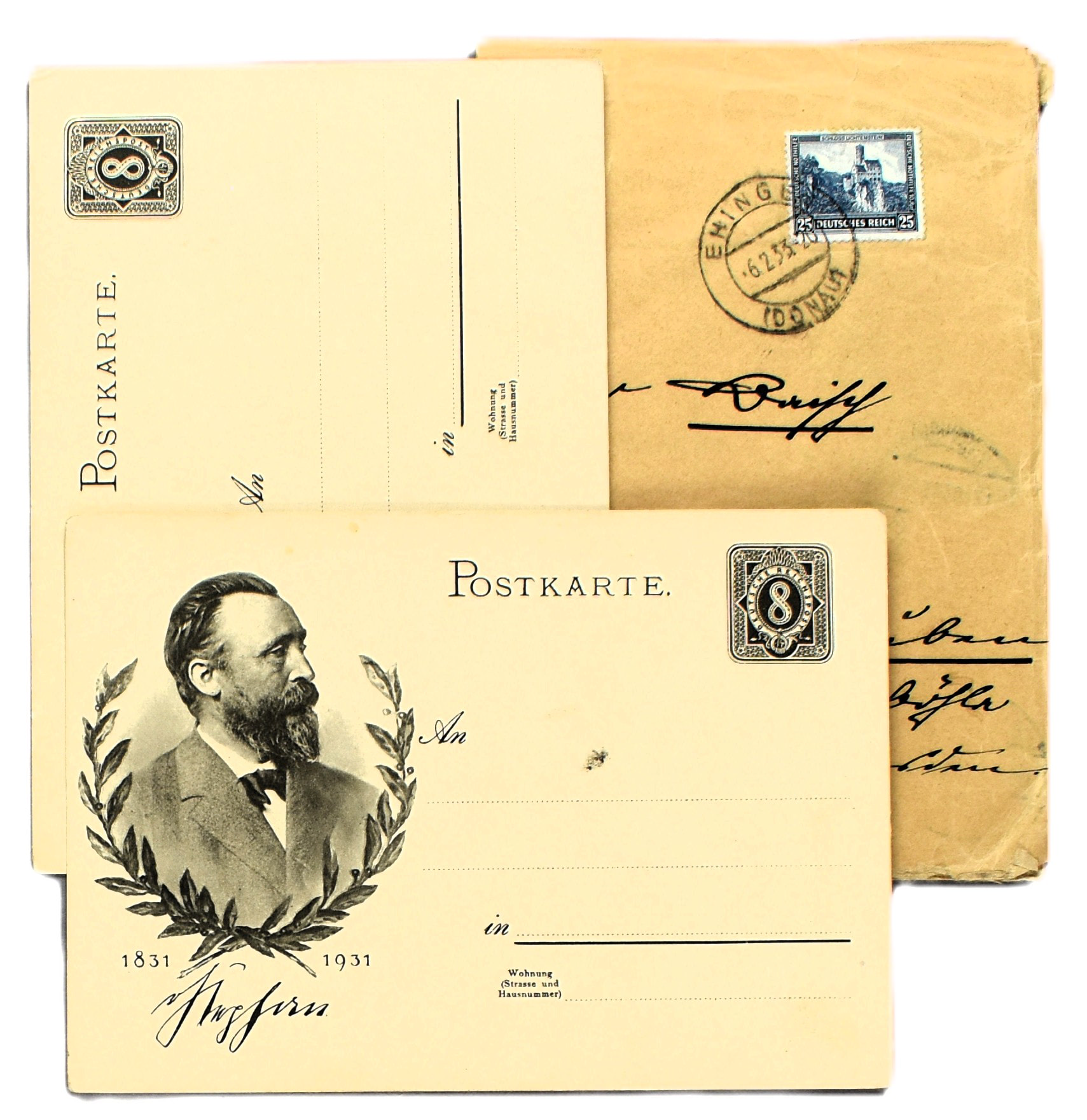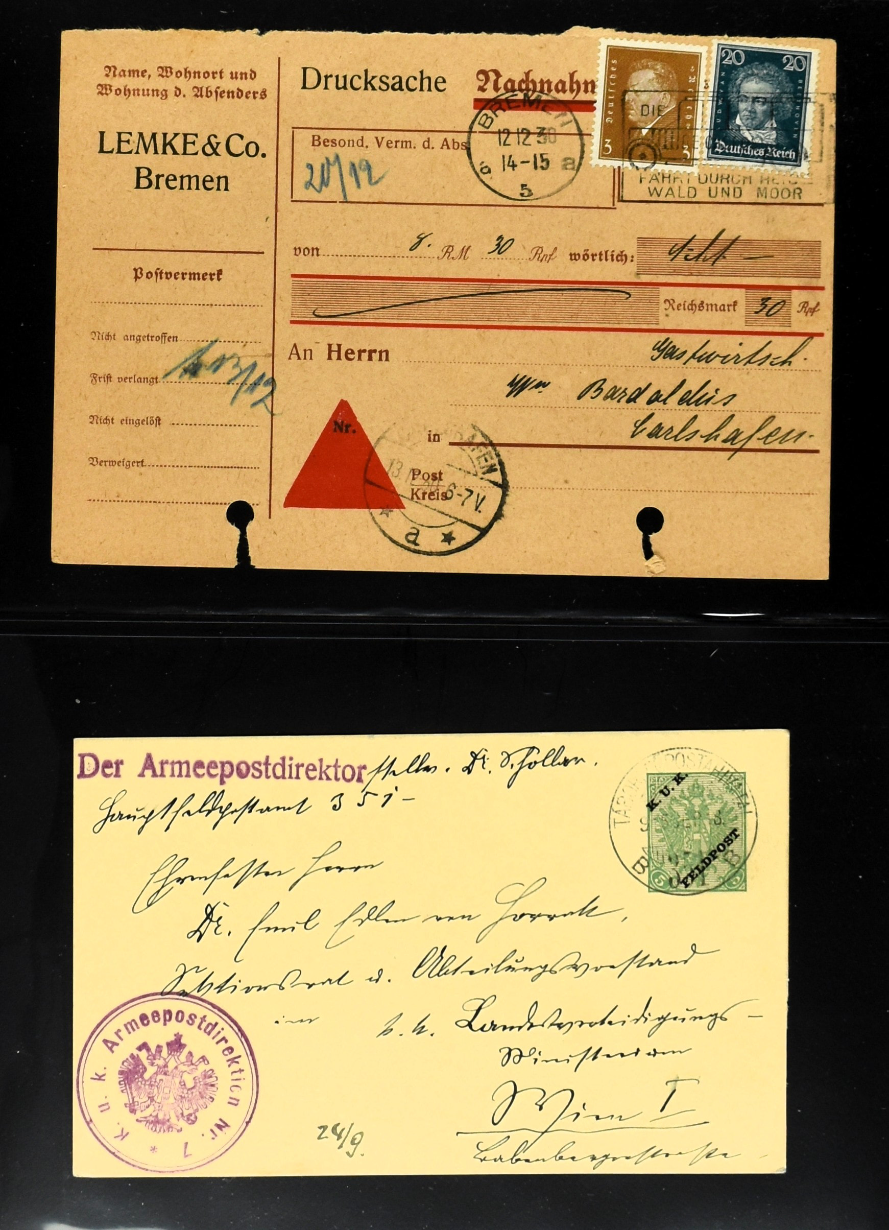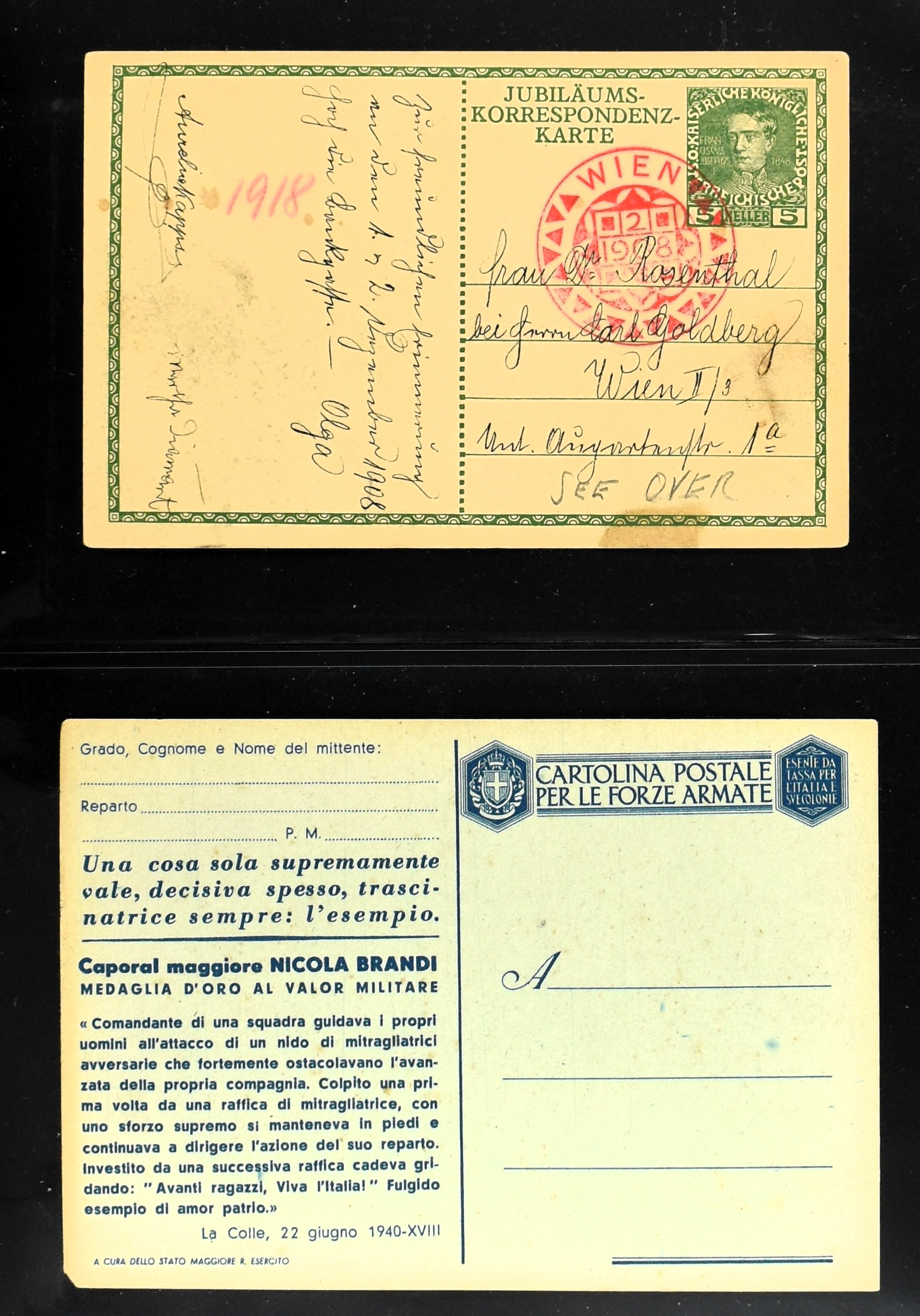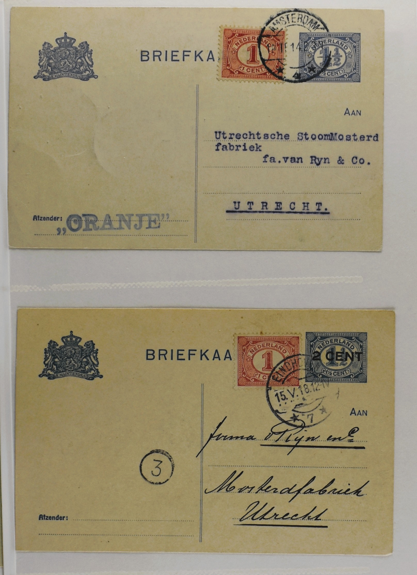 POSTHISTORIE, hoofdzakelijk Nederlandse postwaardestukken en brieven waarbij enkele aardige ex en propaganda-kaarten. (Image) (Image2)