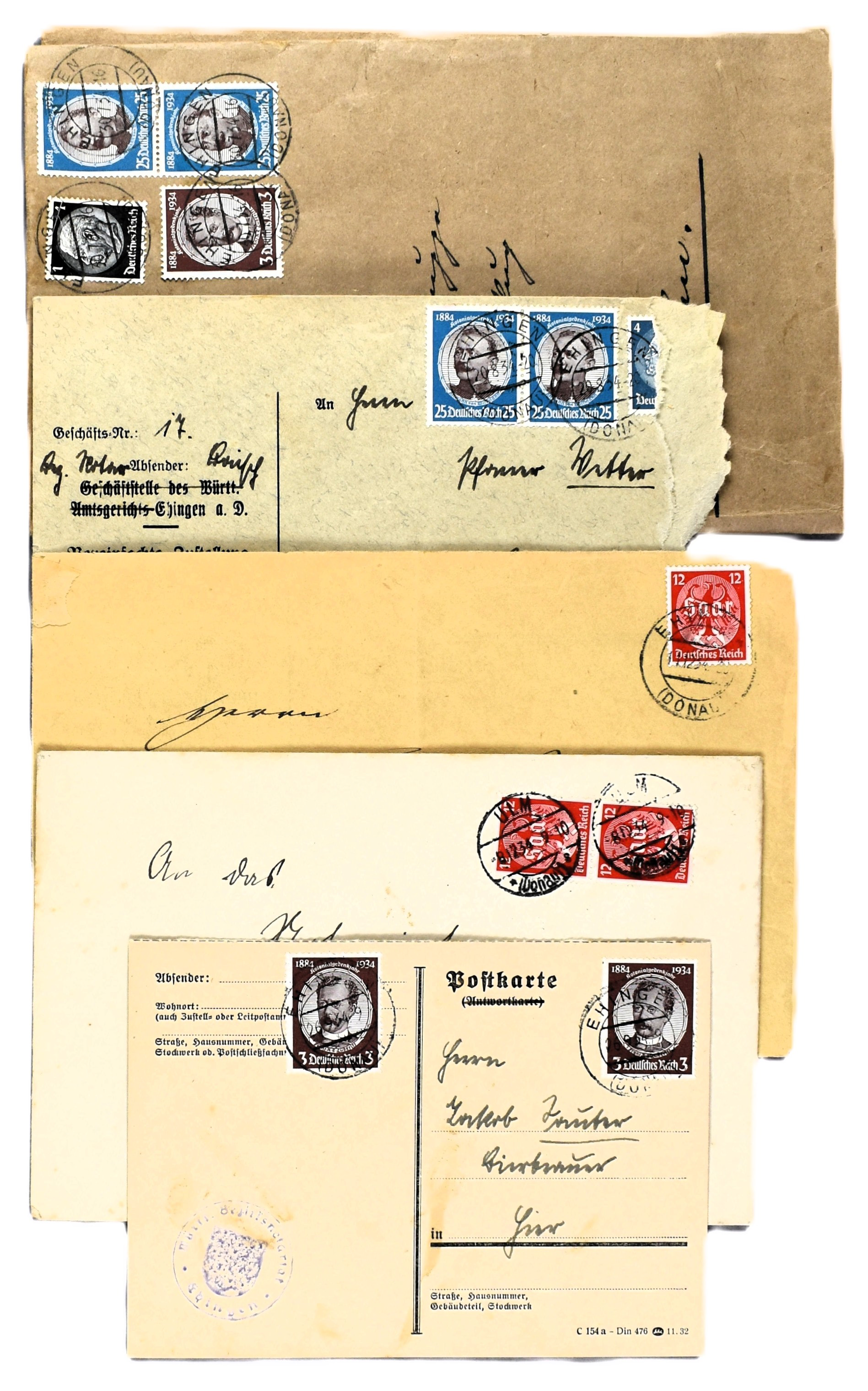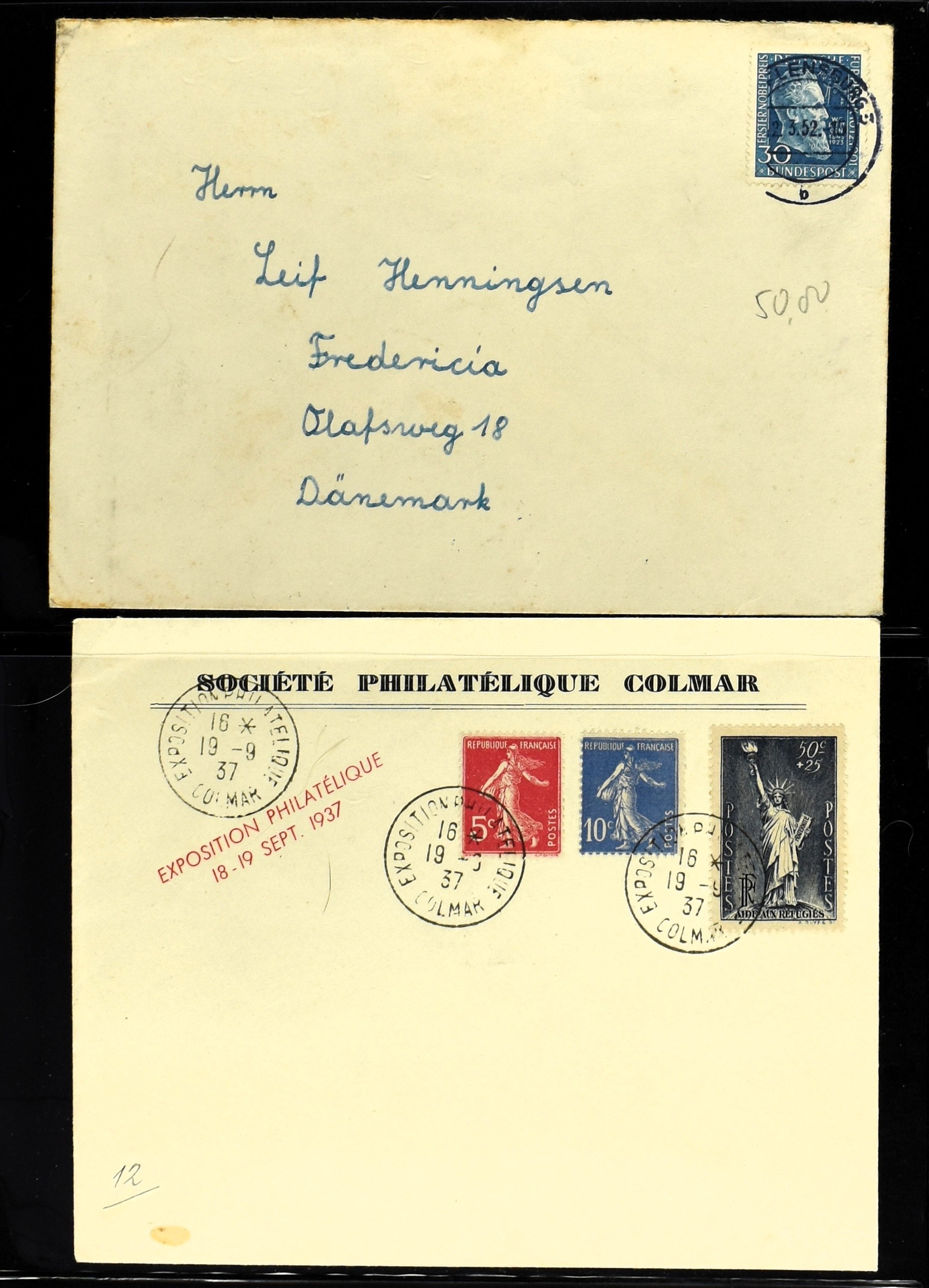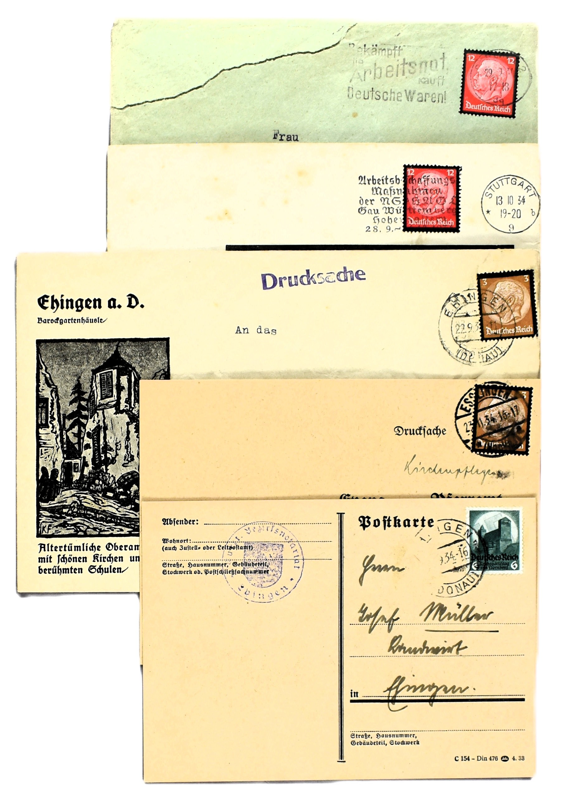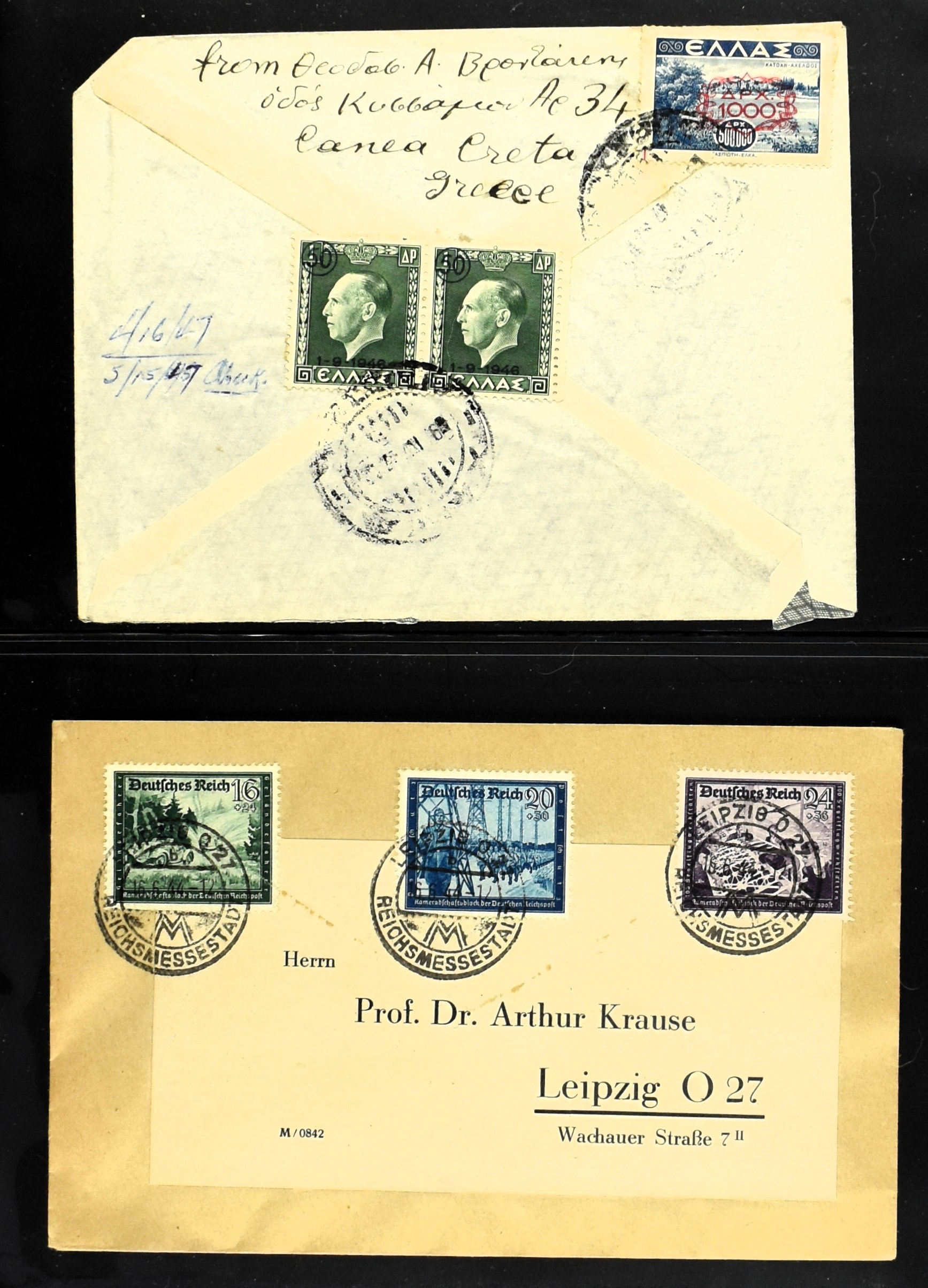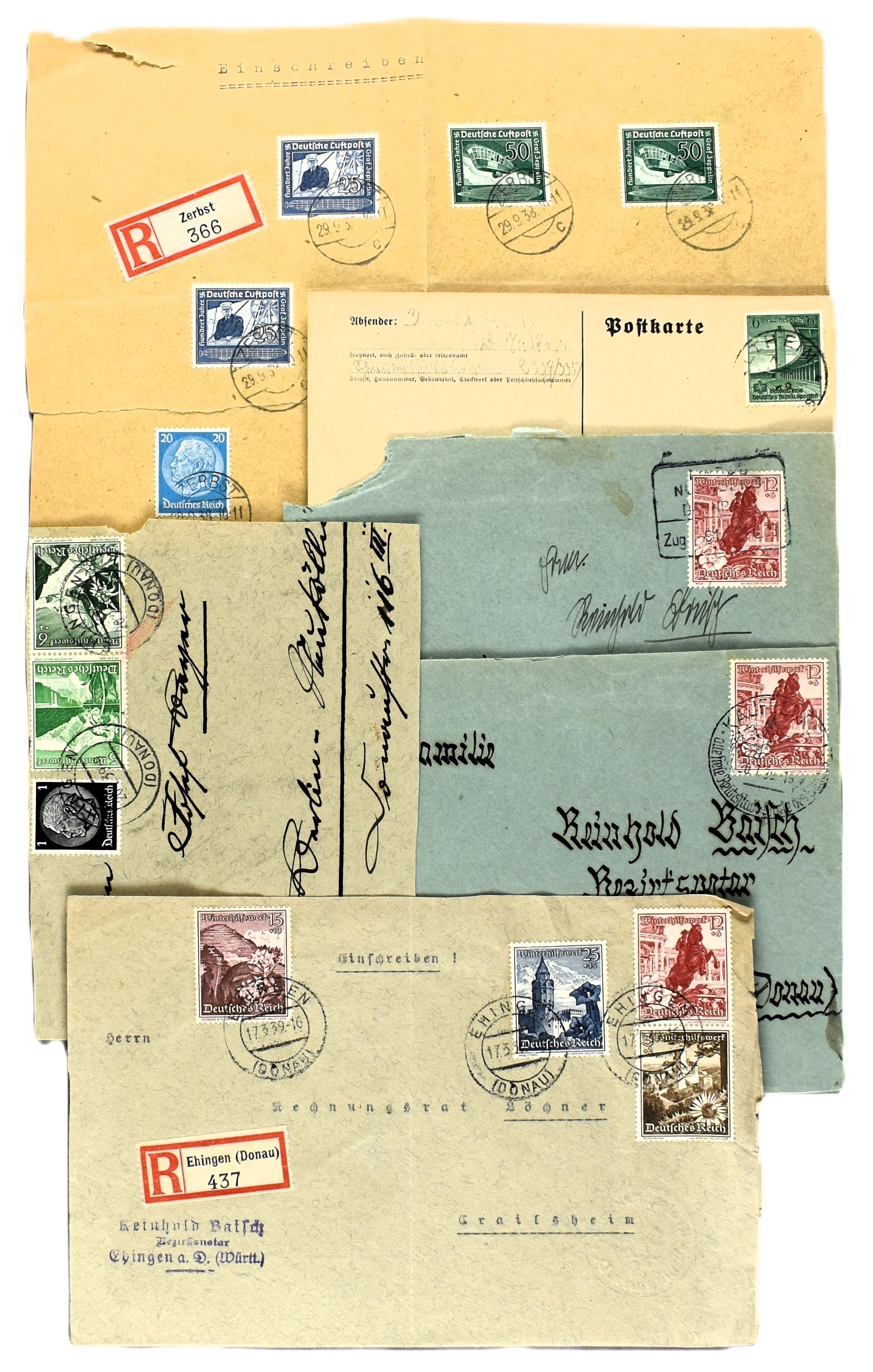 1920-1949, a few hundred covers and cards with several nice frankings and cancellations, many from the "Third Reich" and some not common mixed frankings. (Image)