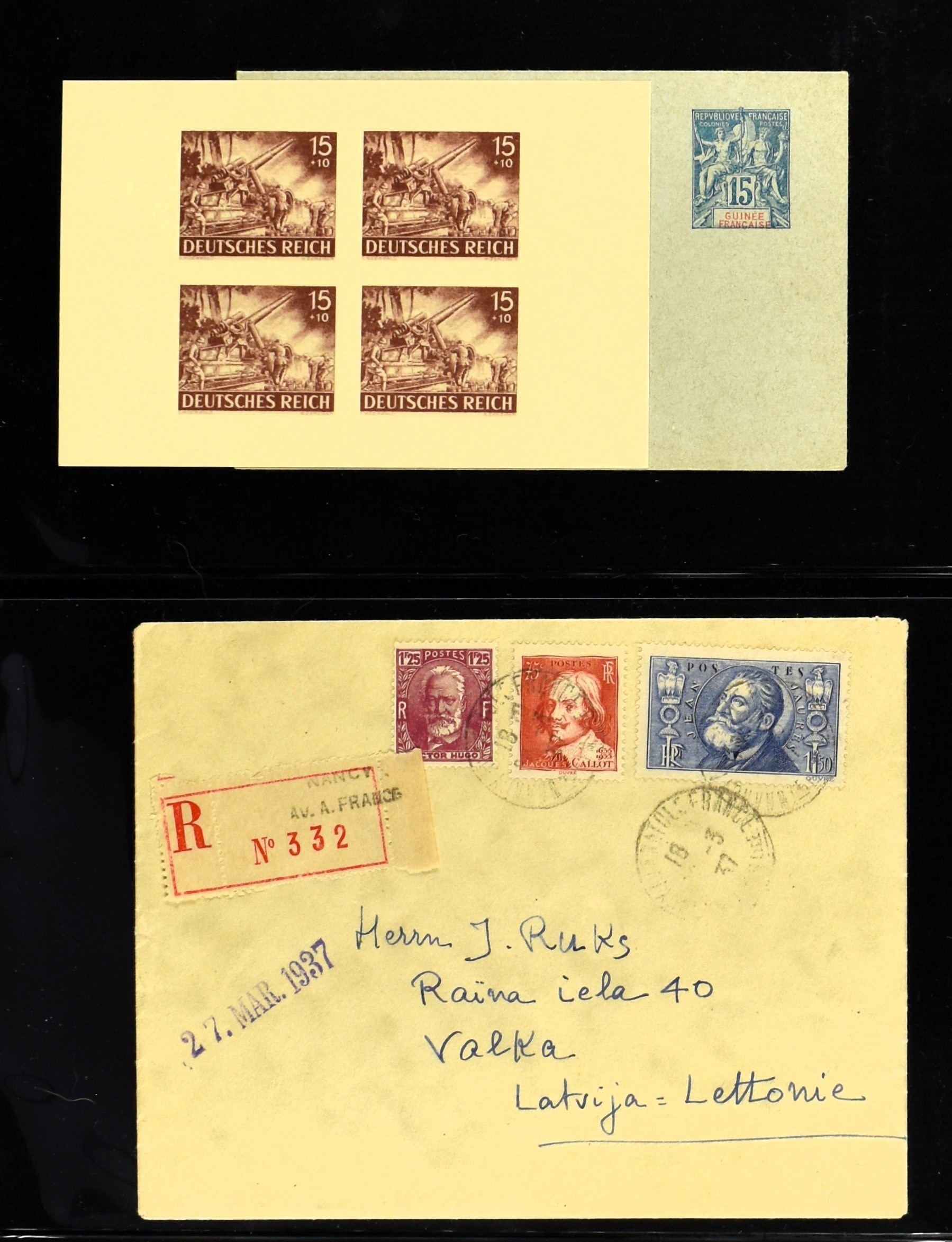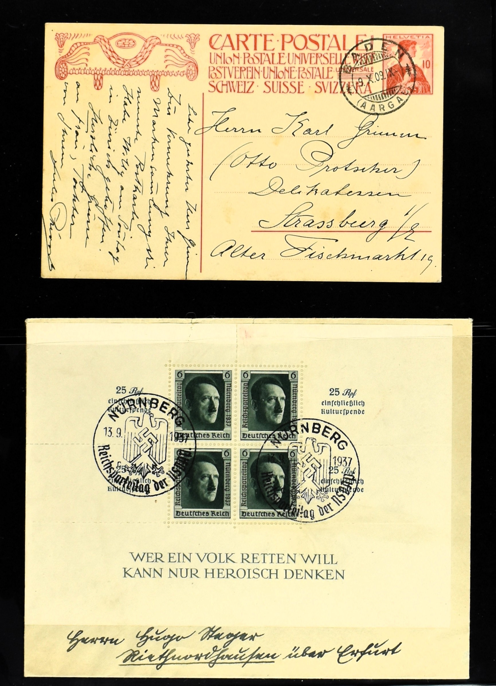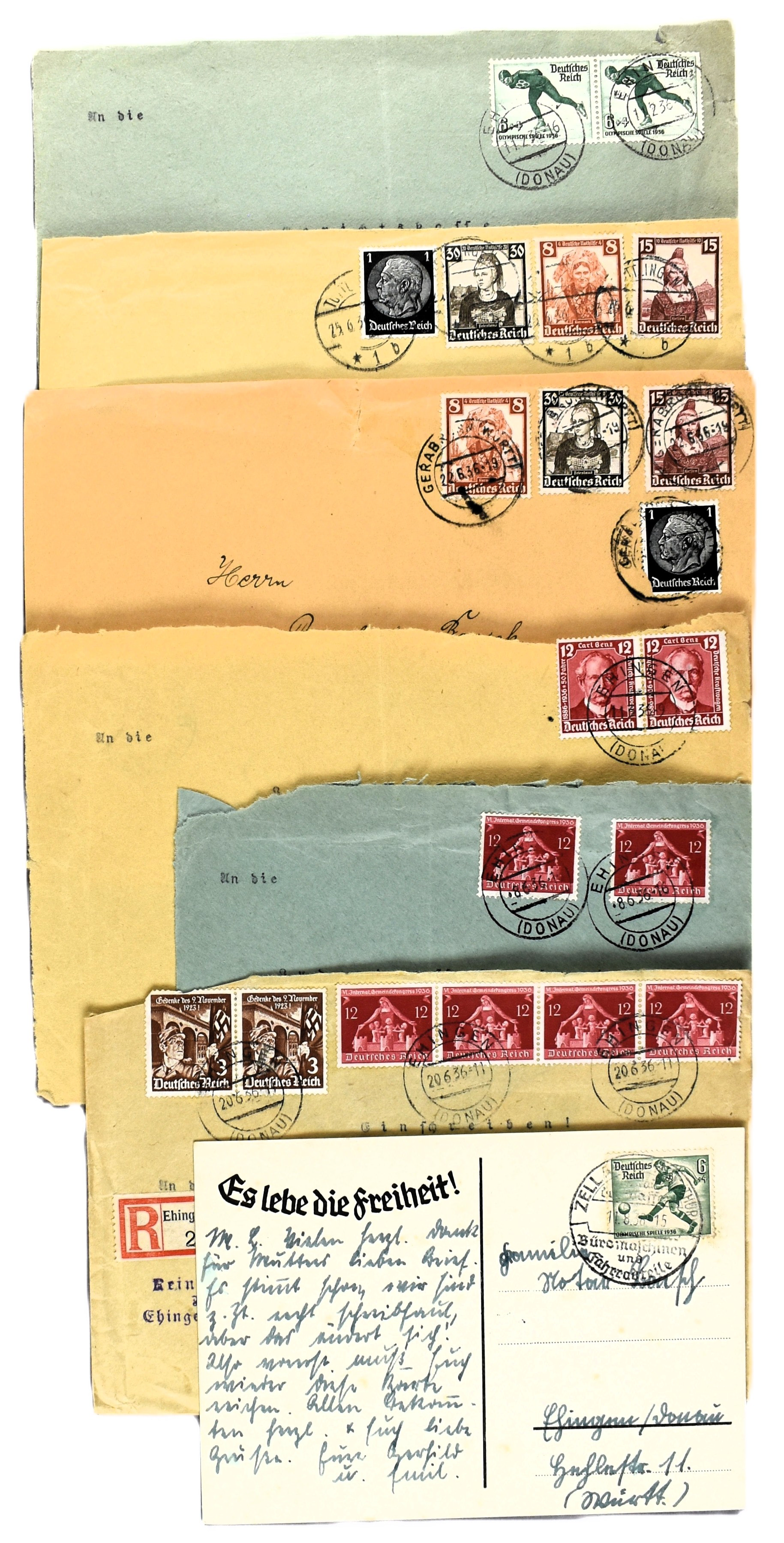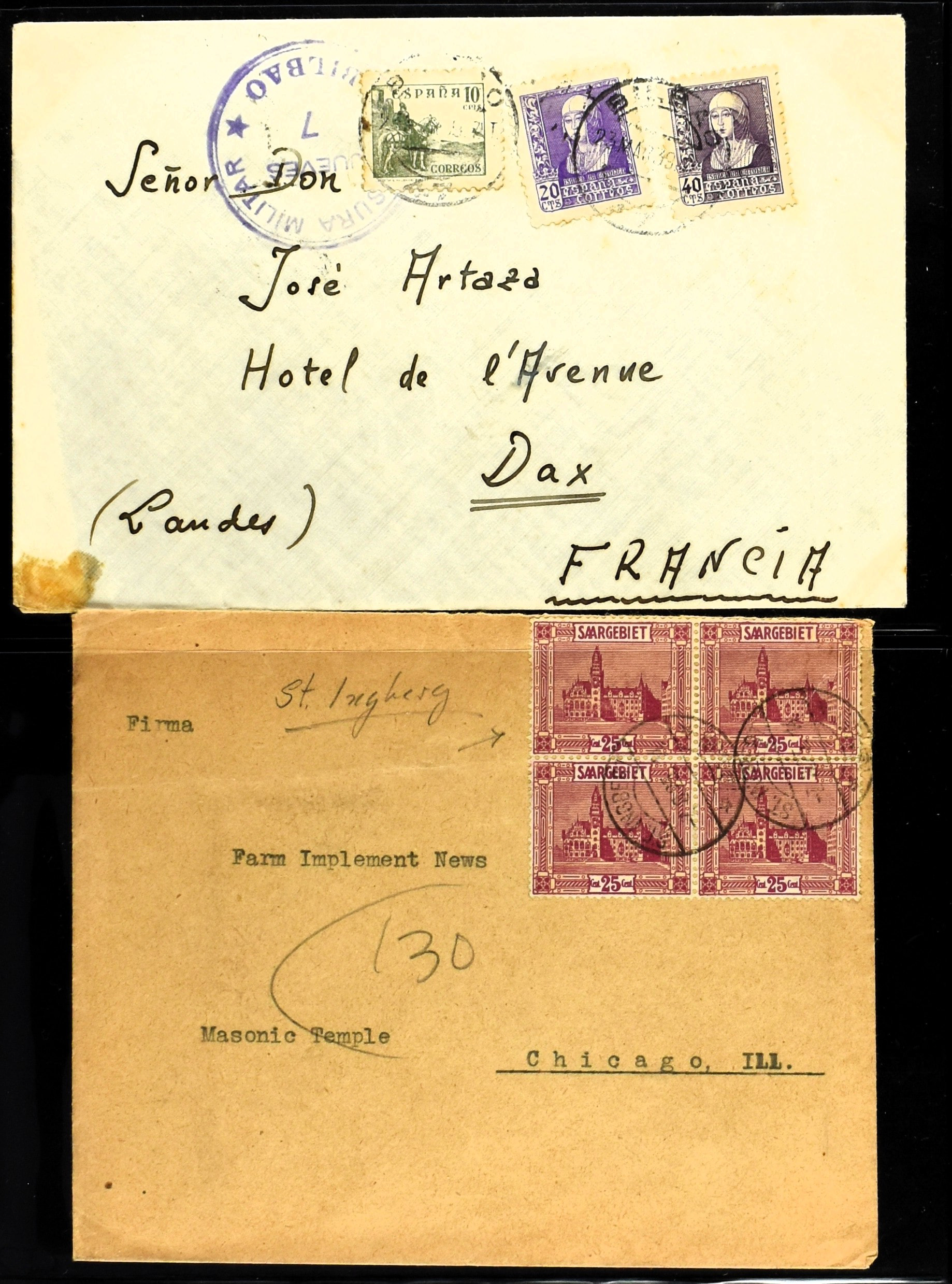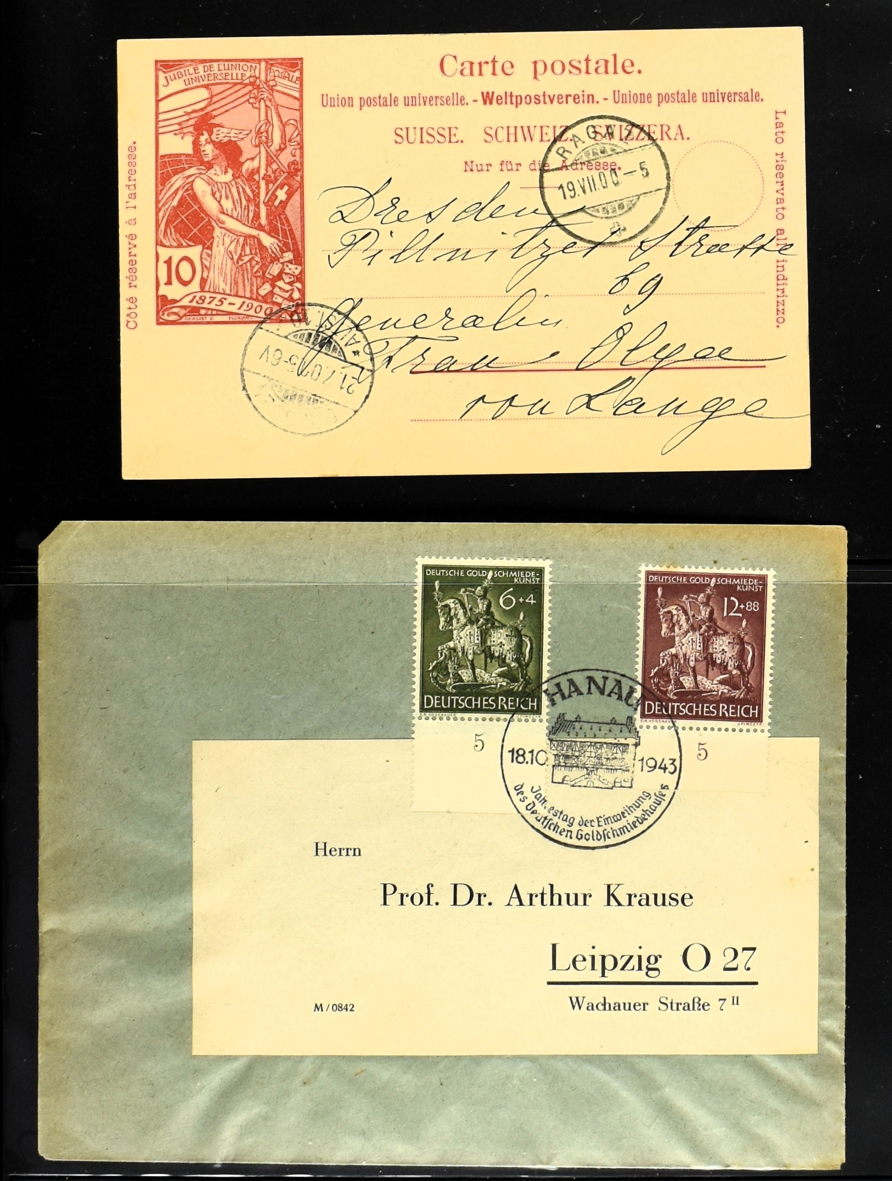 1920-1949, a few hundred covers and cards with several nice frankings and cancellations, many from the "Third Reich" and some not common mixed frankings. (Image)