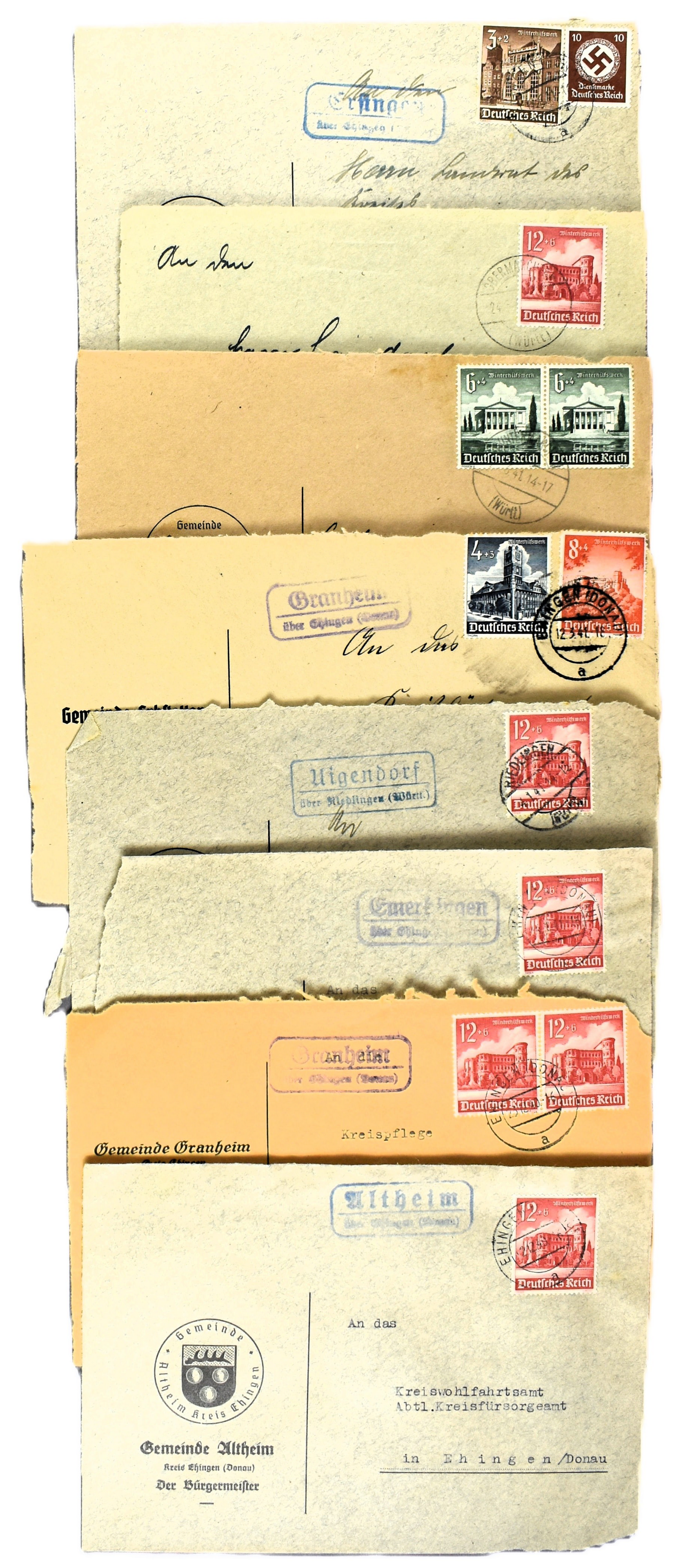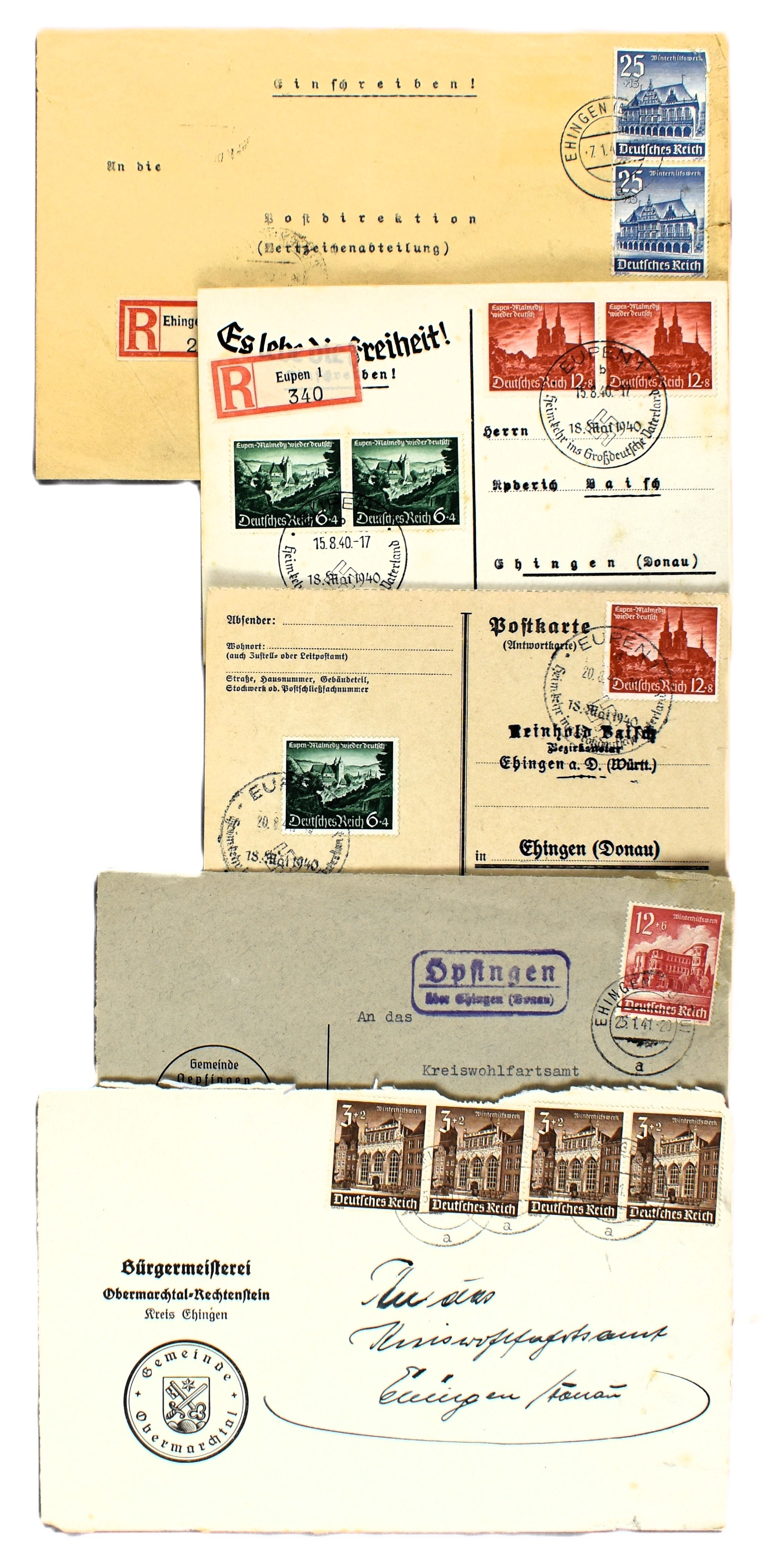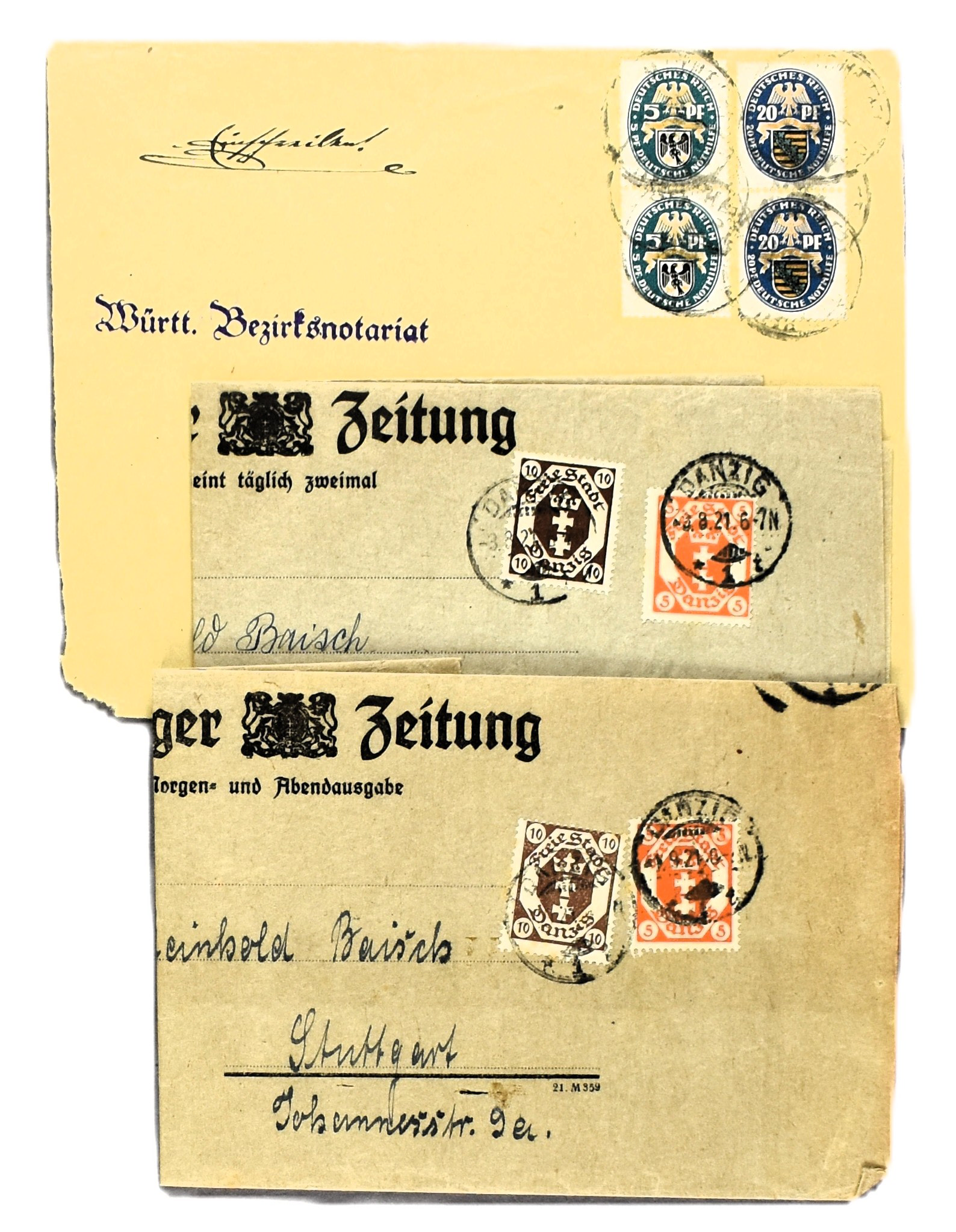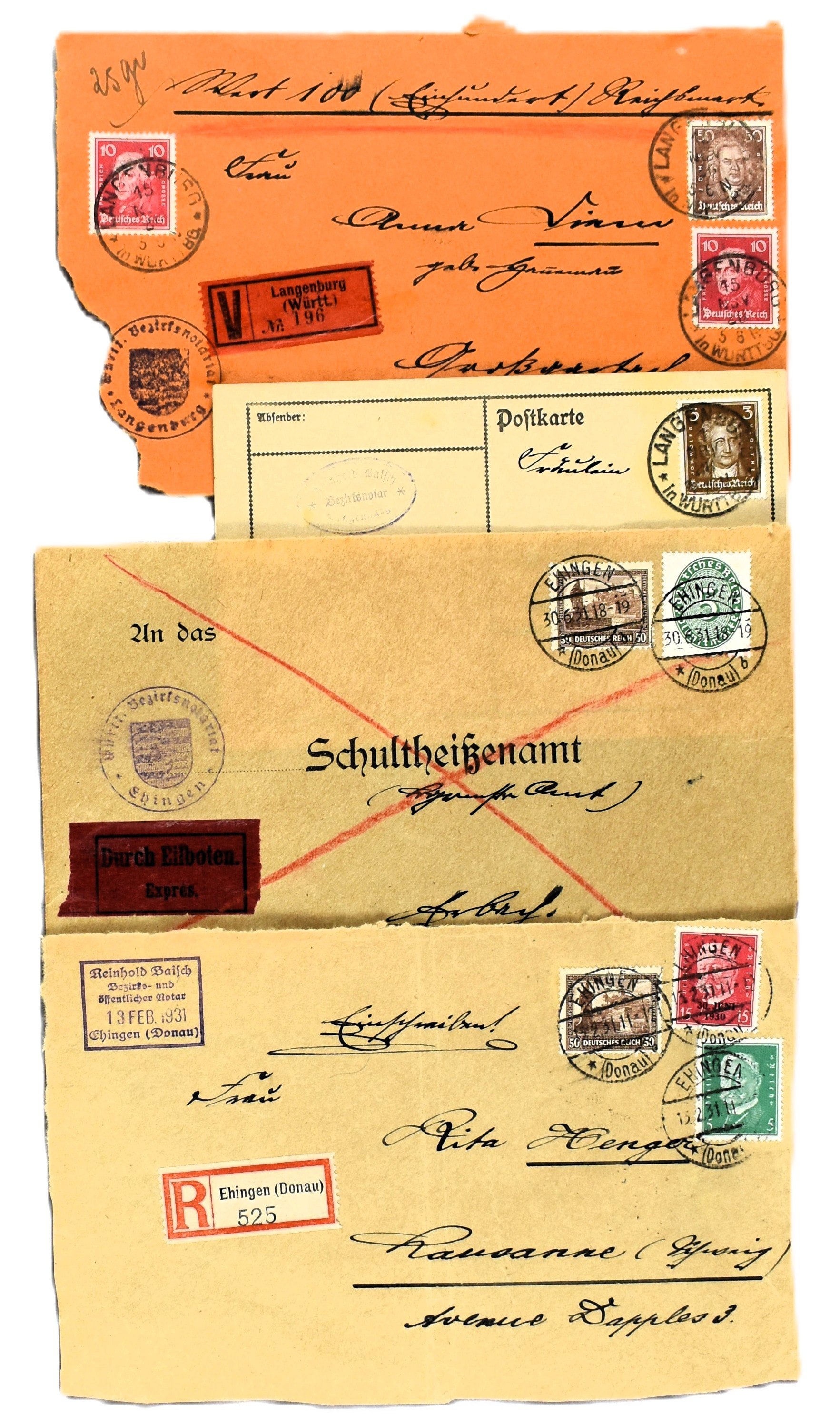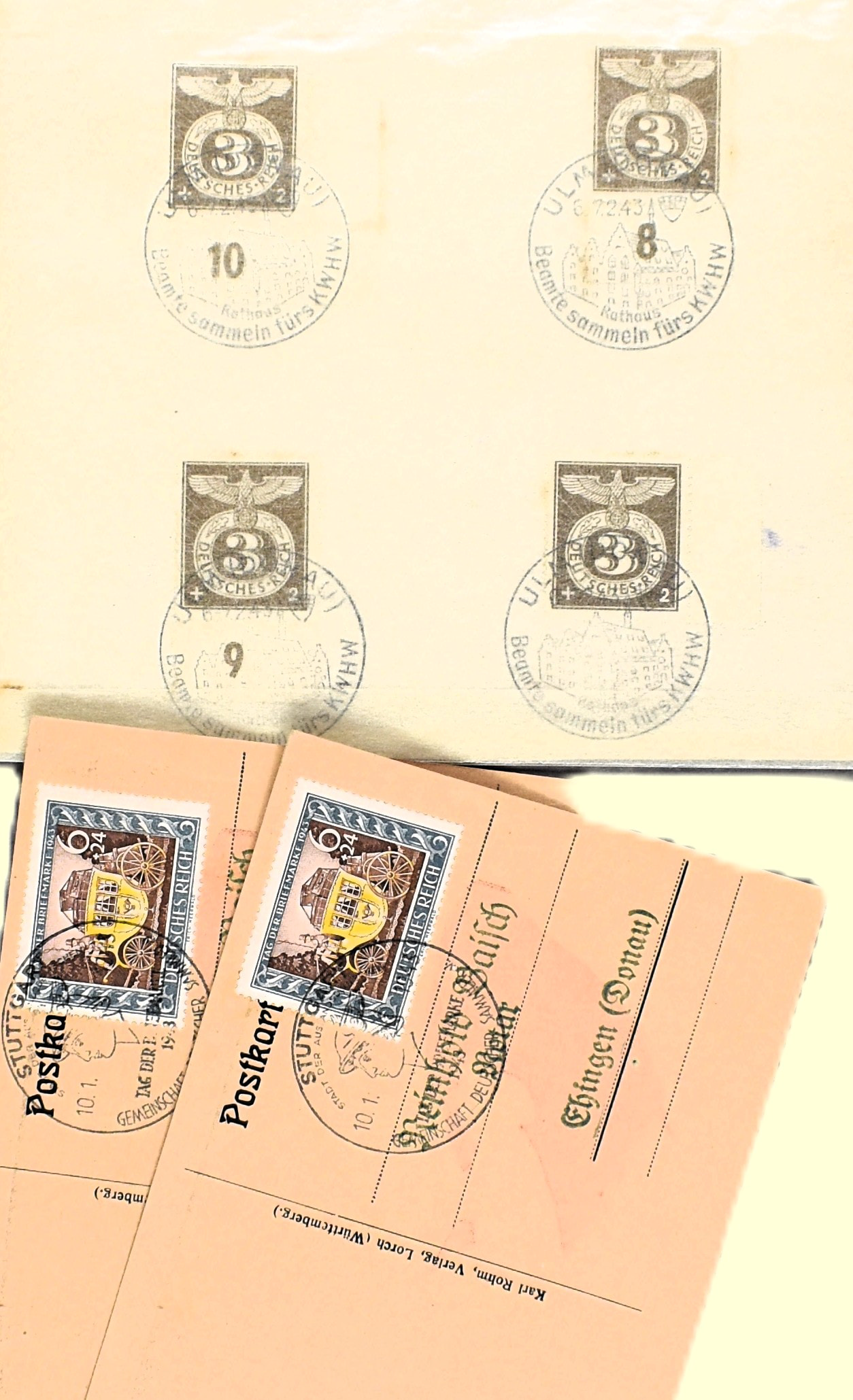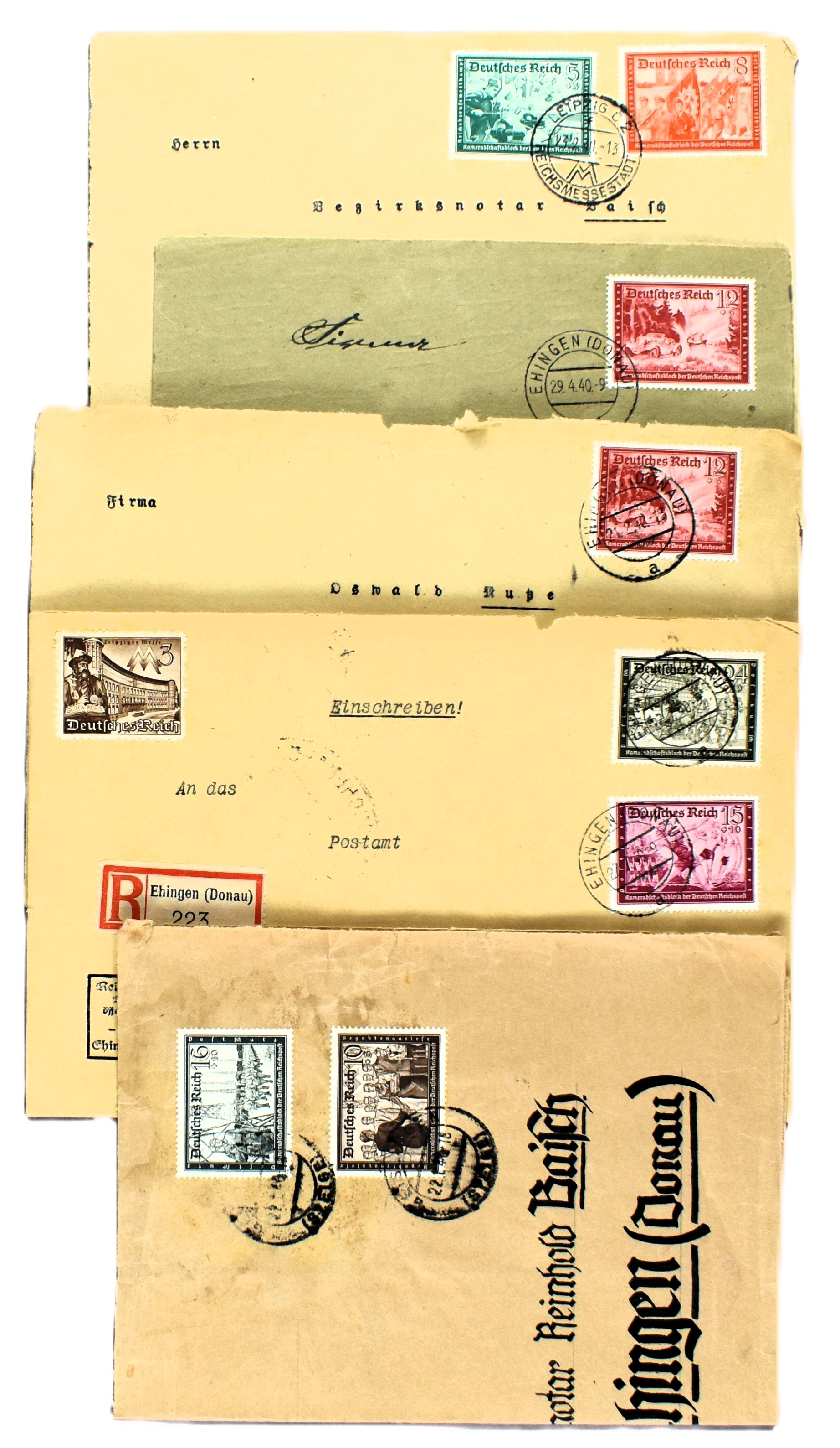 1920-1949, a few hundred covers and cards with several nice frankings and cancellations, many from the "Third Reich" and some not common mixed frankings. (Image)
