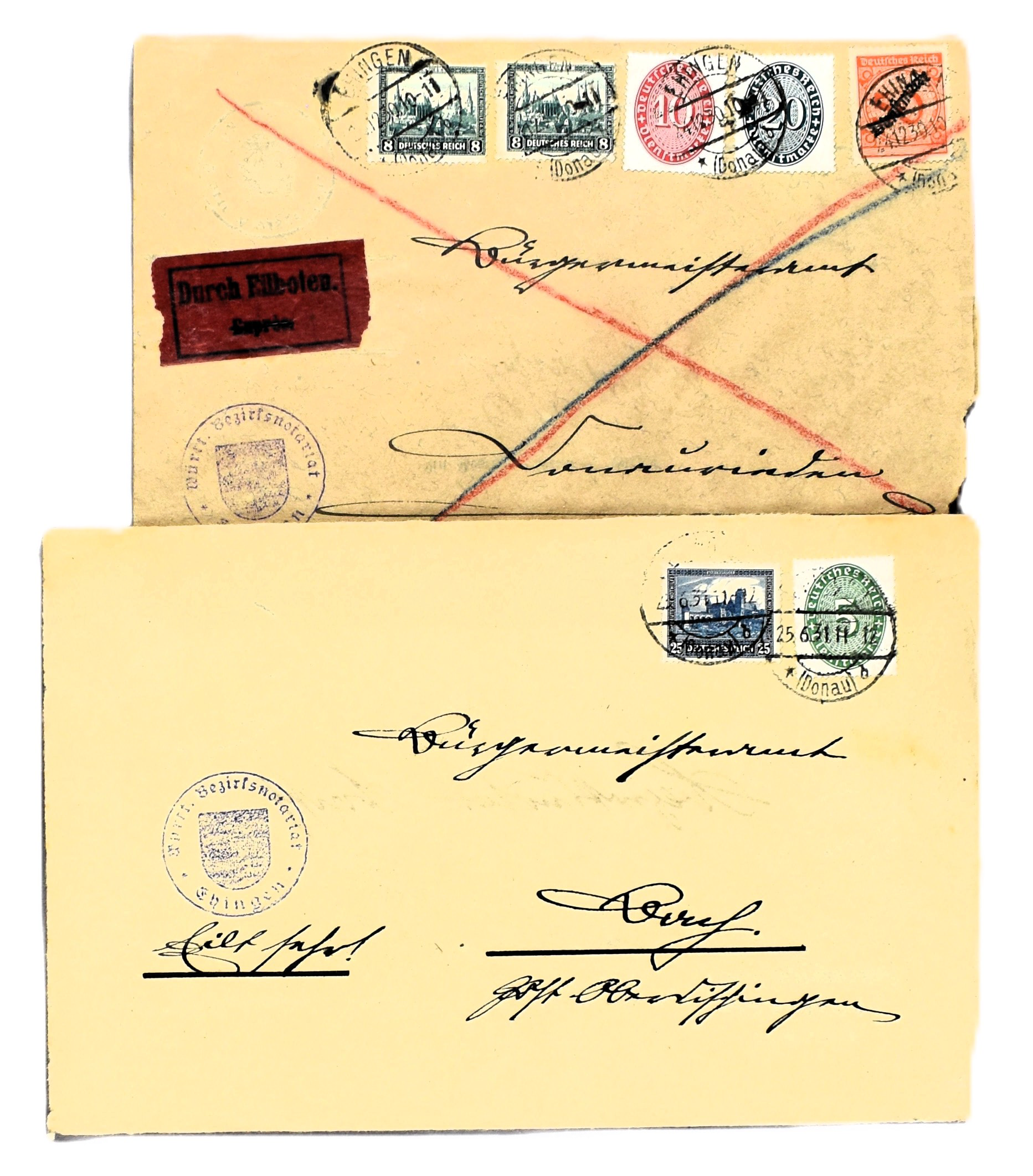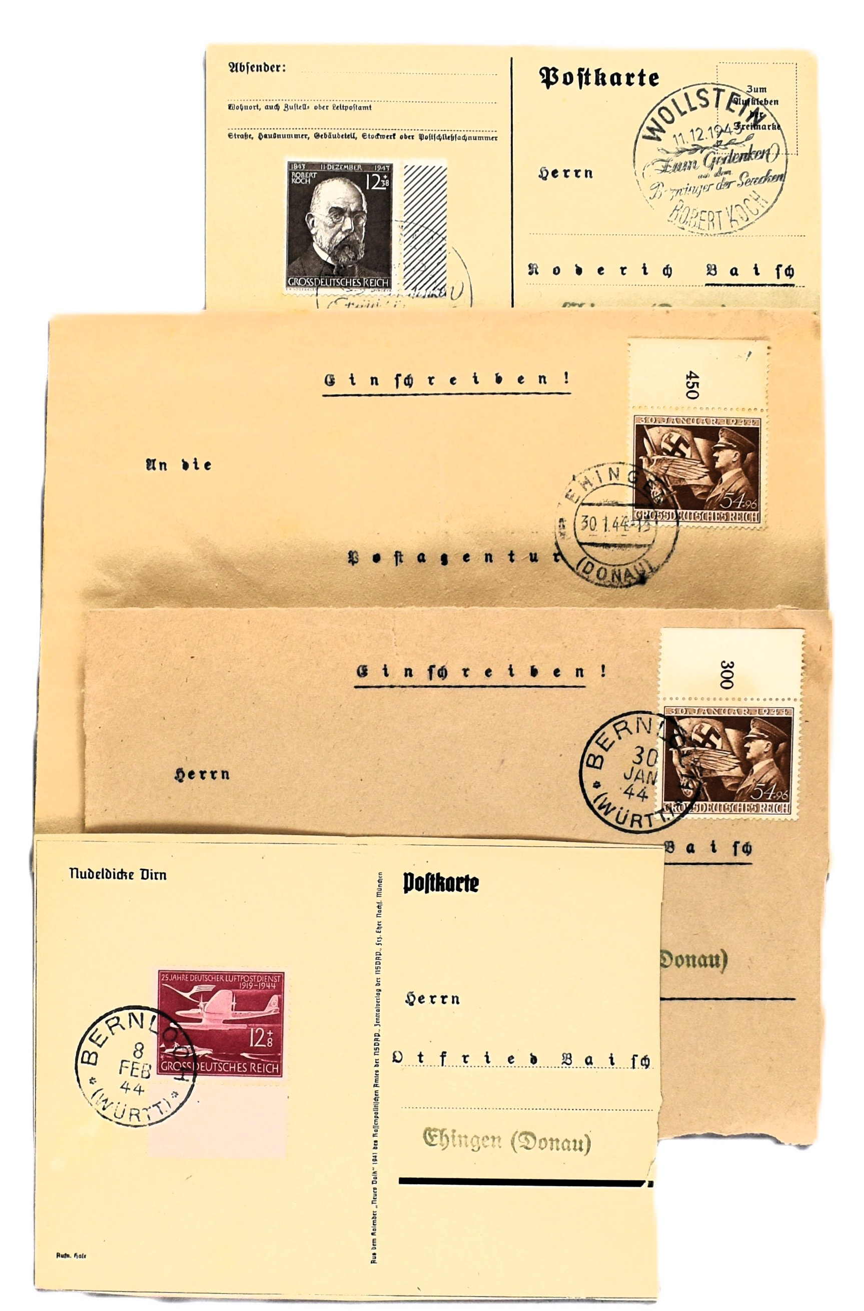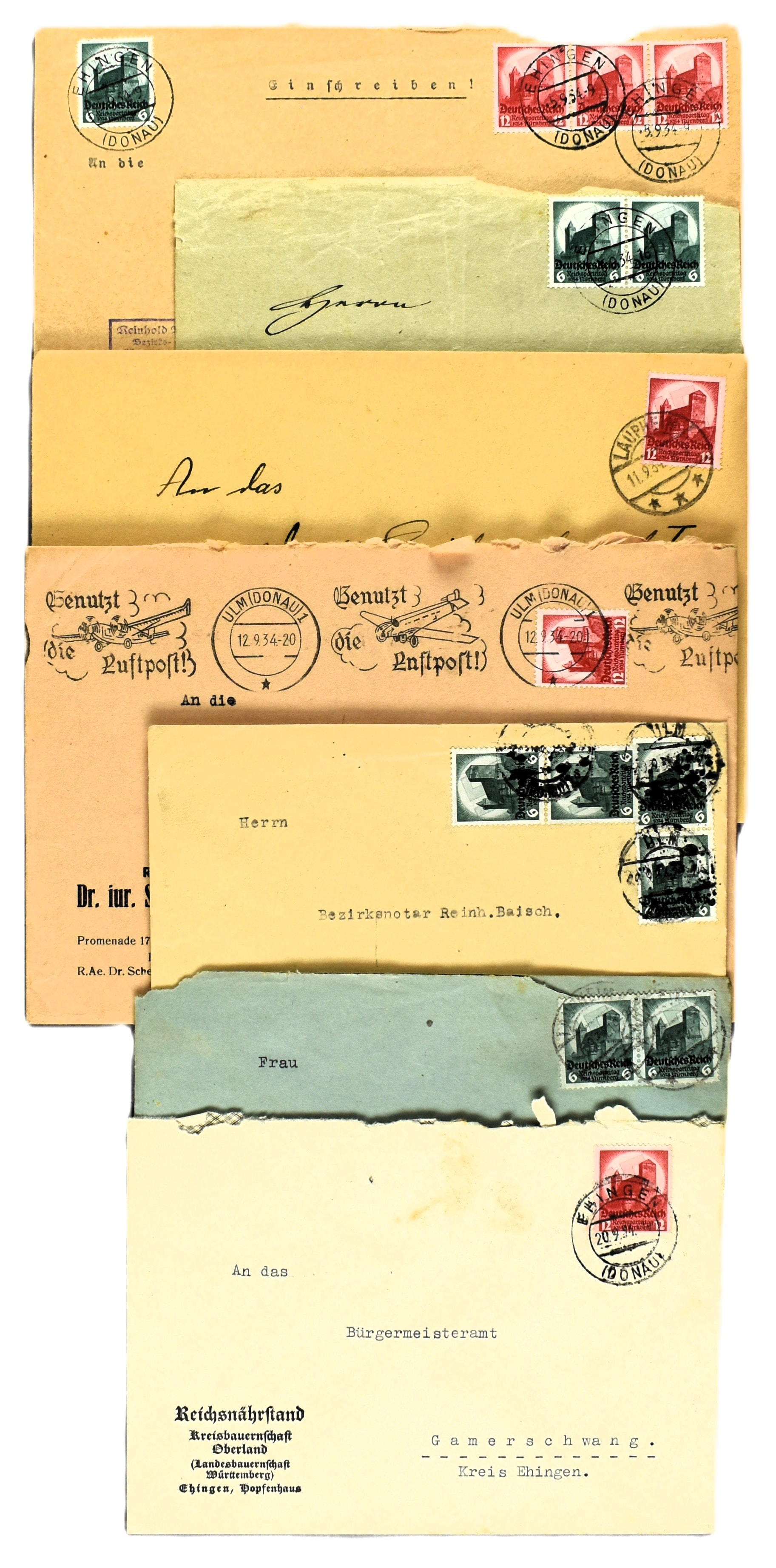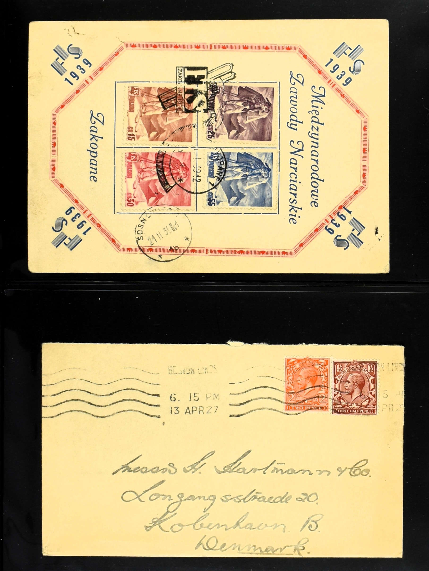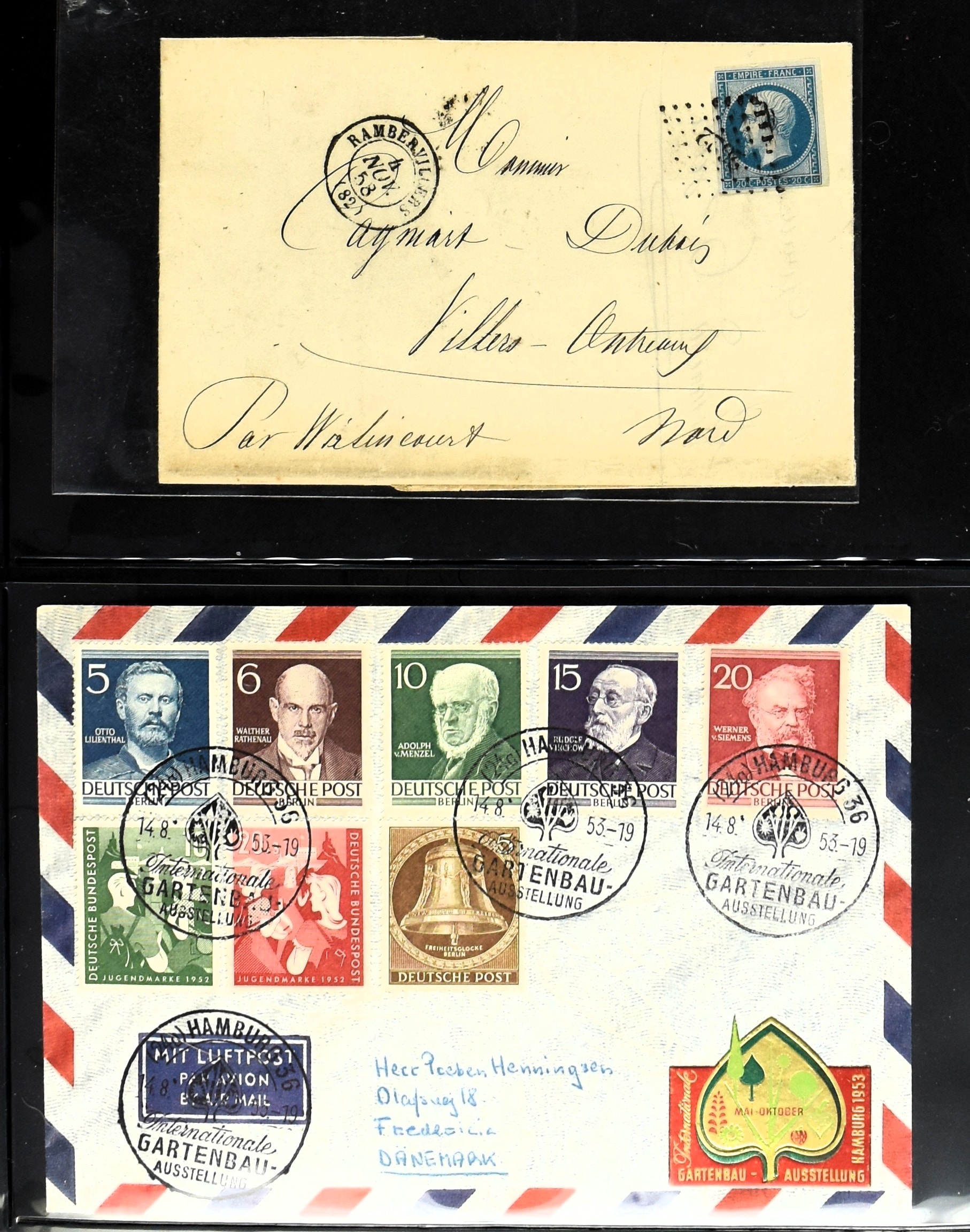 1920-1949, a few hundred covers and cards with several nice frankings and cancellations, many from the "Third Reich" and some not common mixed frankings. (Image)