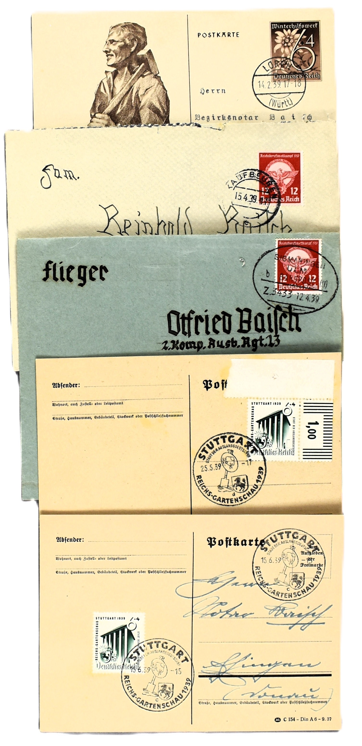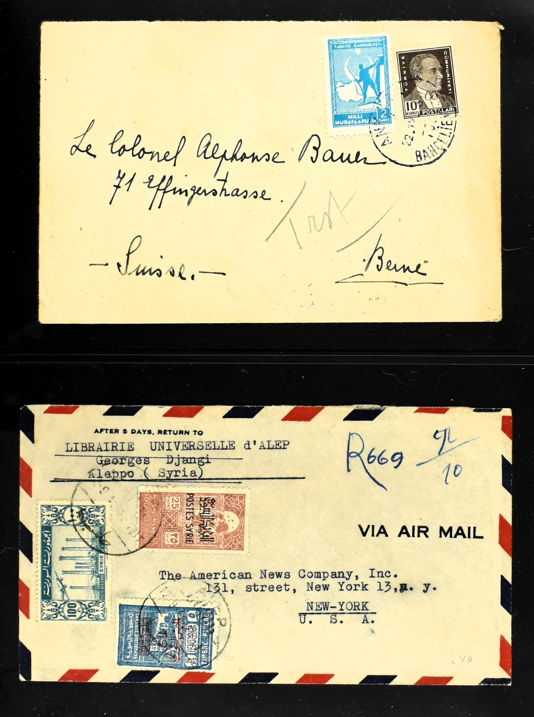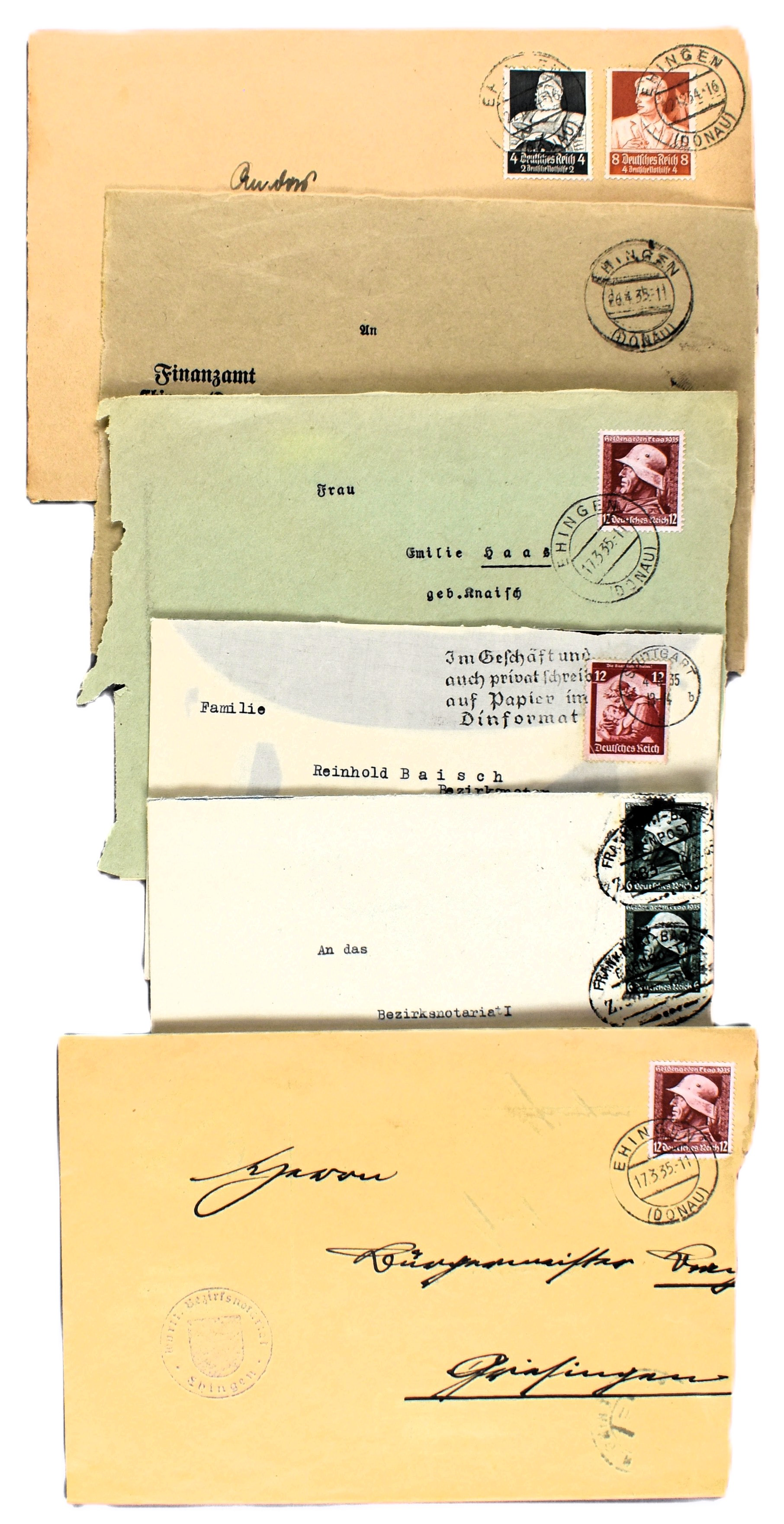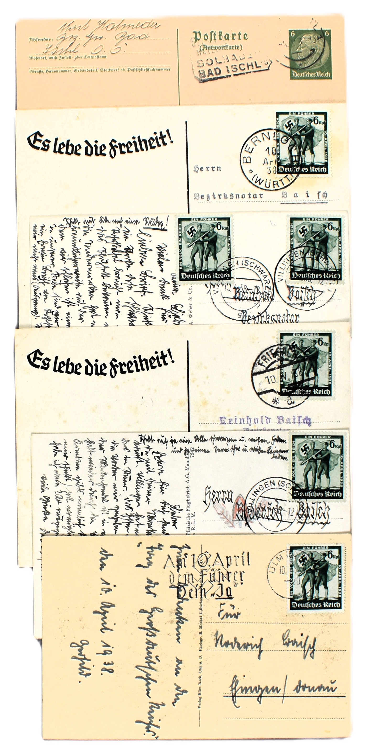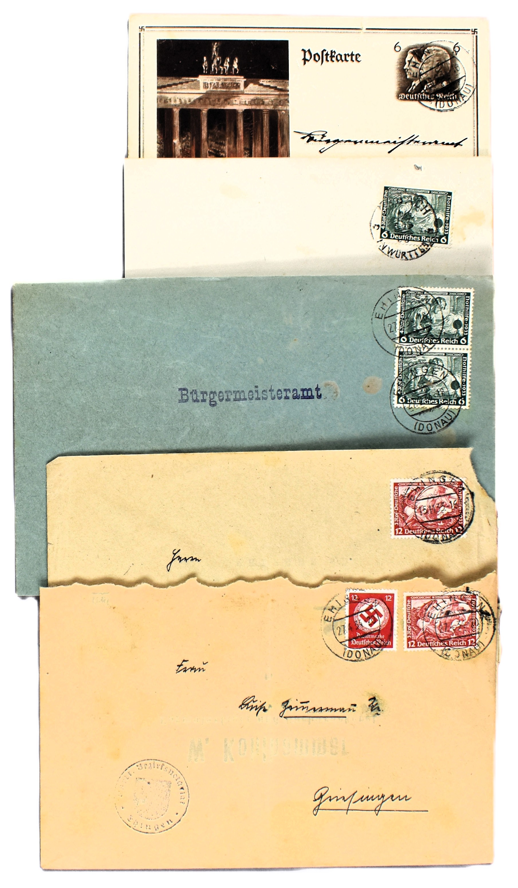 1920-1949, a few hundred covers and cards with several nice frankings and cancellations, many from the "Third Reich" and some not common mixed frankings. (Image)