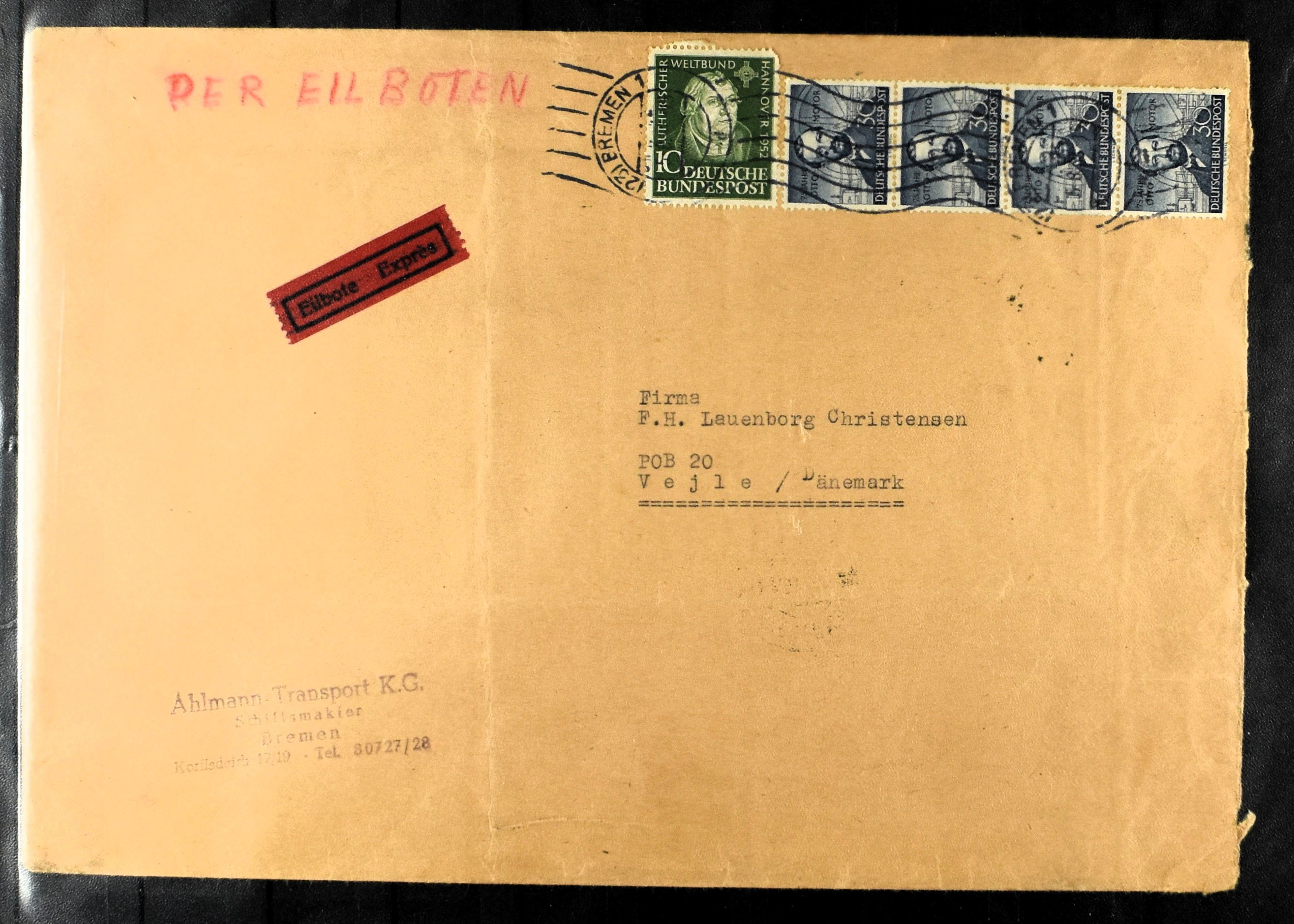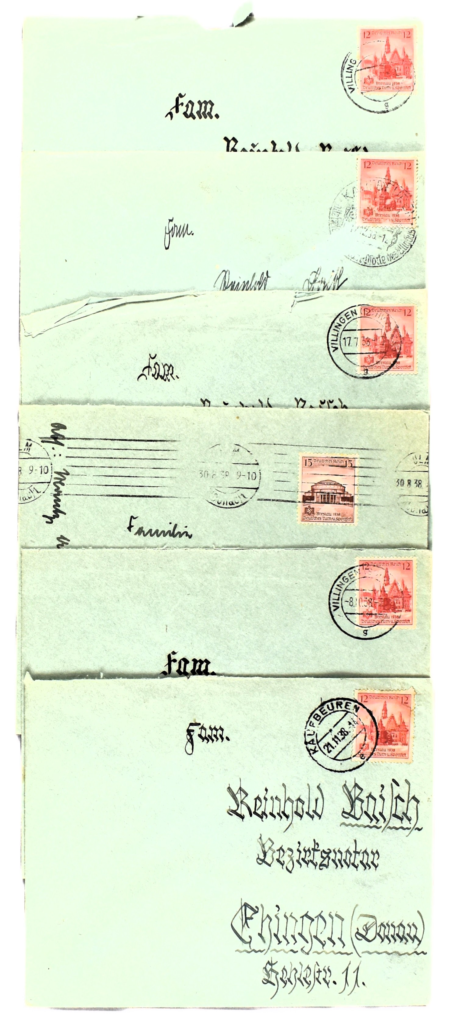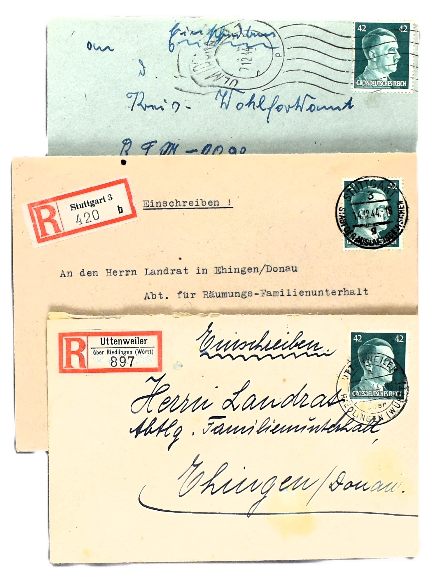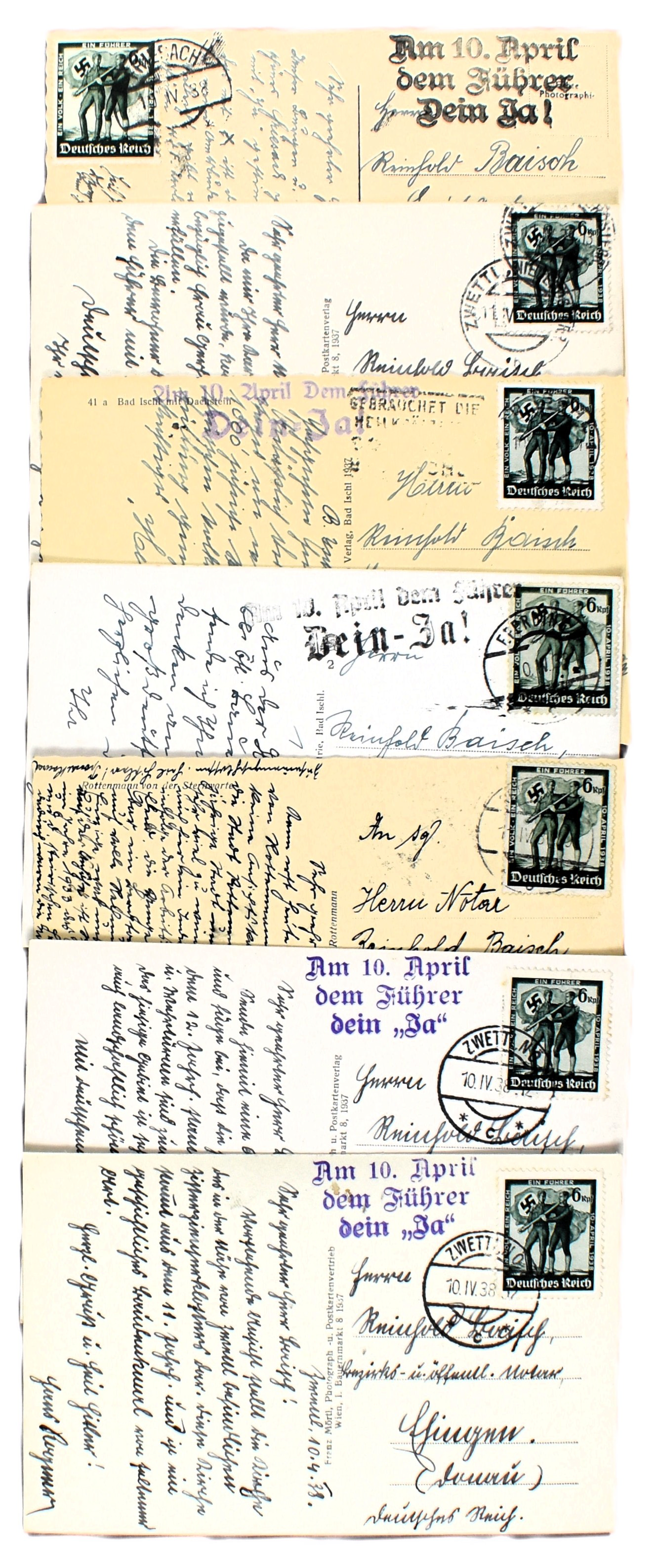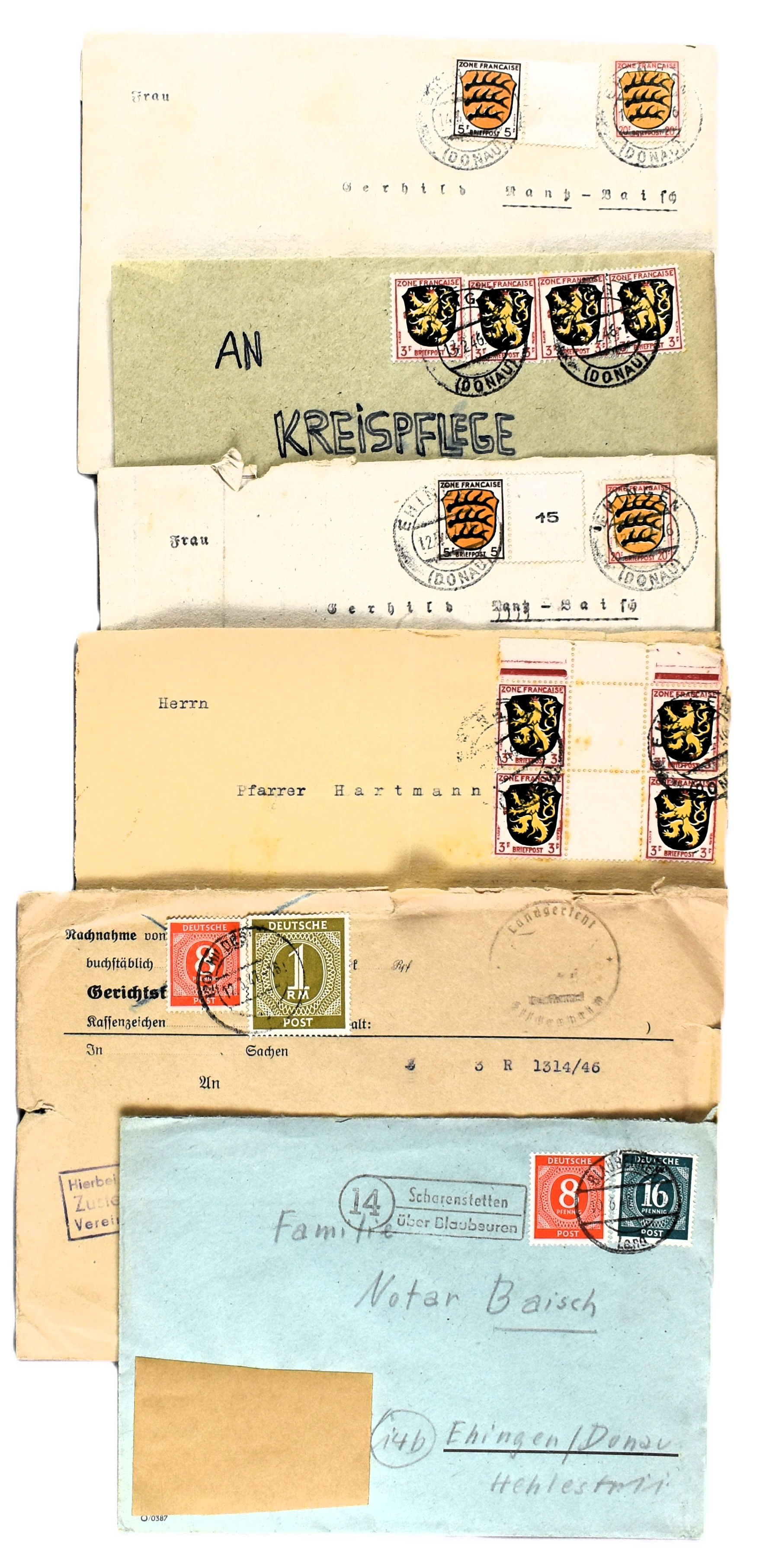 1920-1949, a few hundred covers and cards with several nice frankings and cancellations, many from the "Third Reich" and some not common mixed frankings. (Image)