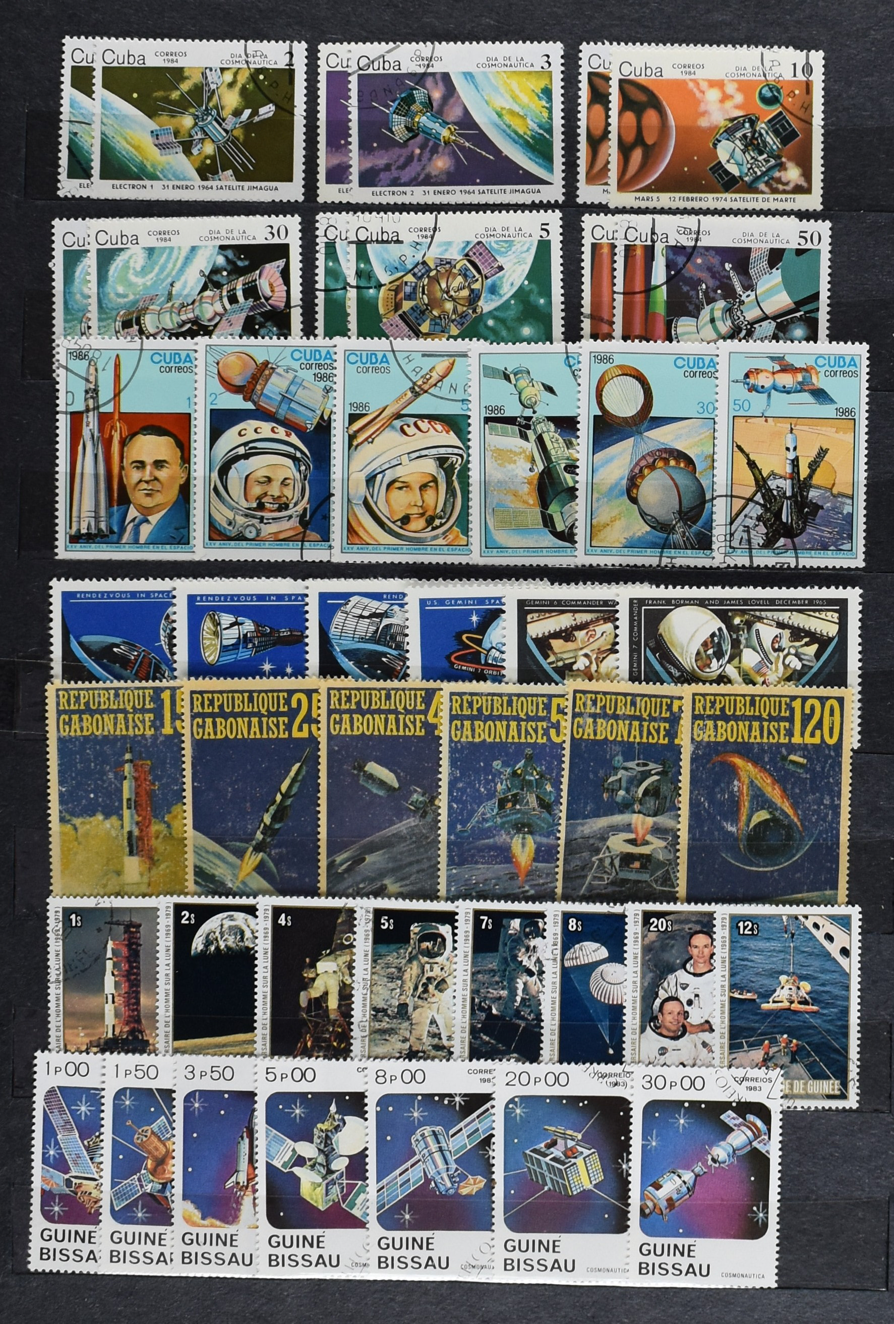 o/*/** in 15 albums/stockbooks and a box with flora and fauna, sports, aerospace etc, with some better nos and sets, covers etc. (Image) (Image2)