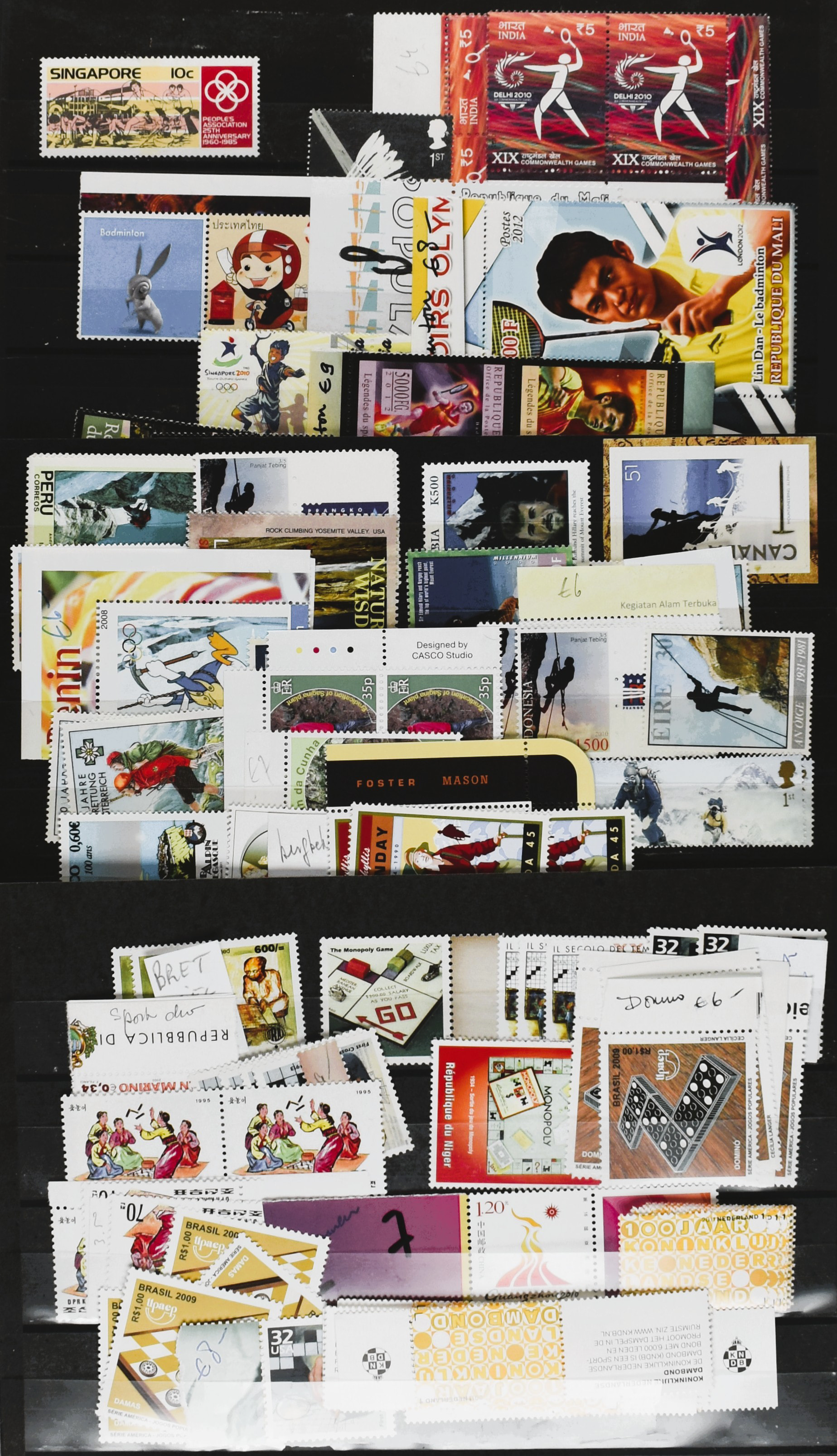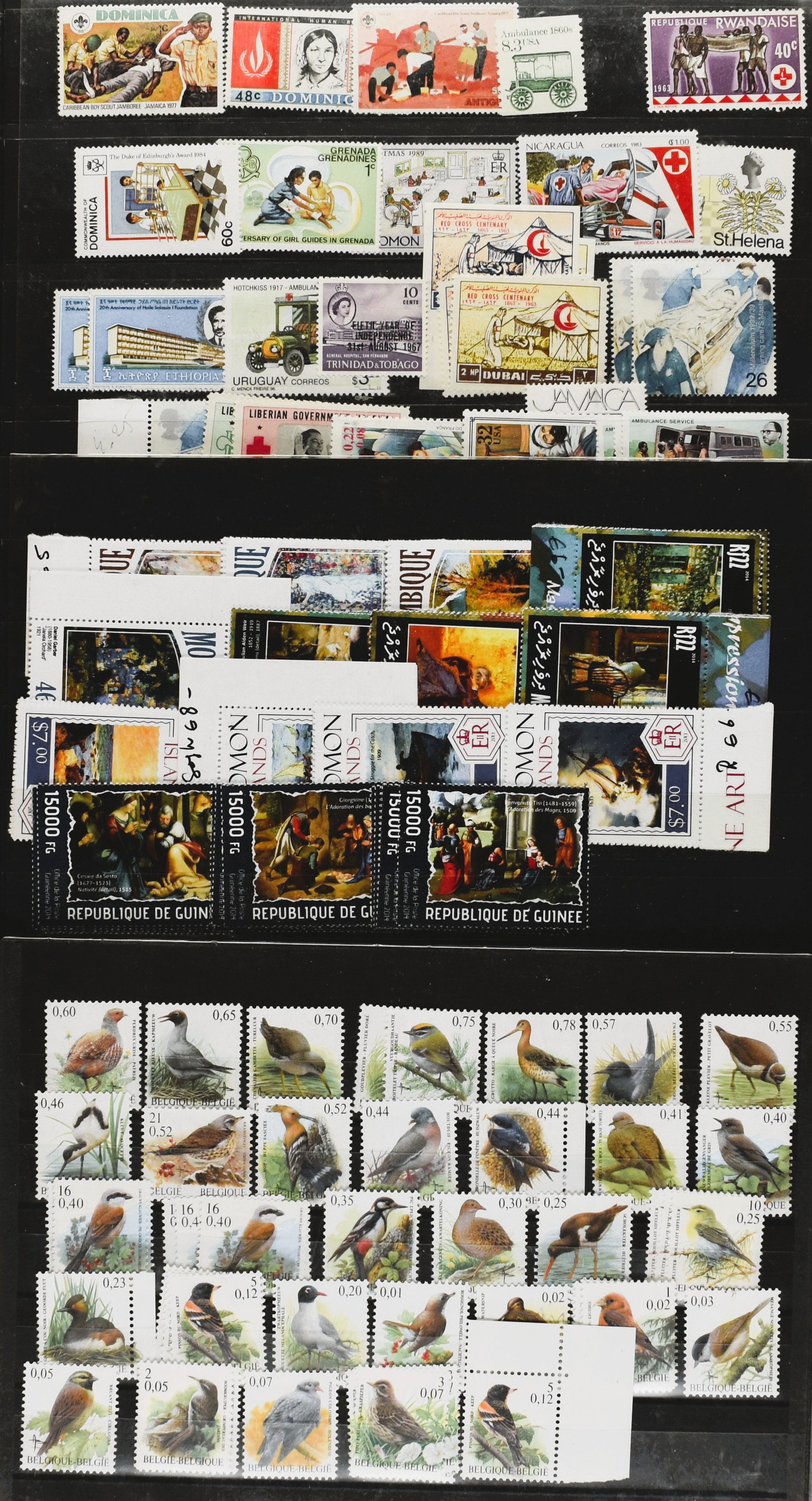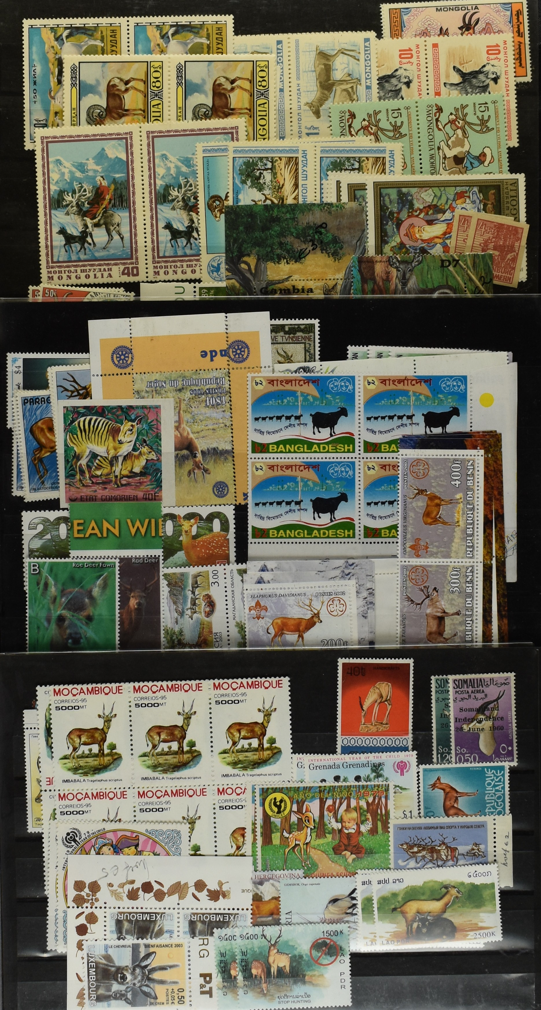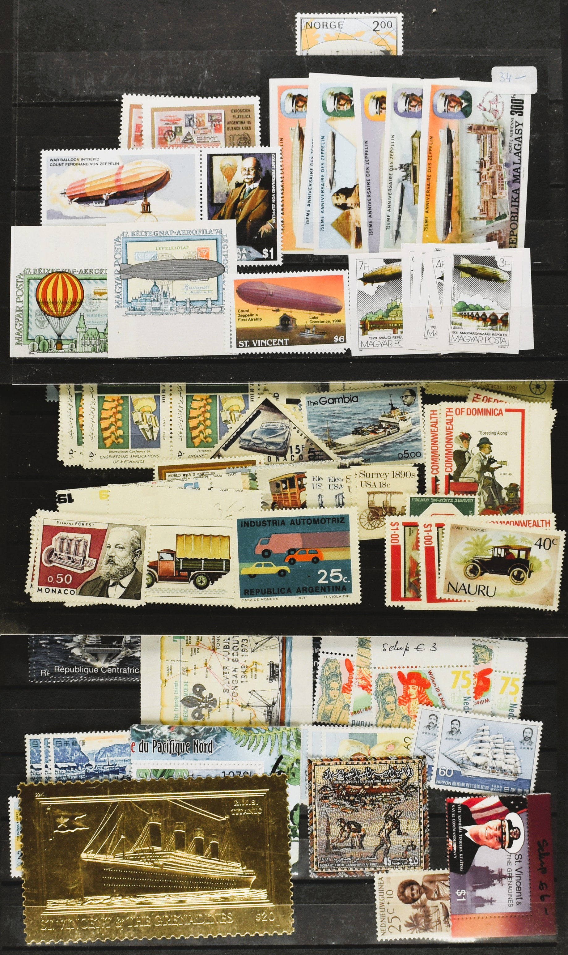 mainly unmounted mint, sorted by topic on hundreds of stockcards, with several better nos, sets and ranges. Including imperforated, 3D and gold foil. Nice lot for topic collector with an enormous catalogue value! Images are available online (Image) (Image2)