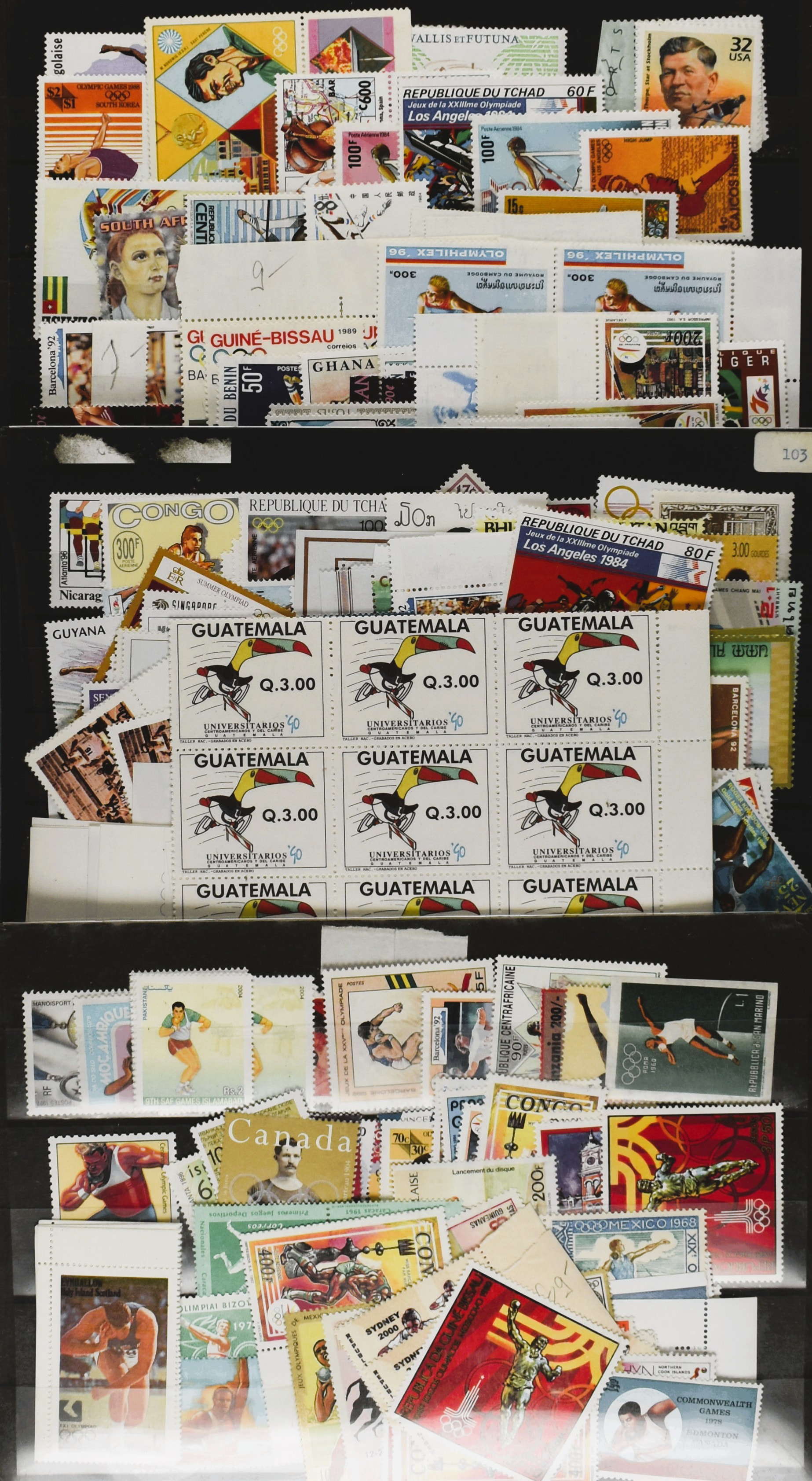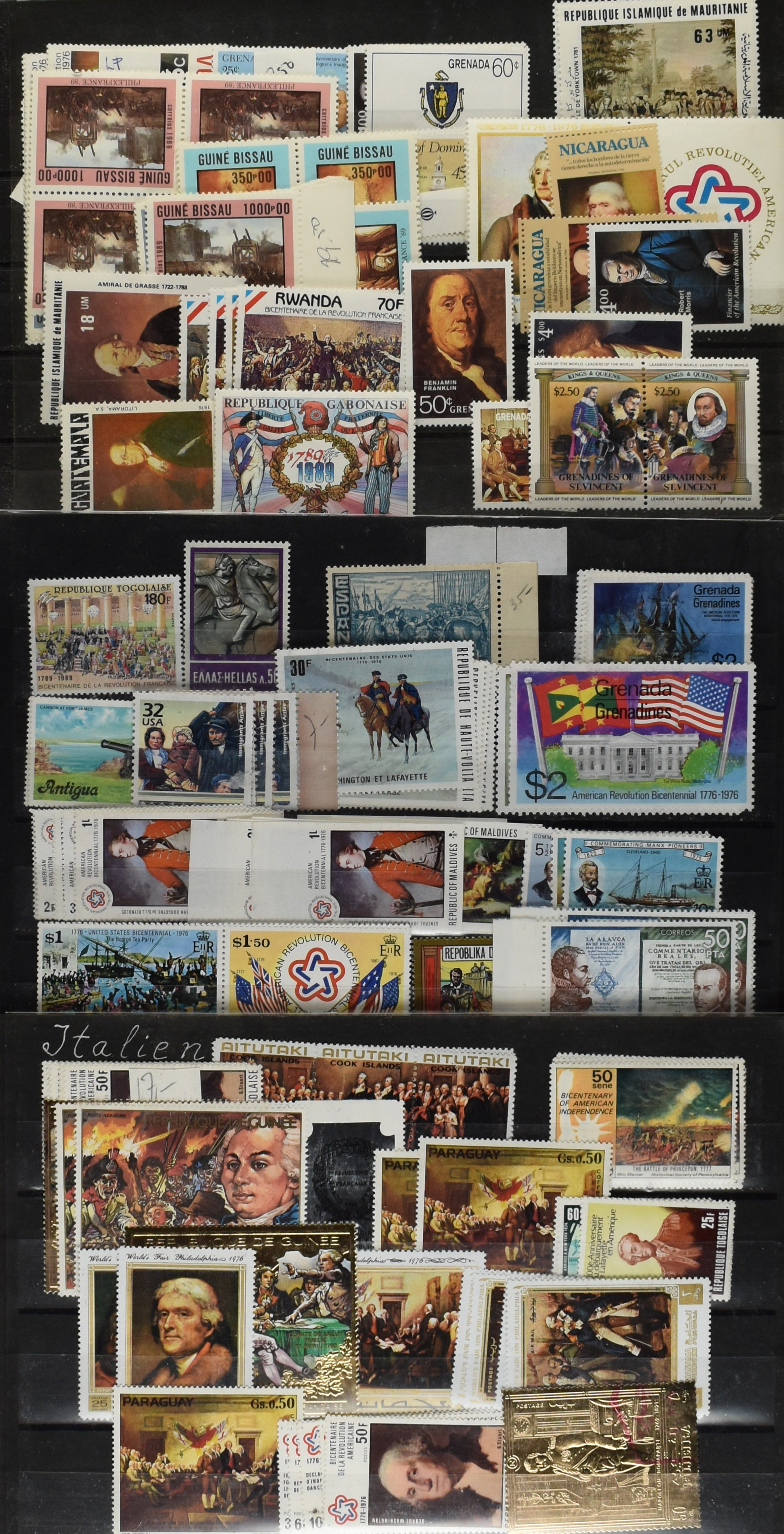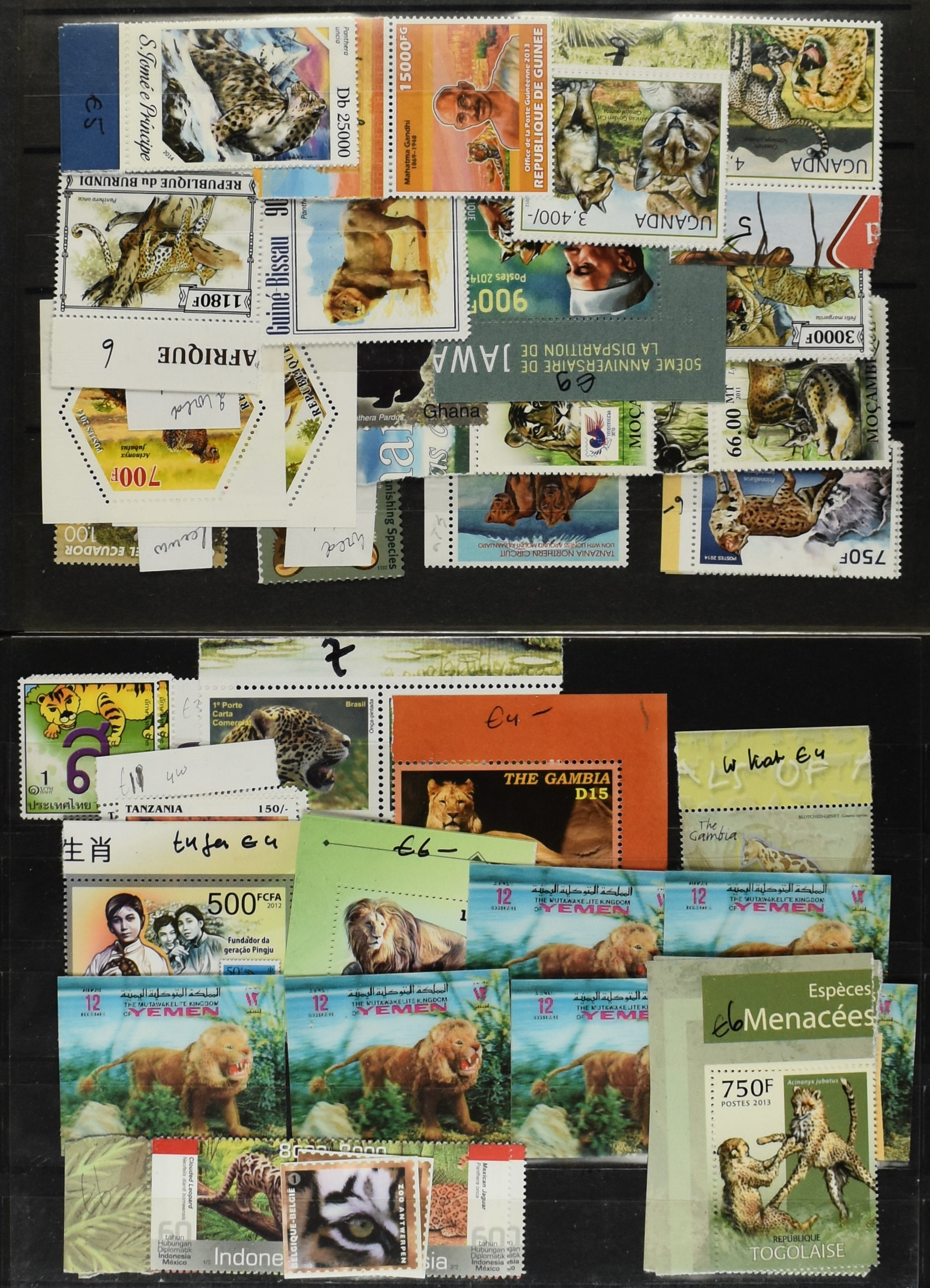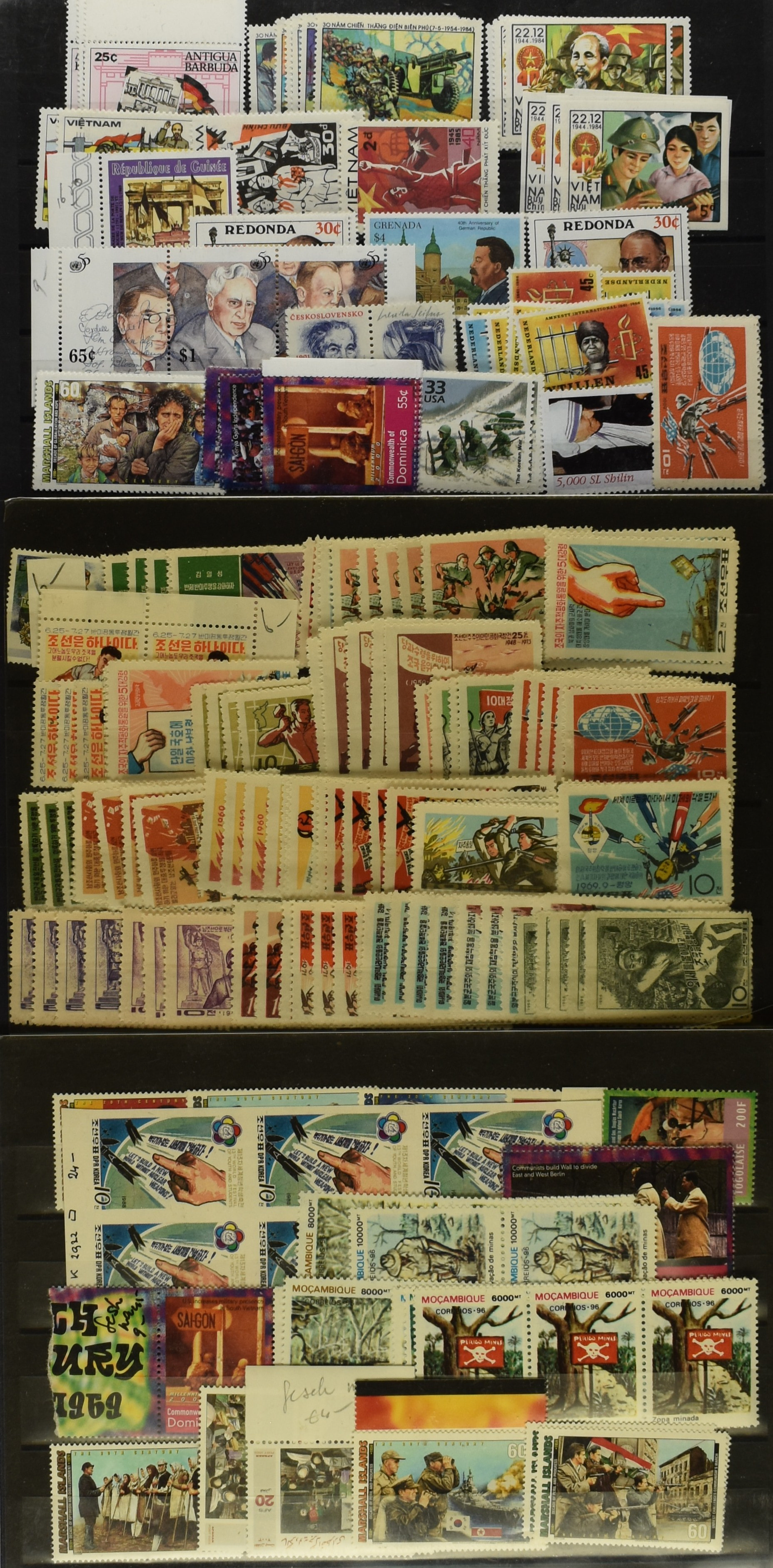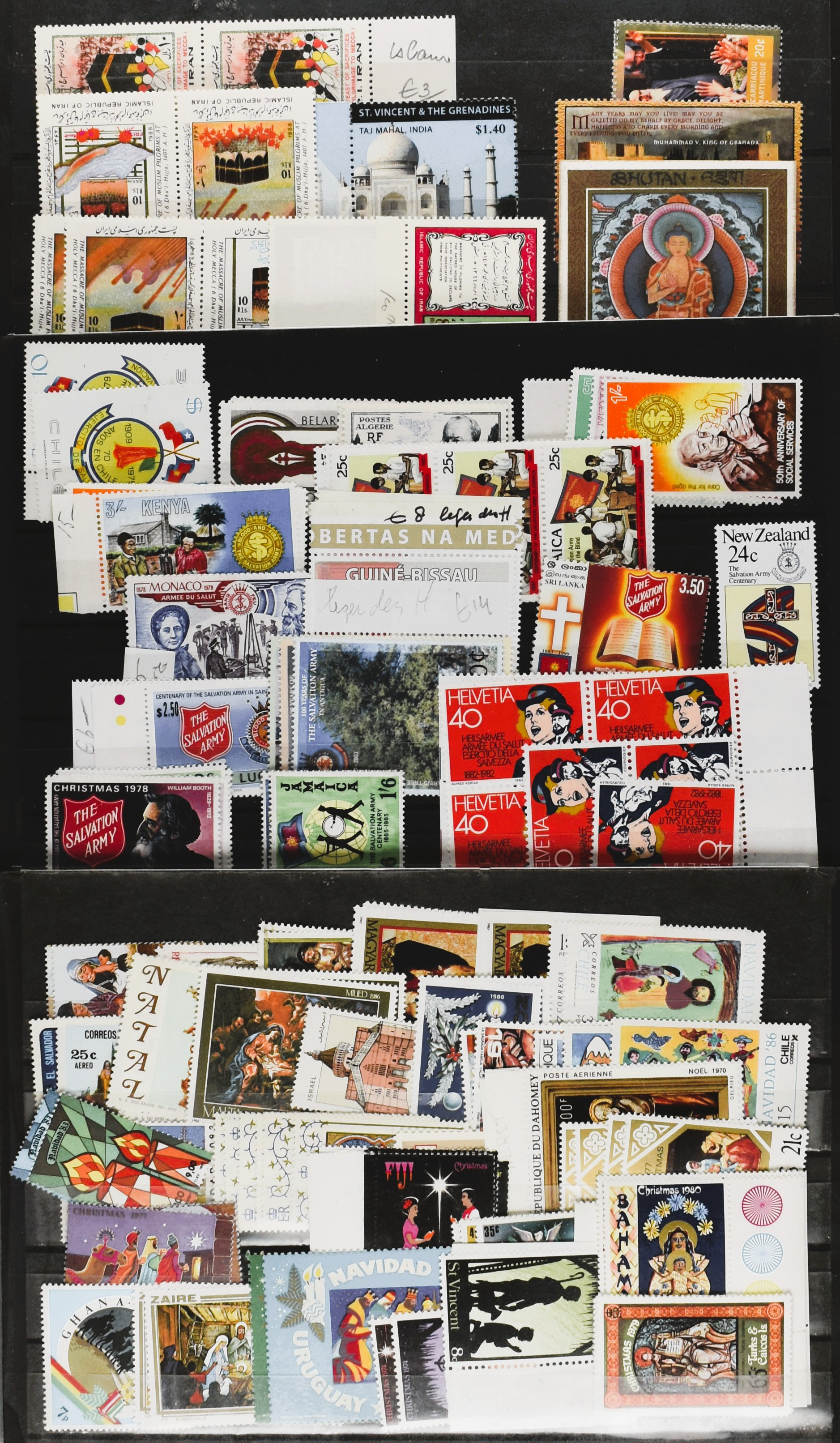 mainly unmounted mint, sorted by topic on hundreds of stockcards, with several better nos, sets and ranges. Including imperforated, 3D and gold foil. Nice lot for topic collector with an enormous catalogue value! Images are available online (Image) (Image2)