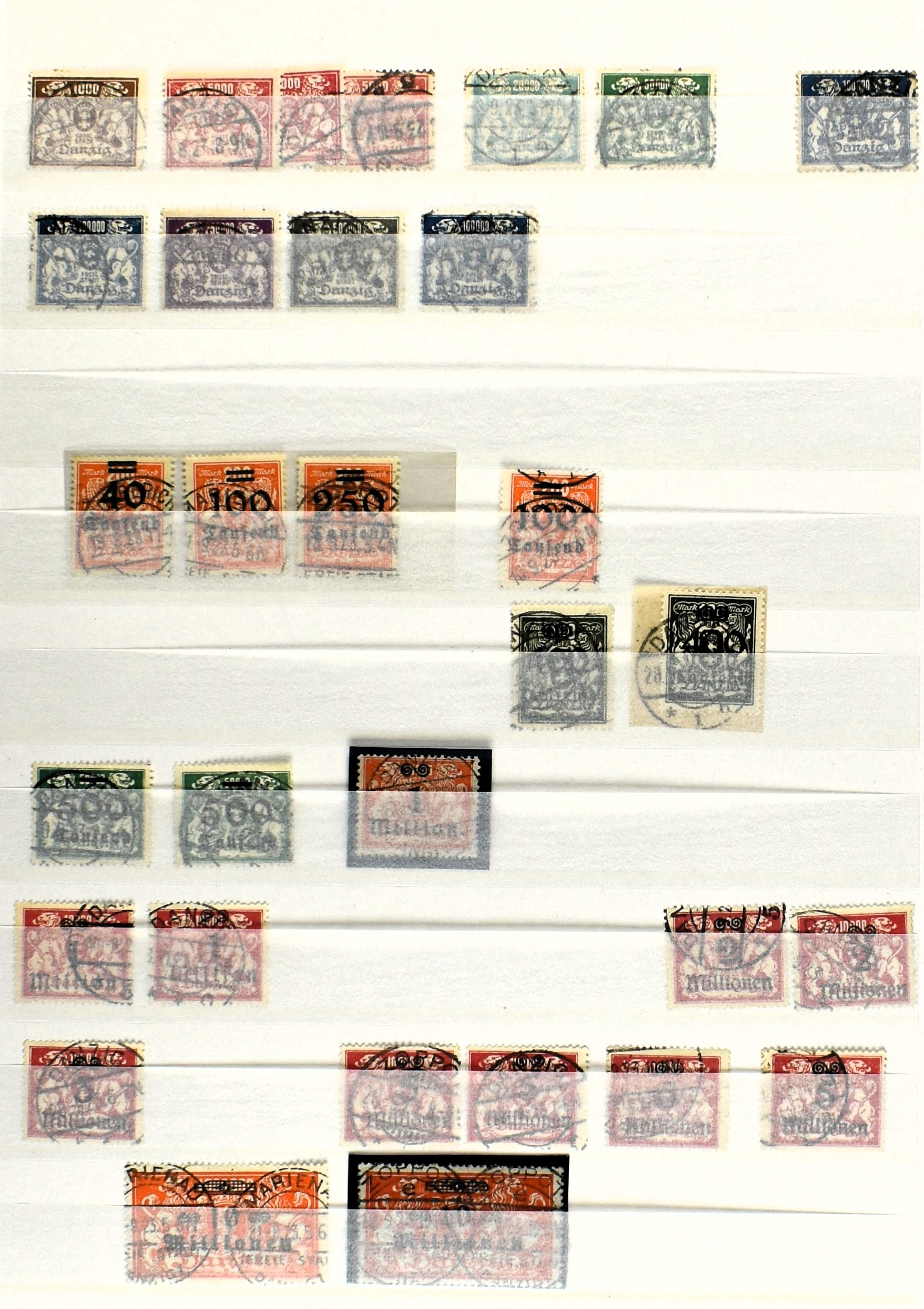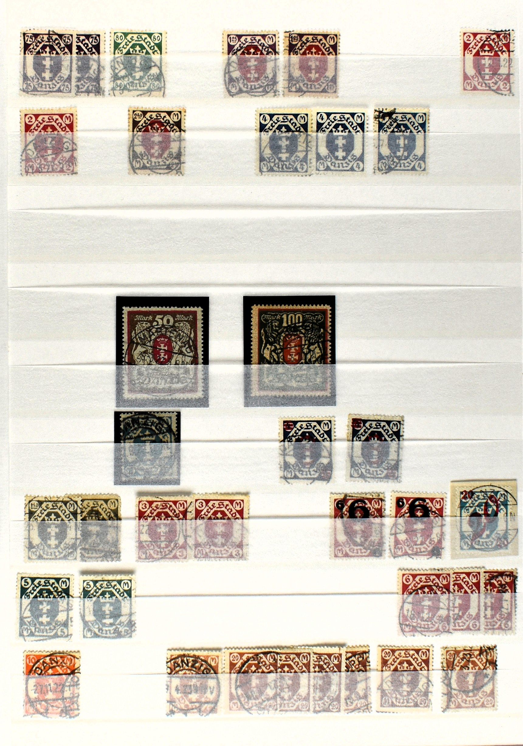 1920-1939, o/*/** in 1 thick stockbook with good material f.i.: Mi. 32/40, 47(*), 100/01, 150, 193/201**, Block 3, Officials, Port Gdansk, etc. Nice lot with high catalogue value! (Image) (Image2)