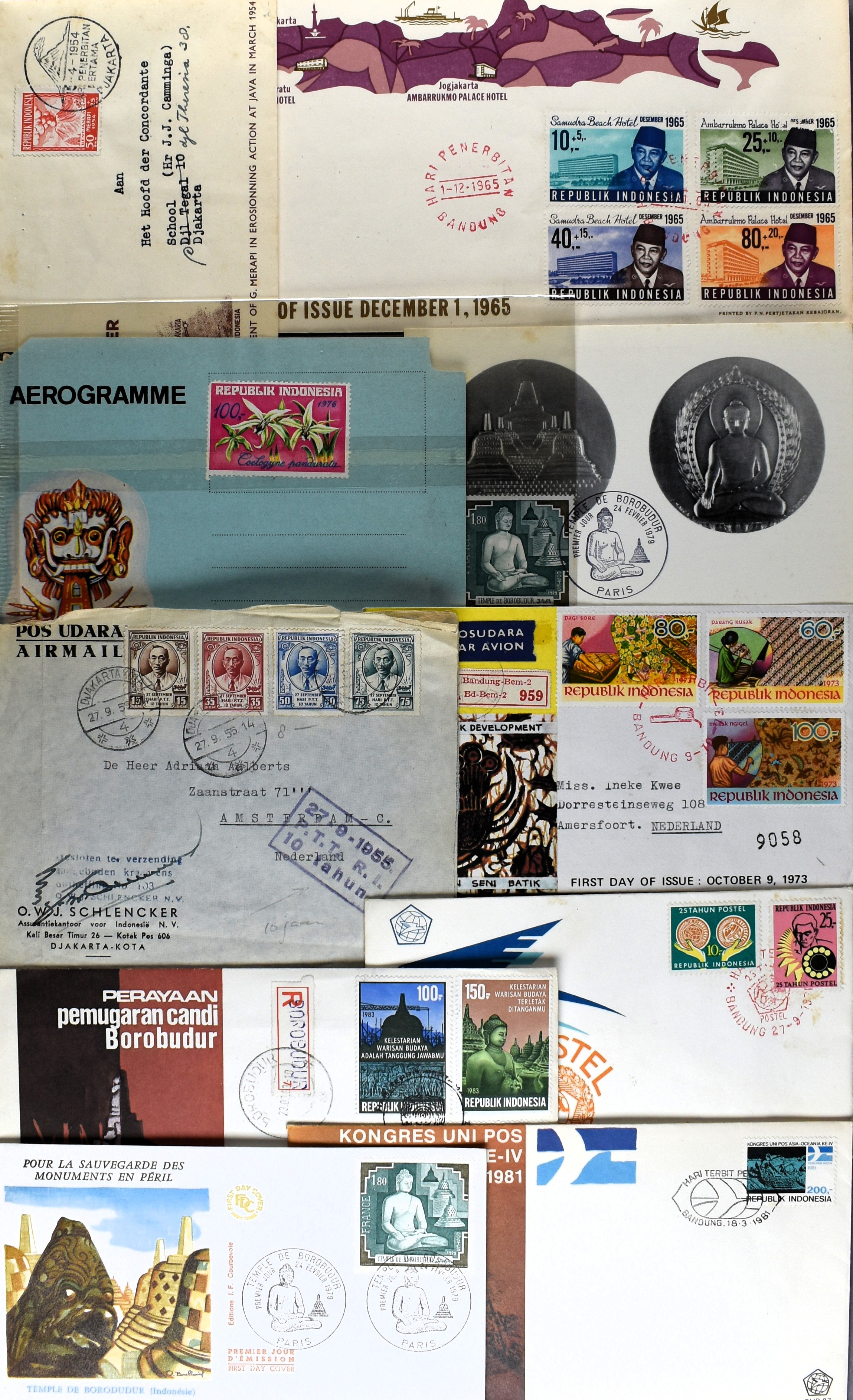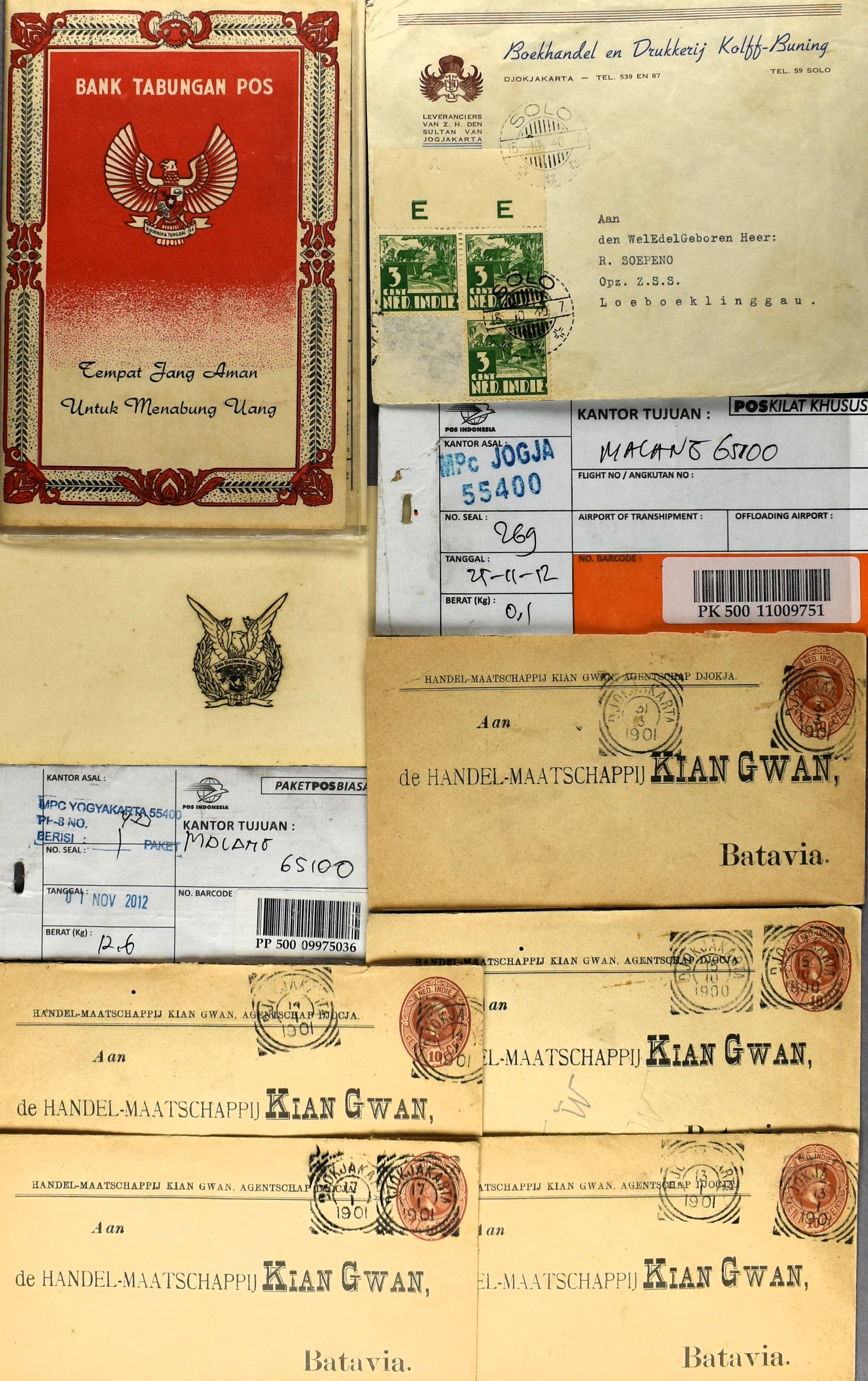 INDONESIË, ca. 400 poststukken vanuit/naar Djokjakarta/Yogyakarta w.o. veel postwissels, iets Ned.- Indië, losse zegels Revolutieperiode etc. (Image)