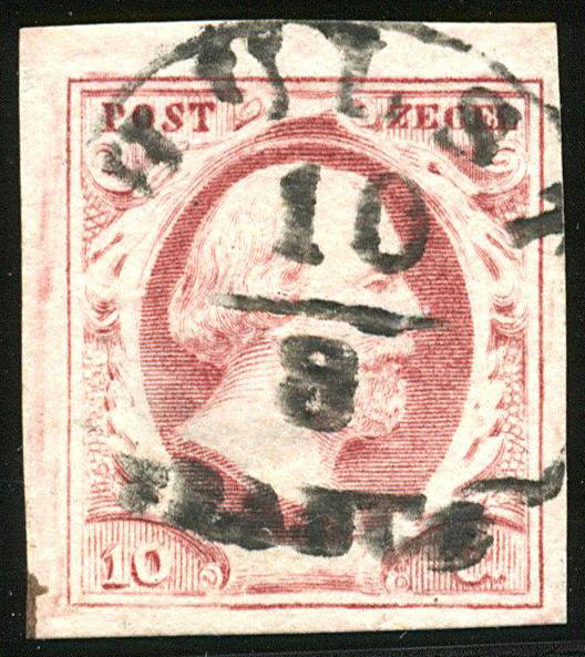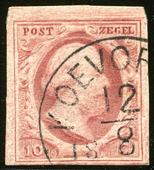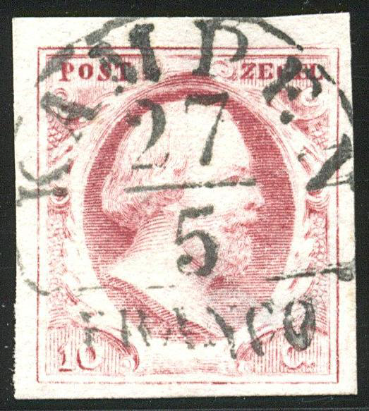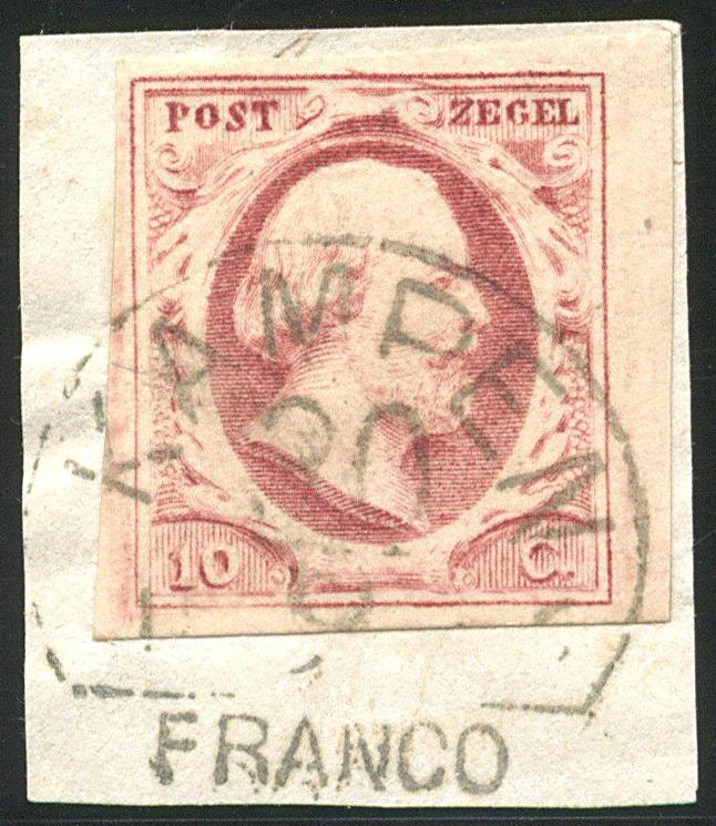 KAMPEN A (de H/S 100) op 10 cent nr. 2b-Pl.I-73. Vol tot breed gerande prachtzegel met een van de ons mooist bekende afst. (Image)