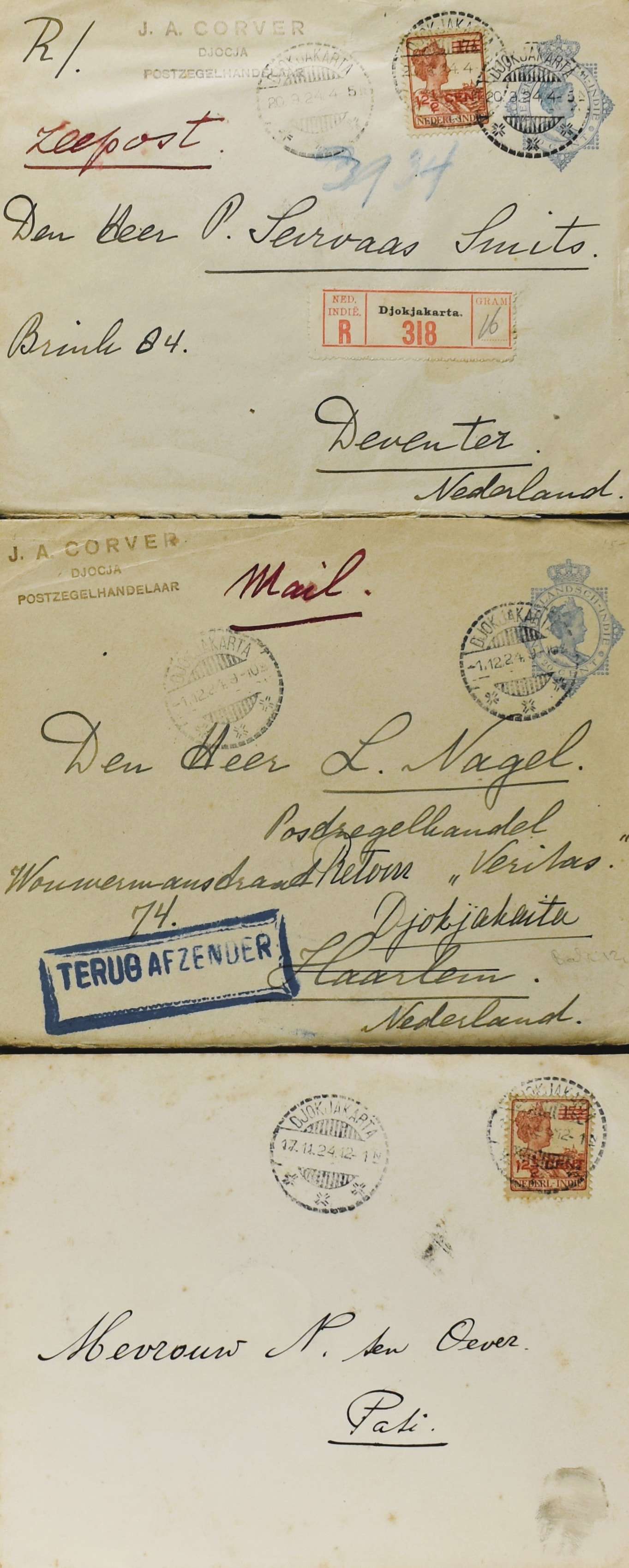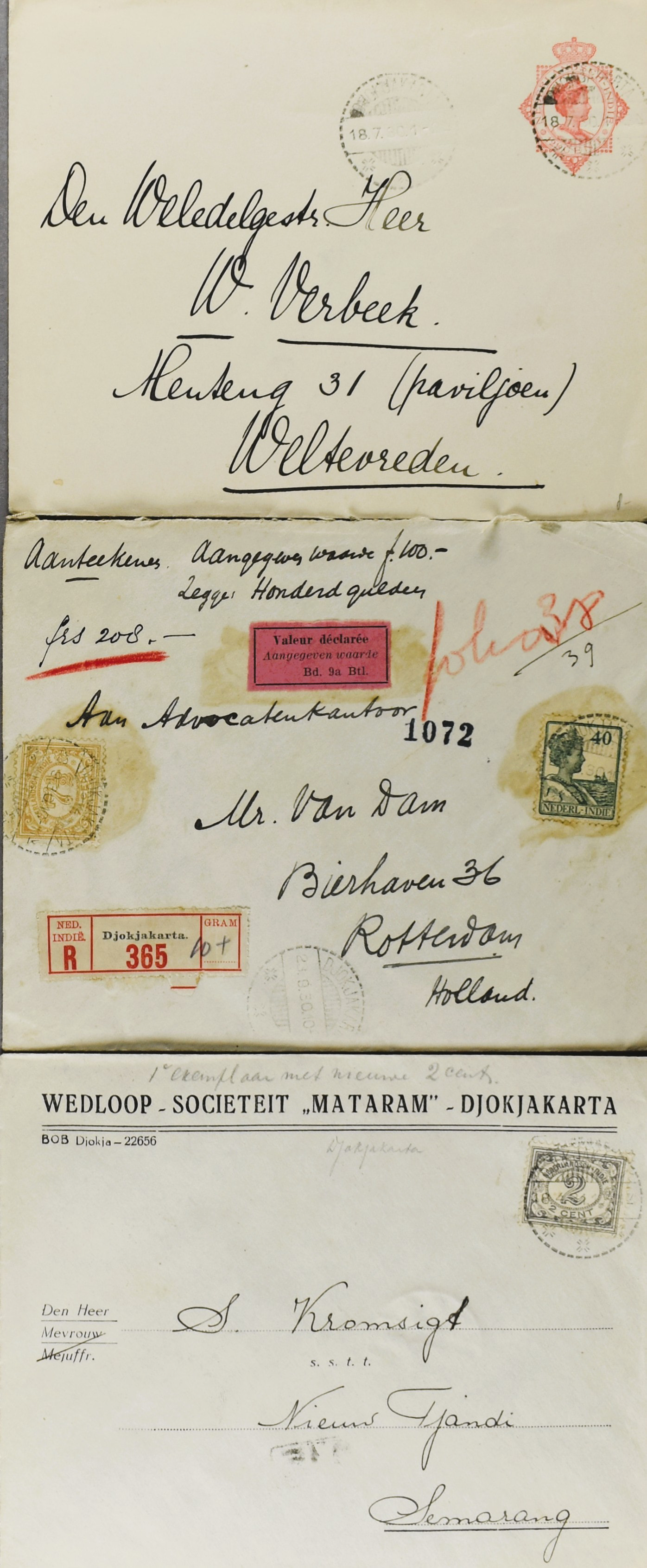 81 imageNED.- INDIË DJOKJAKARTA, ruim 260 poststukken ca. 1917-1949 allemaal van of naar Djokjakarta, verzameld voor de verschillende daar gebruikte typen langebalkstempels, met mooie frankeringen, aangetekend, bestemmingen, censuur, ook iets Japanse bezetting en Revolutieperiode, tevens losse zegels op insteekkaartjes en wat documentatie (Image) (Image2) (Image3) (Image4) (Image5) (Image6) (Image7) (Image8) (Image9) (Image10) (Image11) (Image12) (Image13) (Image14) (Image15) (Image16) (Image17) (Image18) (All Images)