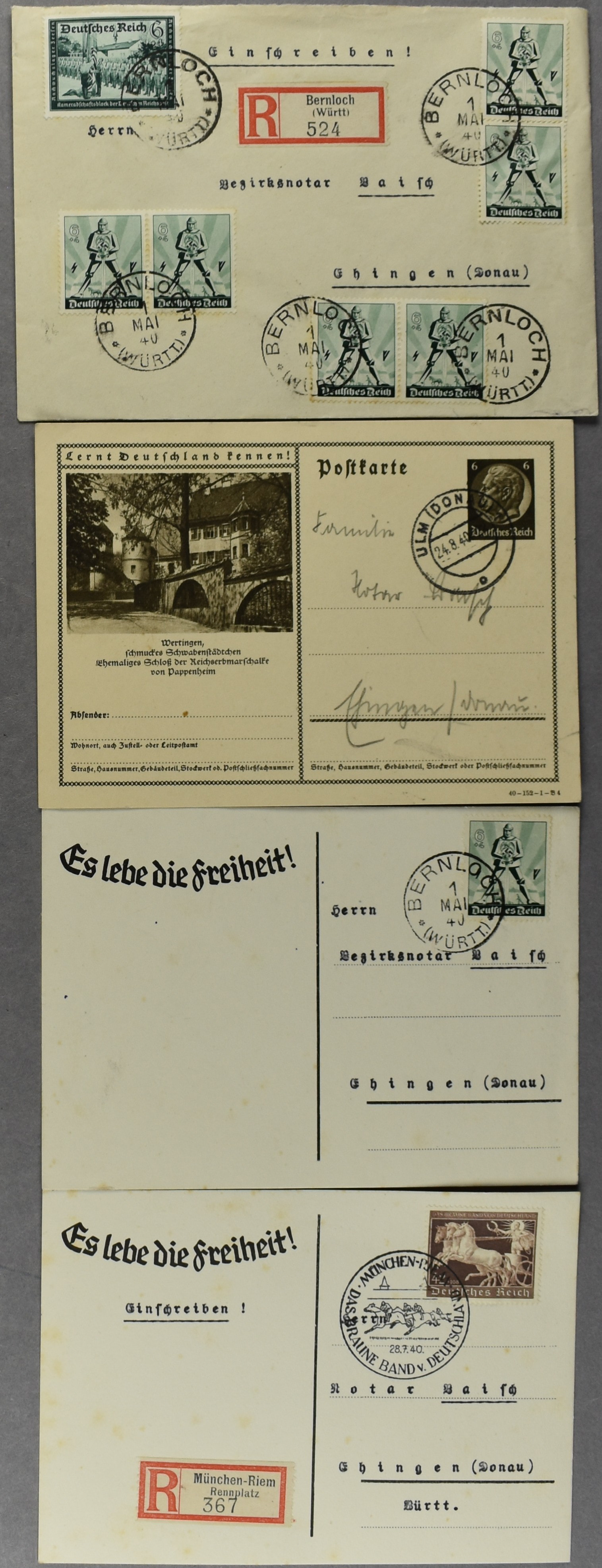 85 imageGERMANY 1919-1949, an interesting lot of covers and postal stationary from a notarial archive including several nice frankings, Block 1 on cover, the majority of the covers are from the "Third Reich" period, also some post-war period. (Image) (Image2) (Image3) (Image4) (Image5) (Image6) (Image7) (Image8) (Image9) (Image10) (Image11) (Image12) (Image13) (Image14) (Image15) (Image16) (Image17) (All Images)