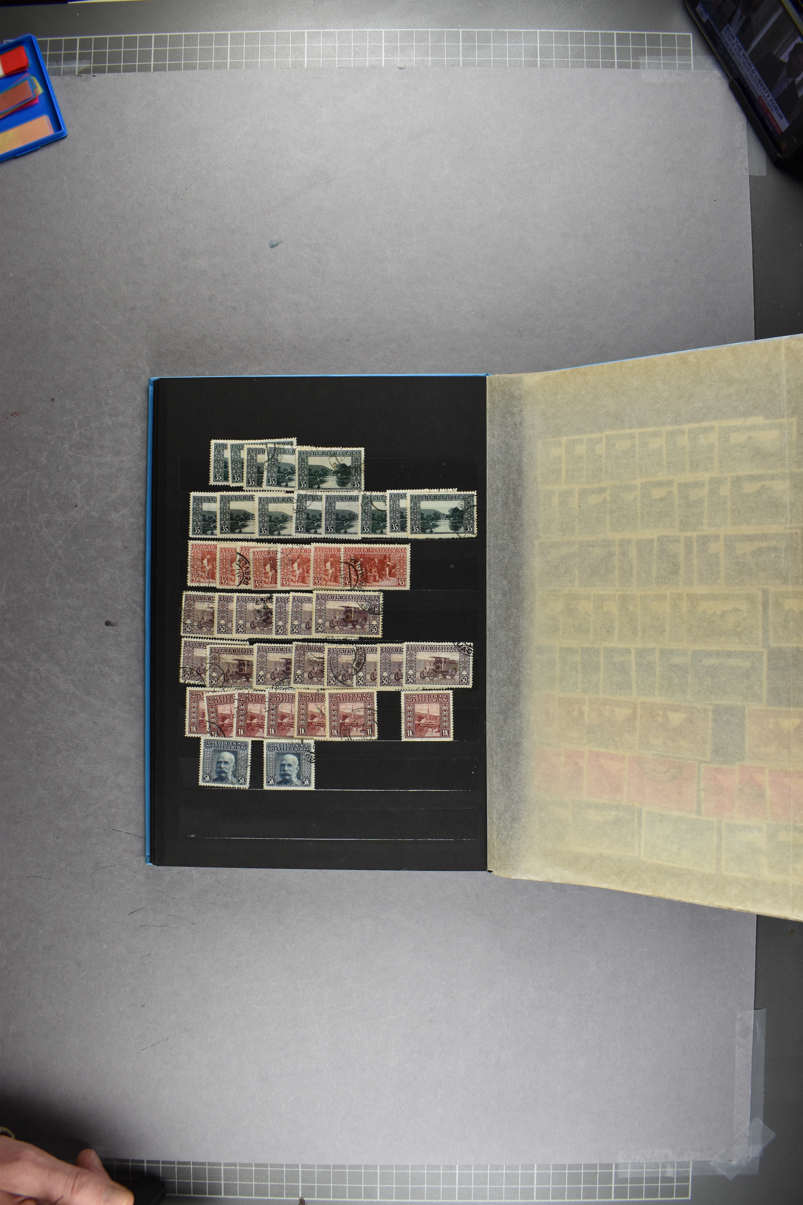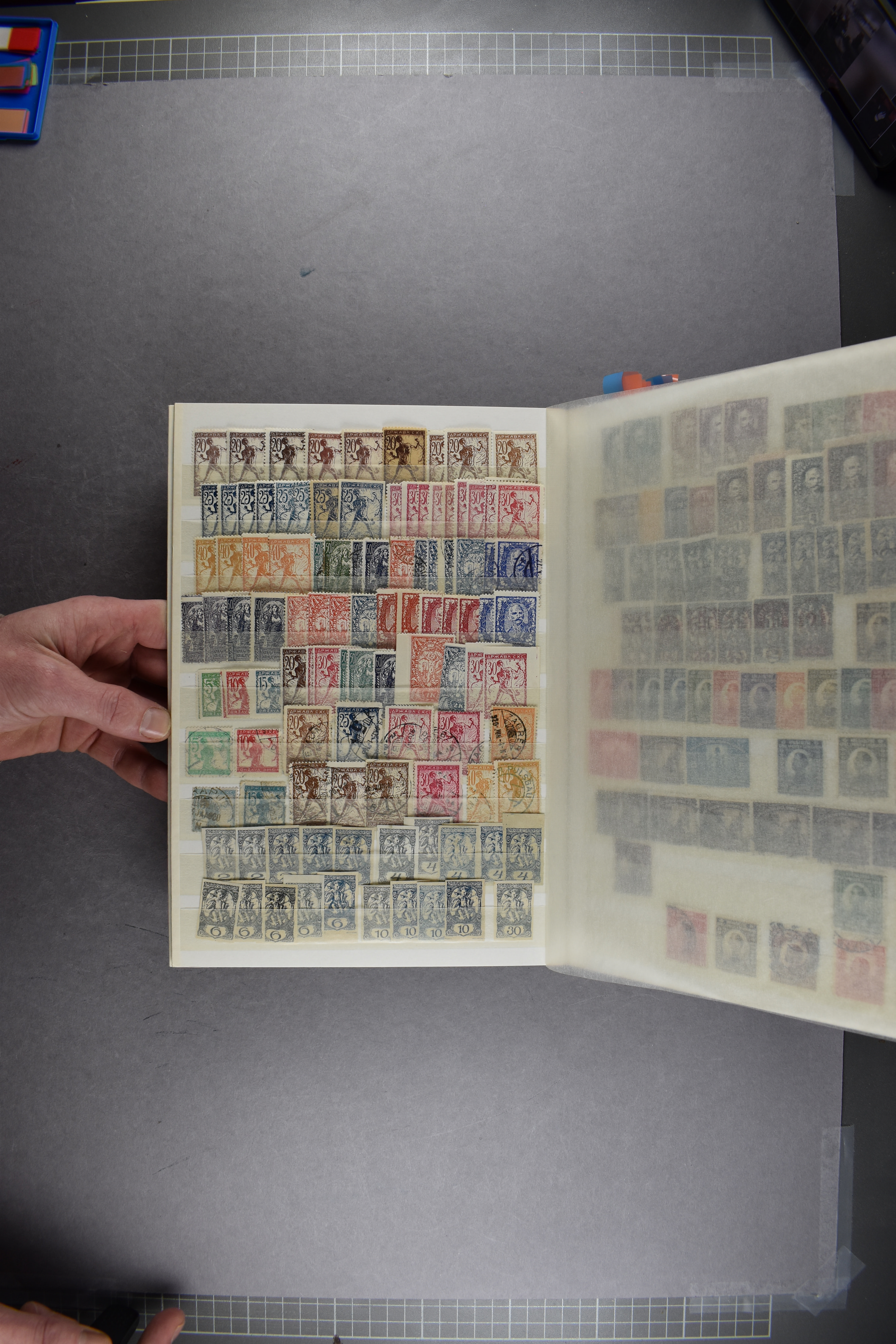99 WORLD A/Z o/*/**, in 29 stockbooks with a lot of thematic material with several better and useful numbers incl. South America, English & French Colonies, Asia, etc. The lot is wel depicted on our website, housed in 2 moving boxes.