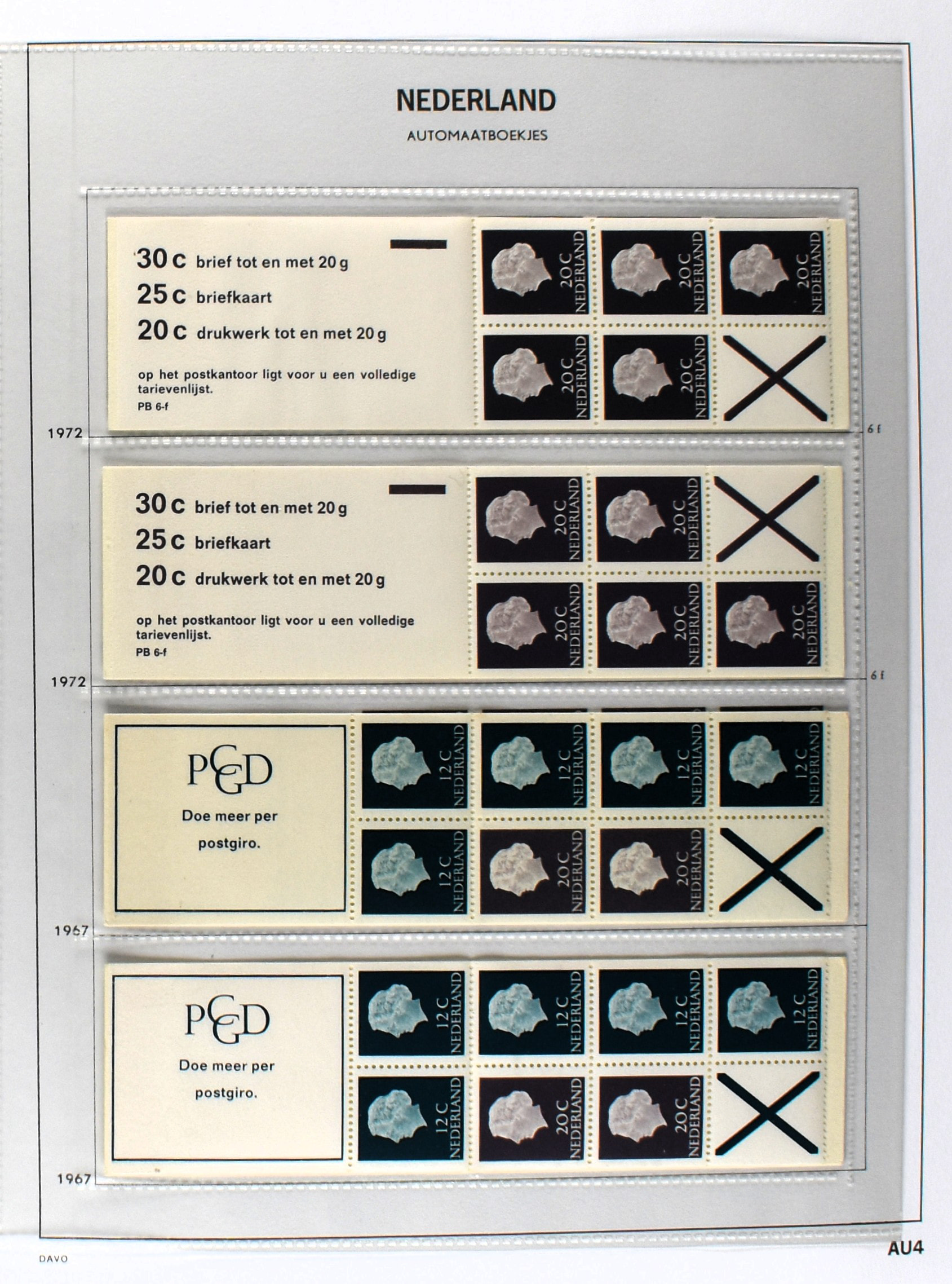 102 imageNEDERLAND, verzameling postfrisse automaatboekjes 1/79 in 2 Davo albums alsmede 2 insteekboeken diversen met een totaal van € 625 aan frankeergeldig materiaal. (Image) (Image2) (Image3) (Image4) (Image5) (Image6) (Image7) (Image8) (Image9) (Image10) (Image11) (Image12) (Image13) (Image14) (Image15) (Image16) (Image17) (Image18) (All Images)
