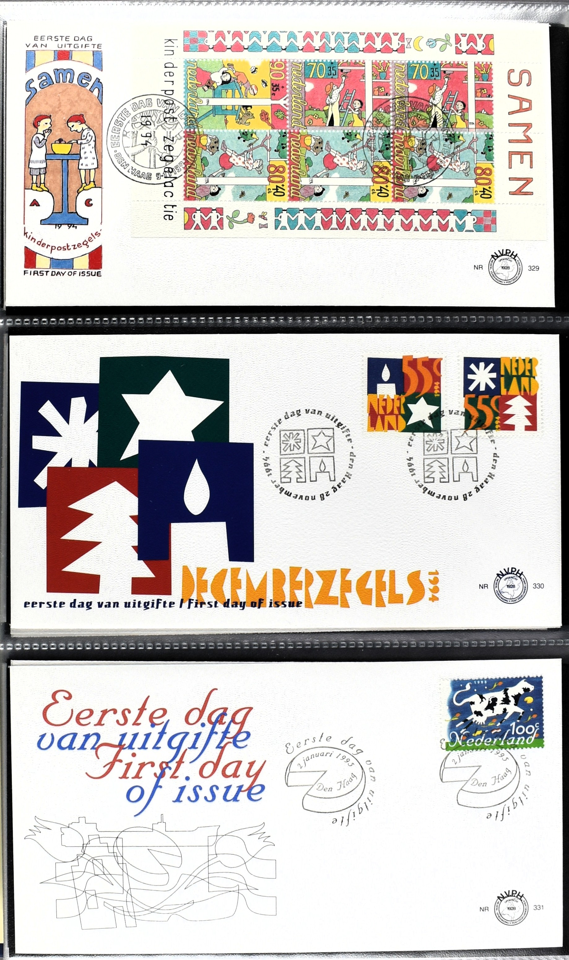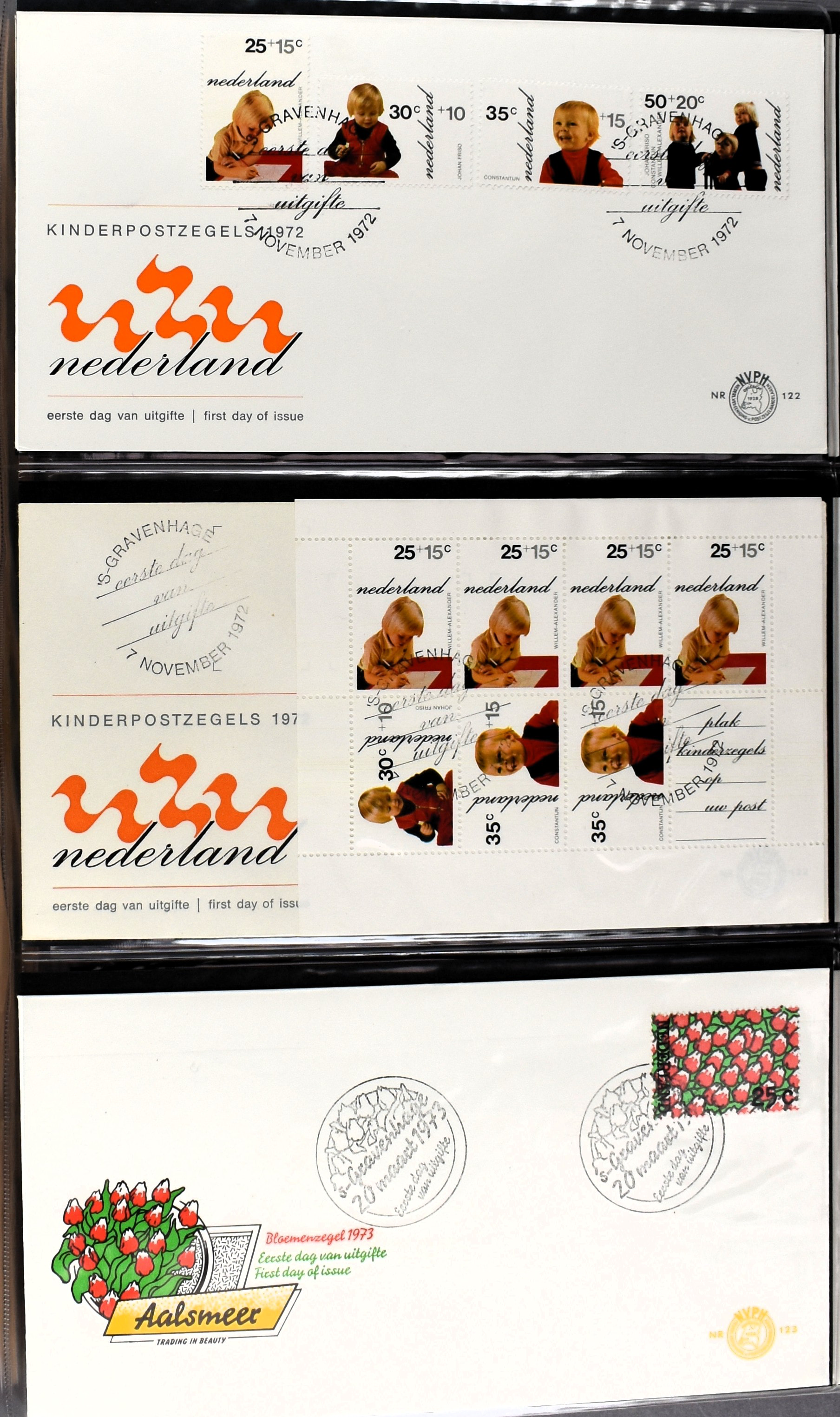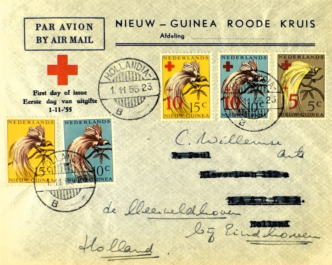 117 imageNED. NIEUW-GUINEA FDC's, een zeer uitgebreide verzameling inclusief voorlopers van nrs. 45/48, 38/40 en 41/44, elk nummer E1 t/m E11 zit in een aparte kleine ringband, sterk gespecialiseerd w.o. aangetekend, binnenlandse bestemmingen en naar Nederland (w.o. vervuild aangekomen exemplaren), diverse aankomststempels, diversen niet met speciaal FDC-stempel maar van bestelhuis met datum, blanco enveloppen, met wellicht voor de expert diverse andere variëteiten, etc. in totaal 12 ringbandjes in doos. Voor de specialistische liefhebber! Ex Hoogenboom (Image) (Image2) (Image3) (Image4) (Image5) (Image6) (Image7) (Image8) (All Images)