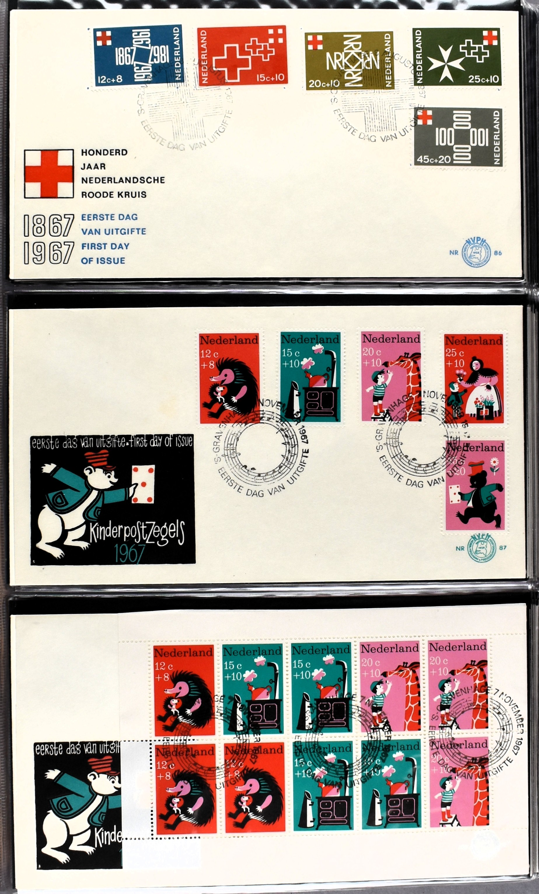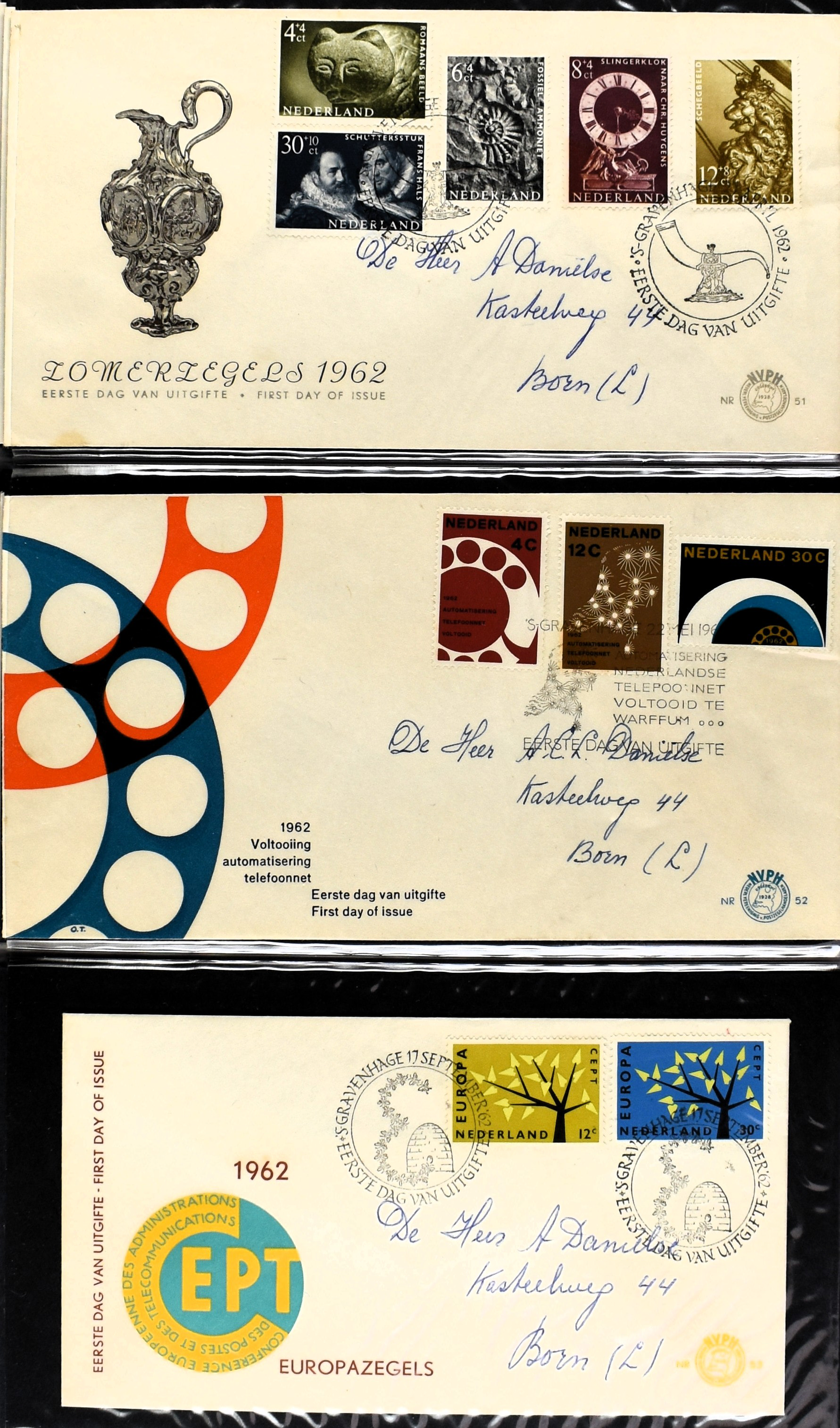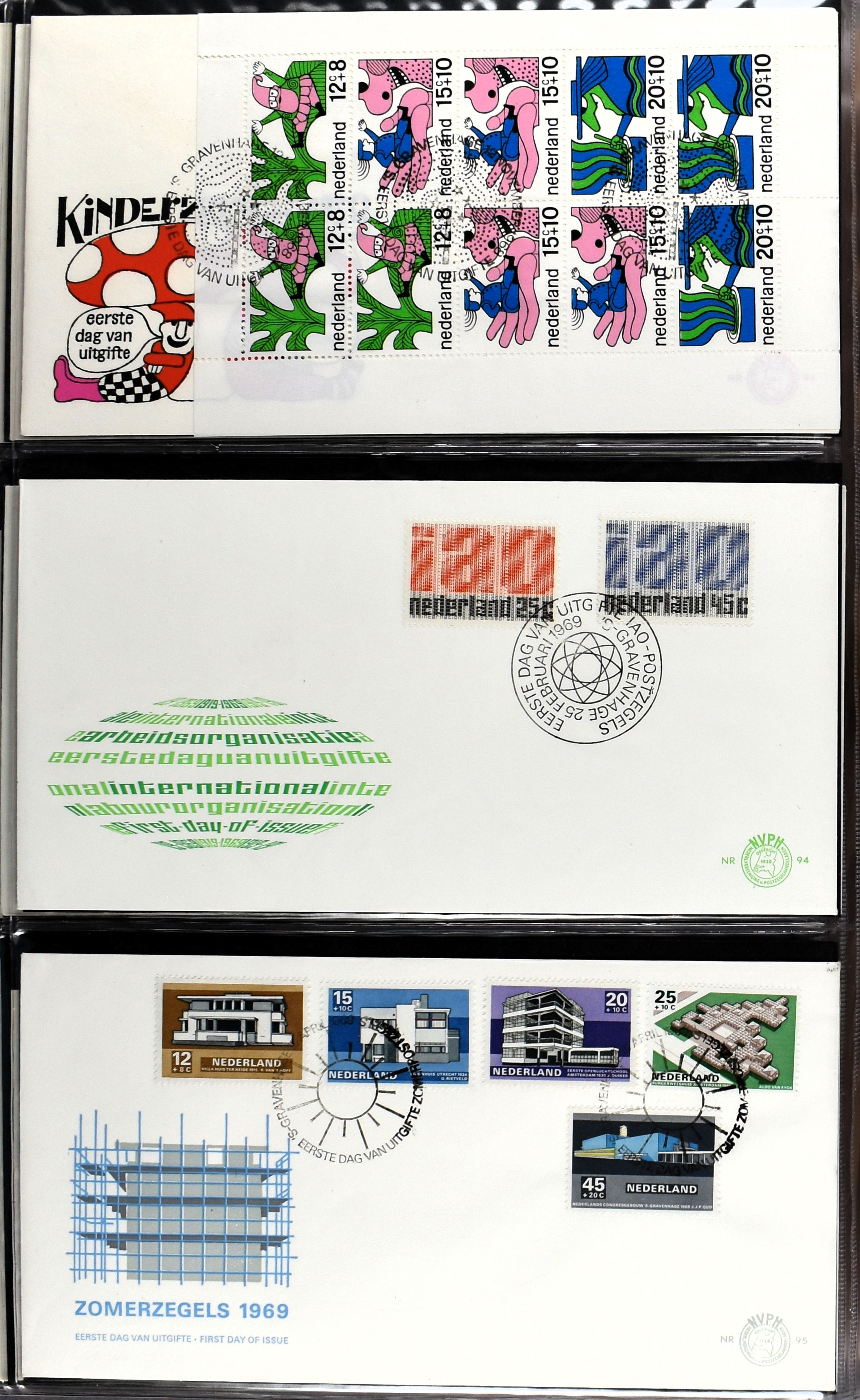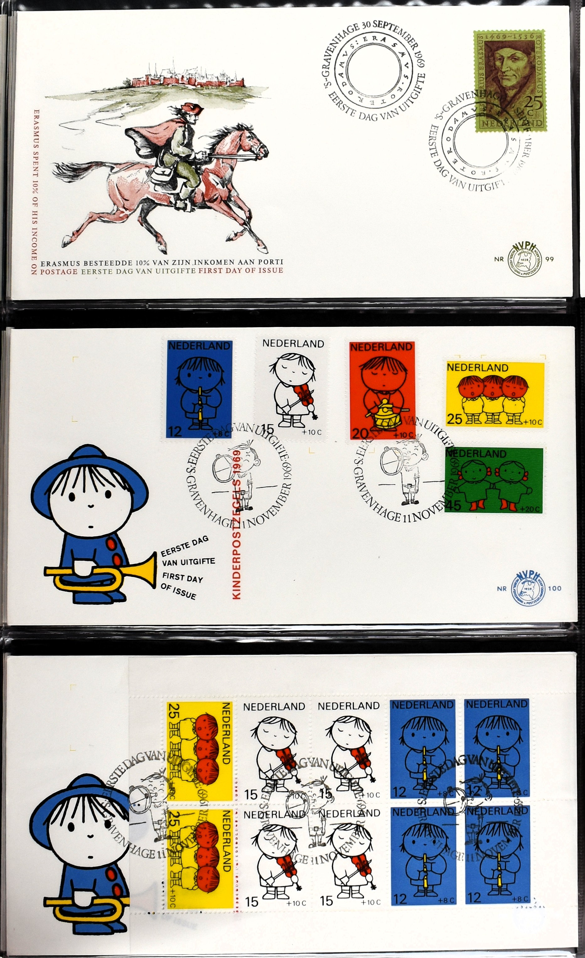 117 imageNED. NIEUW-GUINEA FDC's, een zeer uitgebreide verzameling inclusief voorlopers van nrs. 45/48, 38/40 en 41/44, elk nummer E1 t/m E11 zit in een aparte kleine ringband, sterk gespecialiseerd w.o. aangetekend, binnenlandse bestemmingen en naar Nederland (w.o. vervuild aangekomen exemplaren), diverse aankomststempels, diversen niet met speciaal FDC-stempel maar van bestelhuis met datum, blanco enveloppen, met wellicht voor de expert diverse andere variëteiten, etc. in totaal 12 ringbandjes in doos. Voor de specialistische liefhebber! Ex Hoogenboom (Image) (Image2) (Image3) (Image4) (Image5) (Image6) (Image7) (Image8) (All Images)