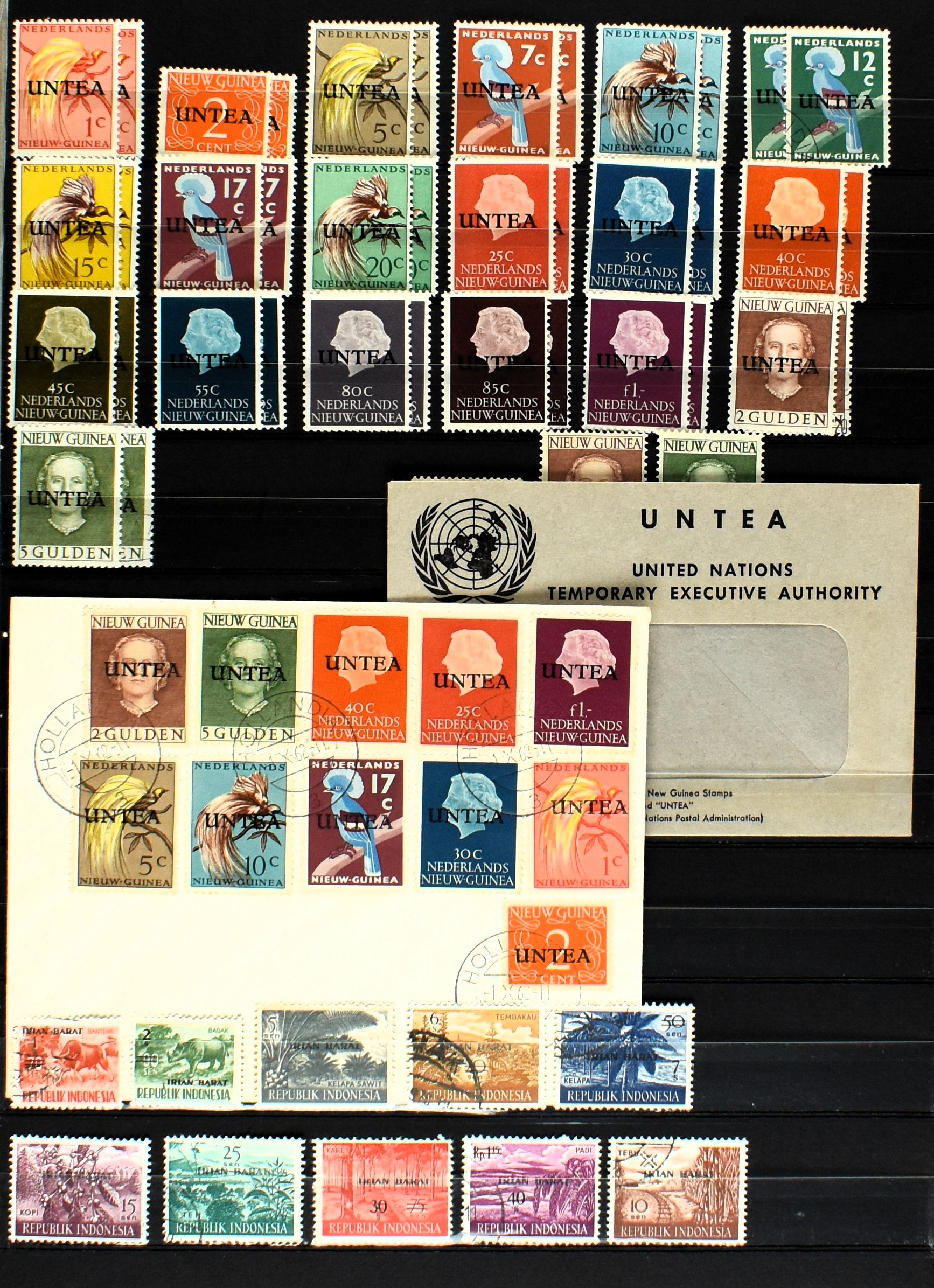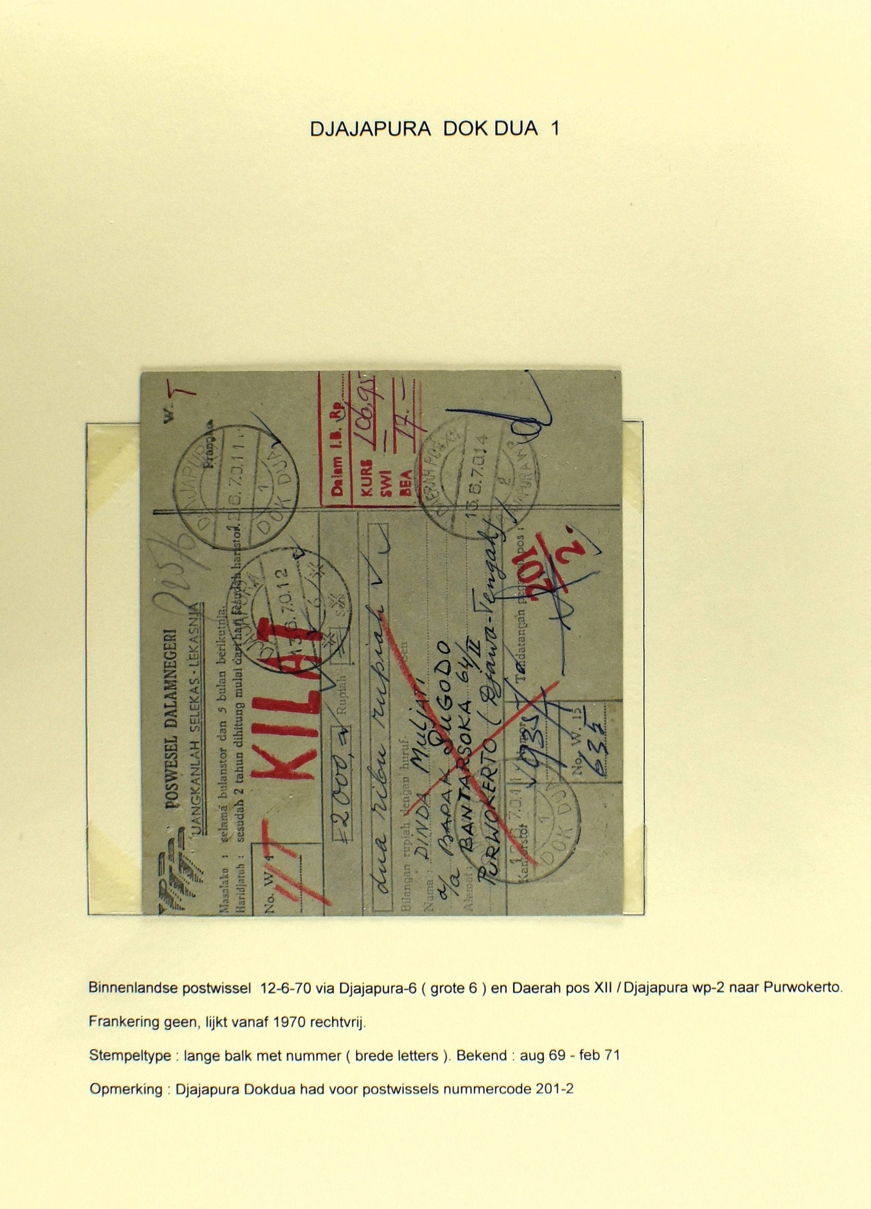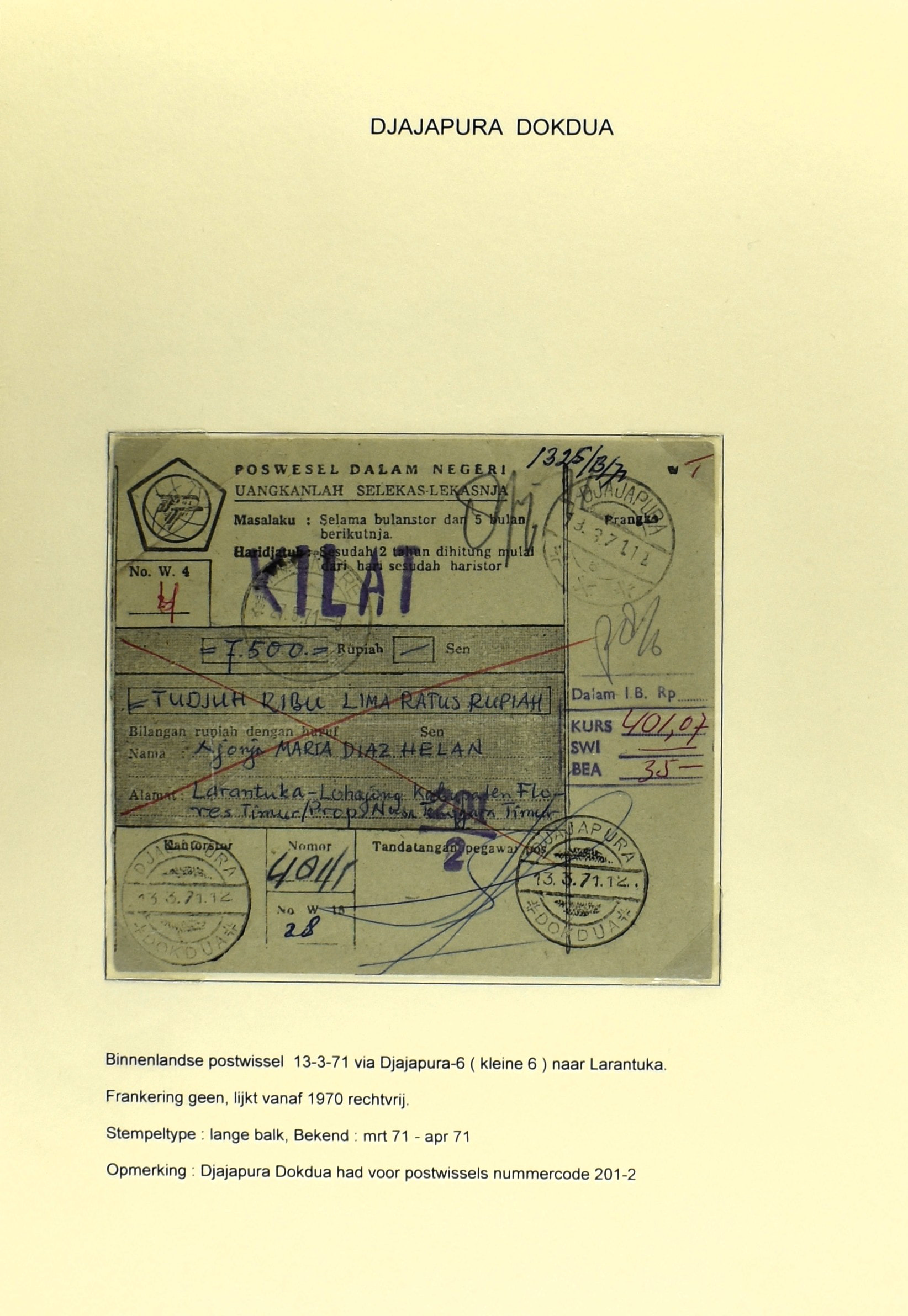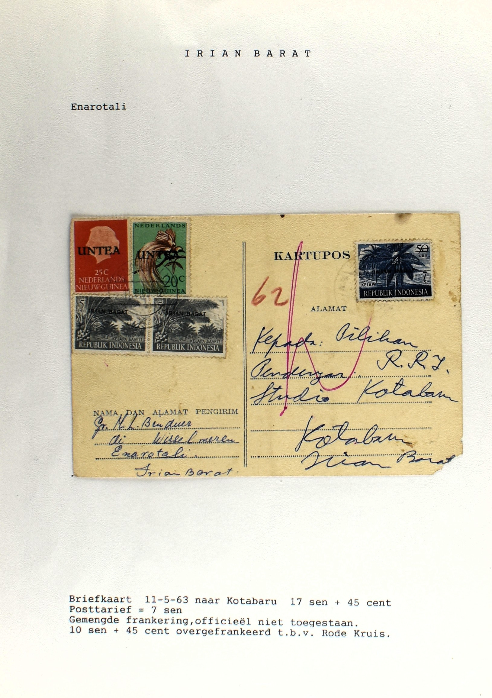 115 imageIRIAN BARAT POSTAL HISTORY, collection of hundreds postal items consisting of covers, postcards, a wide variety of all kinds of postal forms, postal labels including for registered and by express delivery, airmail, postage stamps (IB 1963-1970 and Irian from 1971 onwards), postage stamps including postage dues on entire, a wonderful array of postmarks including many delivery houses (= rumahpos), well documented written up on album pages in 2 ring binders, 3 small boxes (IB, Irian from 1971 and Rumahpos), and 2 stock books with stamps on pieces etc. etc. In such a quantity and variety never offered before. Ex Hoogenboom (Image) (Image2) (Image3) (Image4) (Image5) (Image6) (Image7) (Image8) (Image9) (Image10) (Image11) (Image12) (Image13) (Image14) (Image15) (Image16) (Image17) (Image18) (Image19) (Image20) (Image21) (Image22) (Image23) (Image24) (Image25) (All Images)