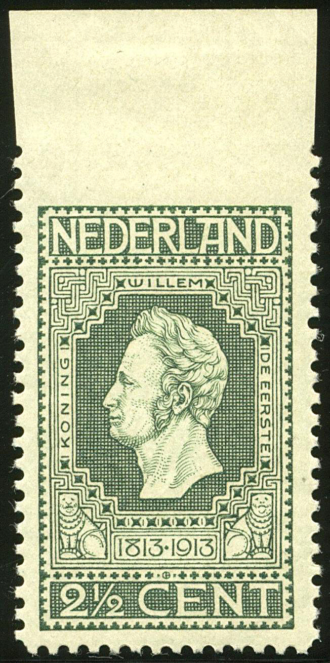 90Av, 2½ cent groen, Lt. 11½ x 11, met variëteit: bovenzijde ongeperforeerd, ongebruikt prachtex. met certificaat NKD (2013) € 400 (Image) (Image2)