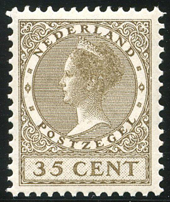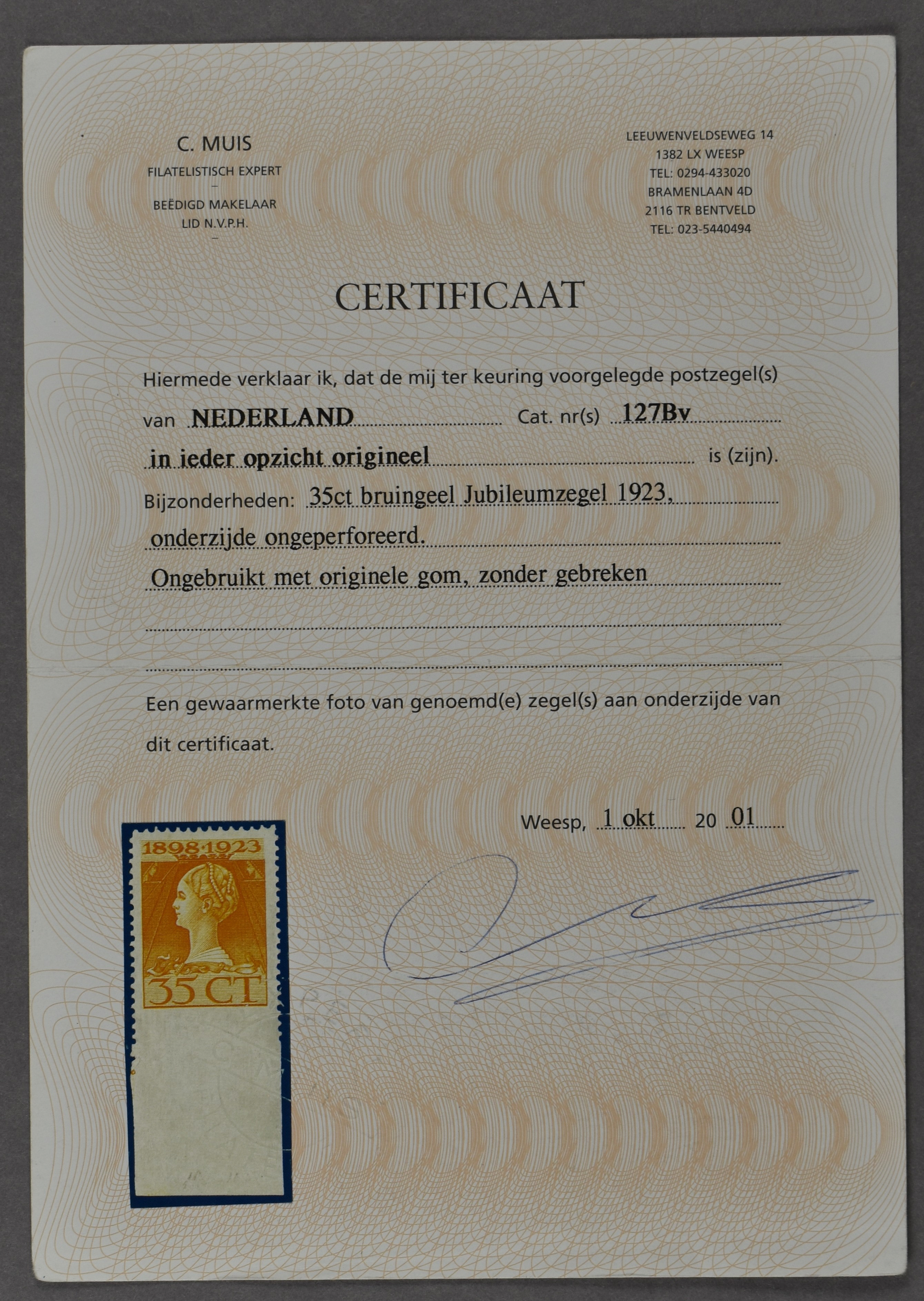 127Bv, 35 cent bruingeel, met variëteit: onderzijde ongeperforeerd, ongebruikt prachtex. met certificaat Muis (2001) € 1500 (Image)