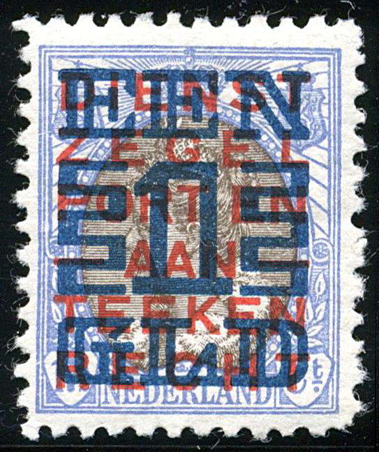 133B, 1 gld op 17½ cent ultramarijn en bruin, Lt. 11½, postfris prachtex. € 350 (Image)