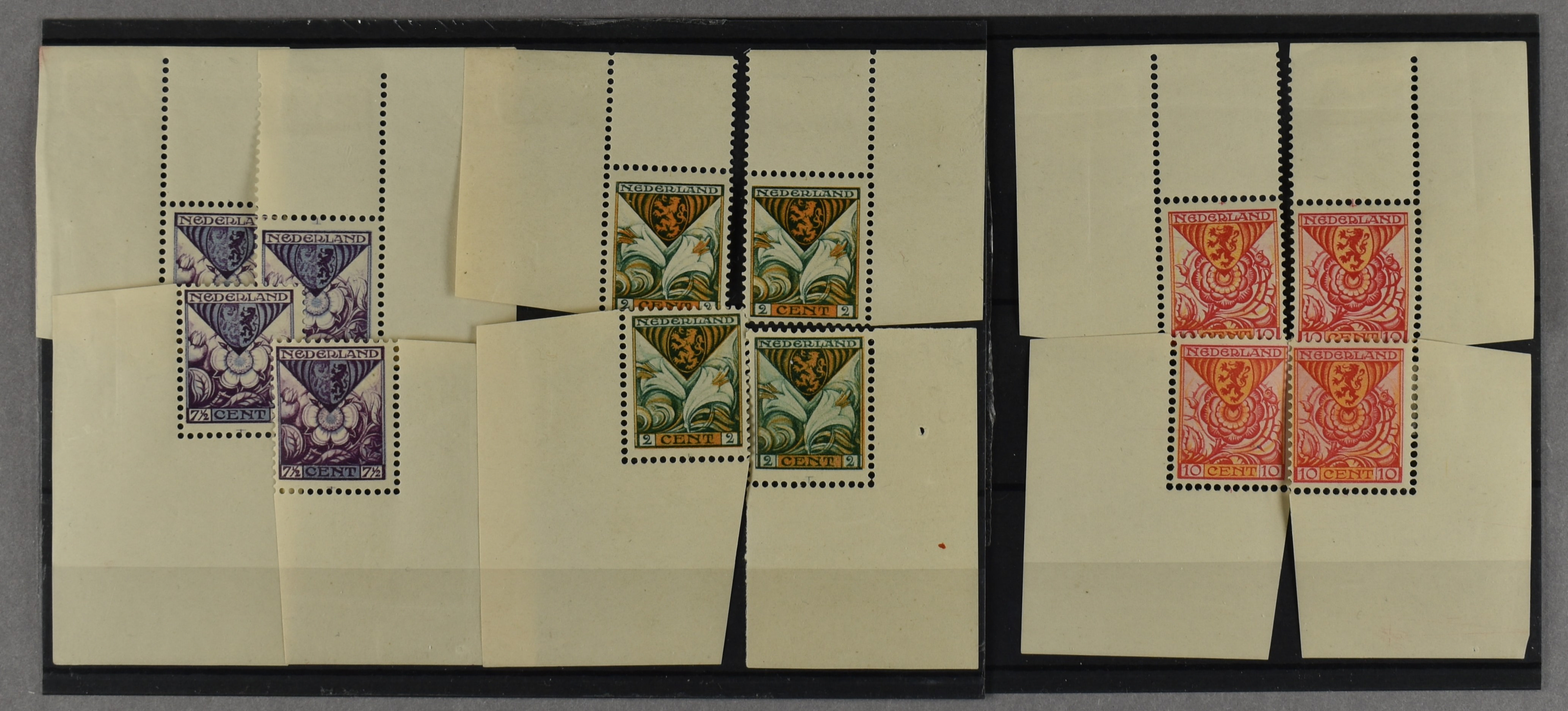 166a/d, 167a/d en 168a/d, kinderzegels 1925, hoekrandstukken met paskruizen boven of onder. Geheel compleet ongebruikt wb. div. waarden postfris. Zeldzaam geheel! € 580+ (Image) (Image2)