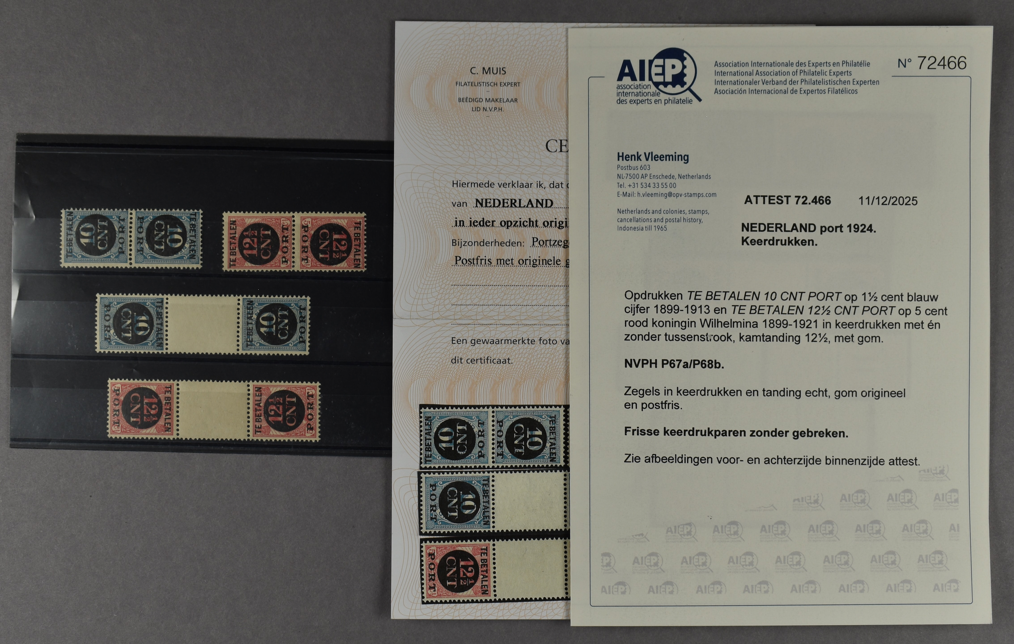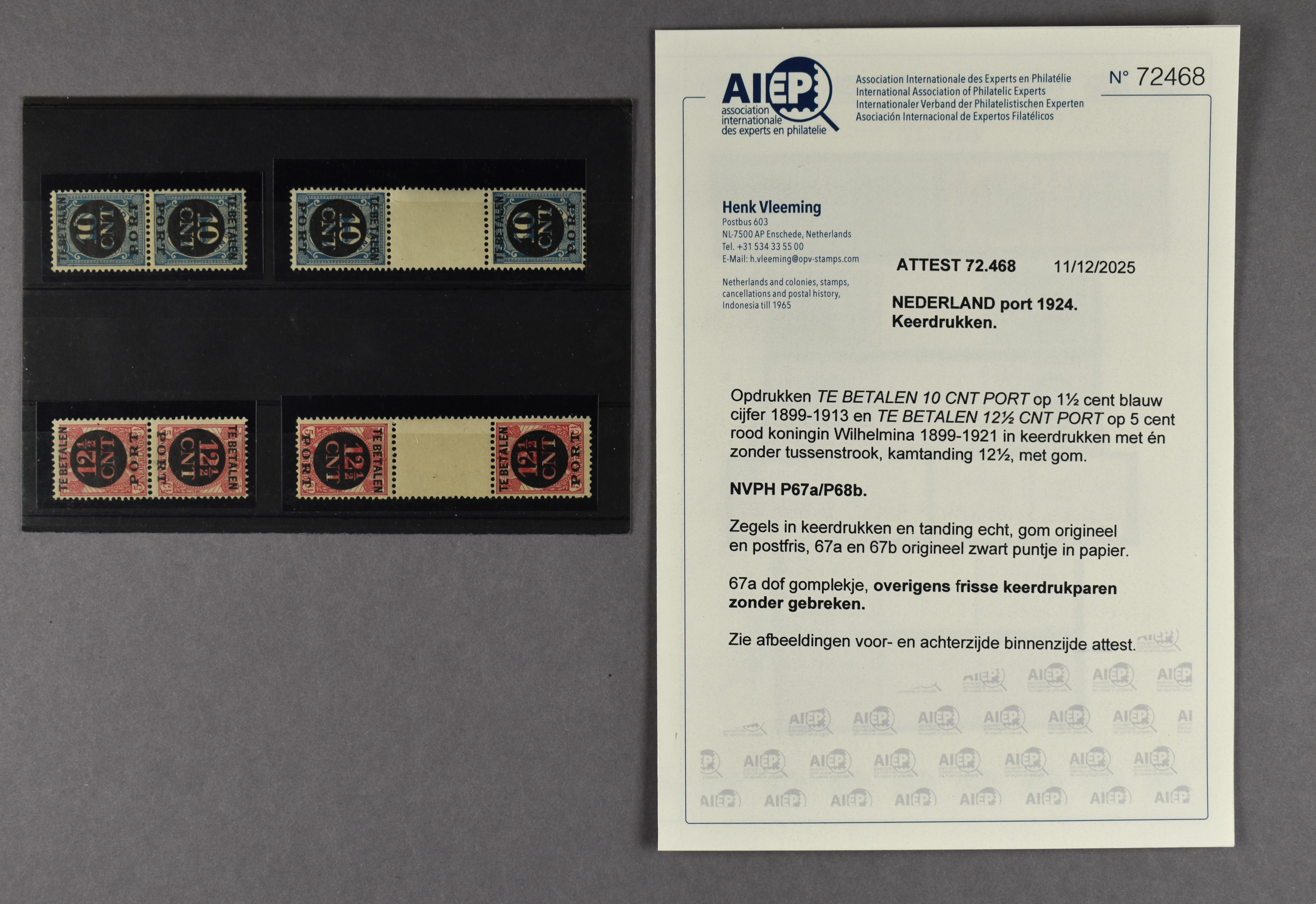 1411 nh imageP67a/P68b, keerdrukken zonder en met tussenstrook, postfrisse prachtex. met certificaat Vleeming (2025) € 825 (Image) (Image2) (All Images)