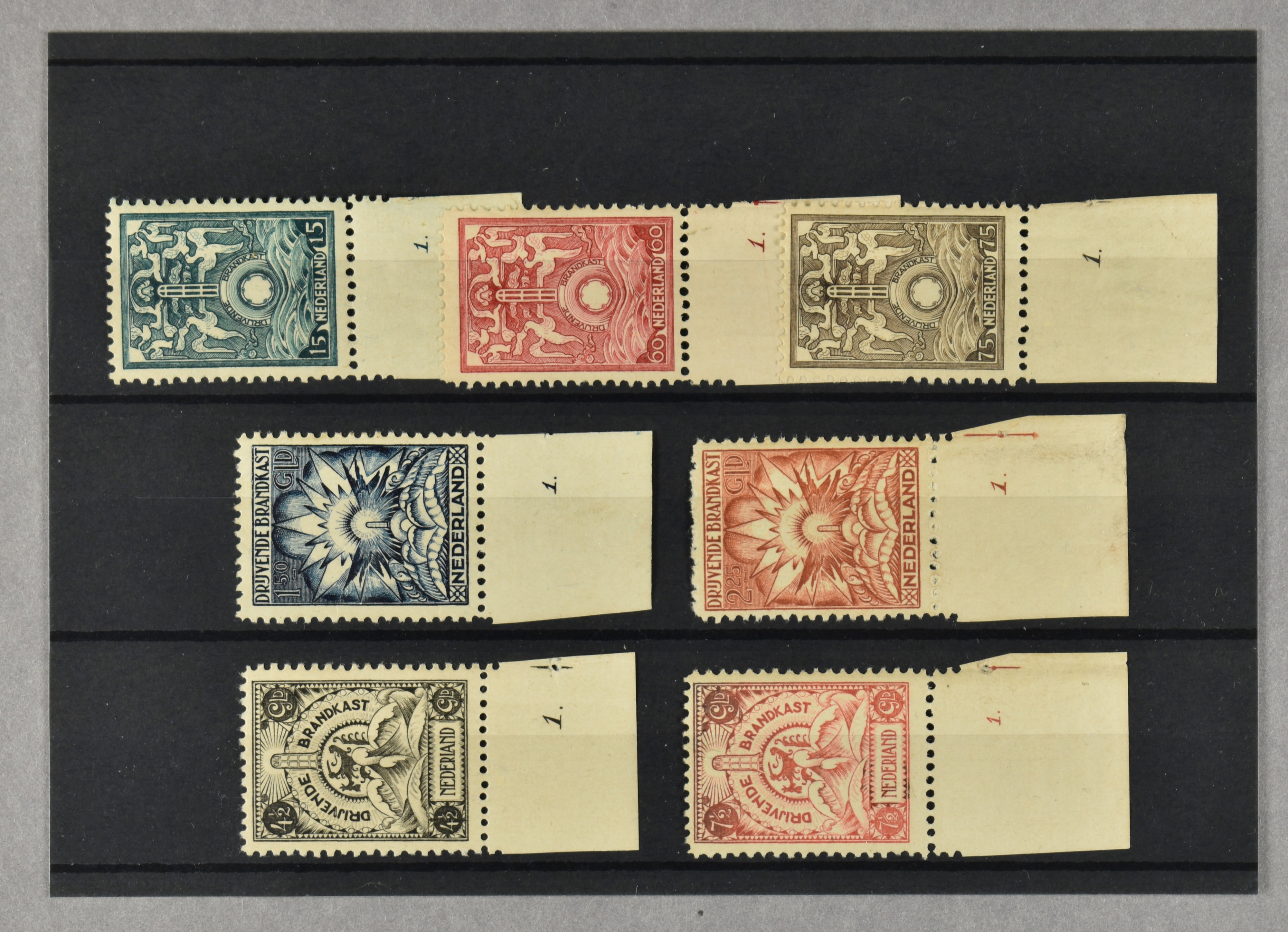 1421 og imageBK1/7, Brandkastserie met plaatnummer 1 in de ondervelrand. Prachtex. met plakker, 1½ gld originele gomvouw, 7½ gld boven iets geoxideerd. Schaarse set met plaatnummer! € 855 (Image) (Image2) (All Images)