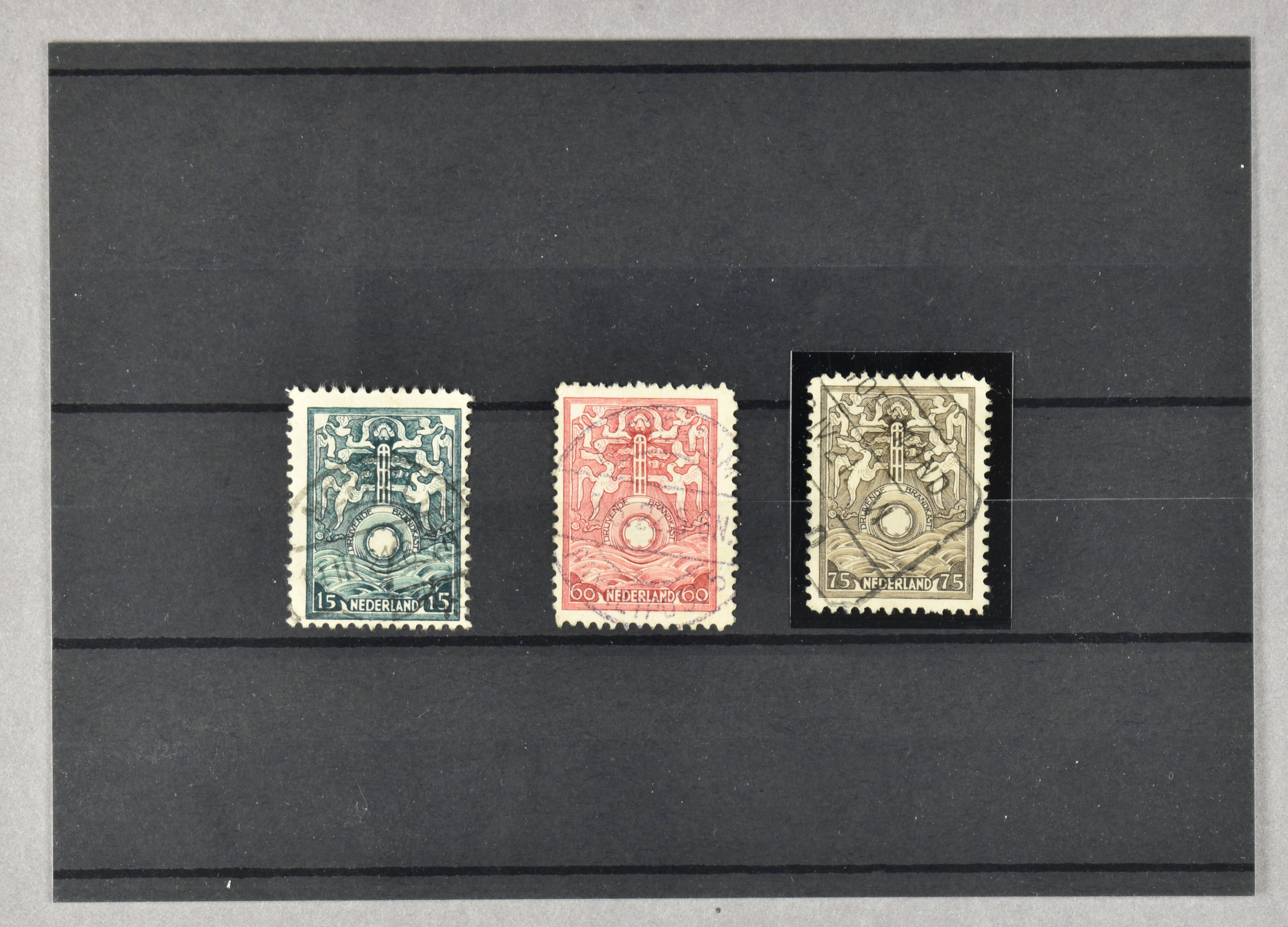 1422 imageBK1/3, echt gebruikte zegels van 15 cent (Meppel 19-3-1921), 60 cent (Amsterdam/Pakketpost 5 7-6-1922, violet) en 75 cent (trajectstempel Roermond-Venlo ..-4-1921). € 300+ (Image) (Image2) (All Images)