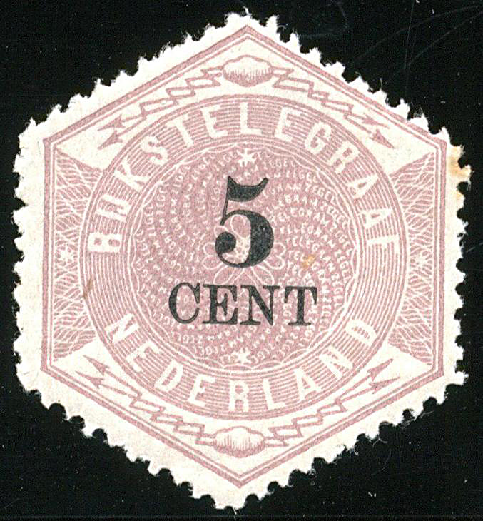 1437 nh imageTG3, 5 cent lila en zwart, postfris vrijwel prachtex. (1 bruin tandje, origineel klein papiervezeltje). € 550 (Image)