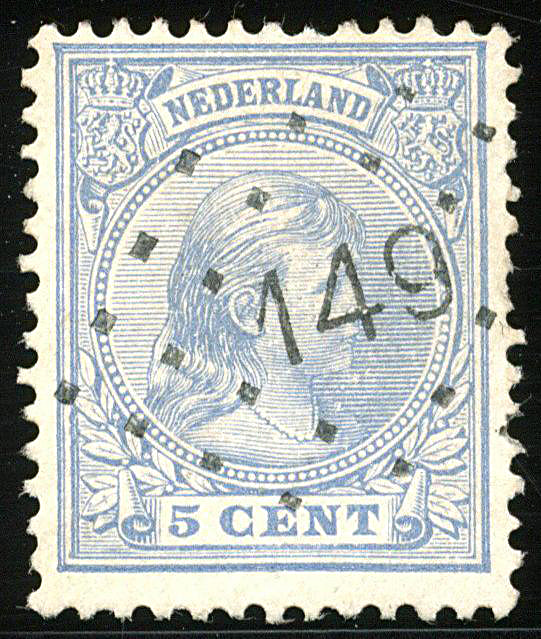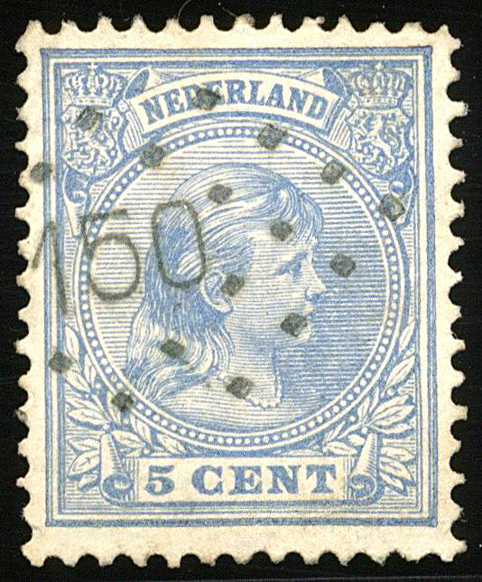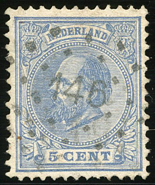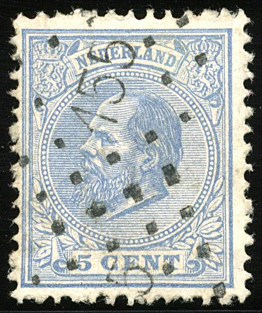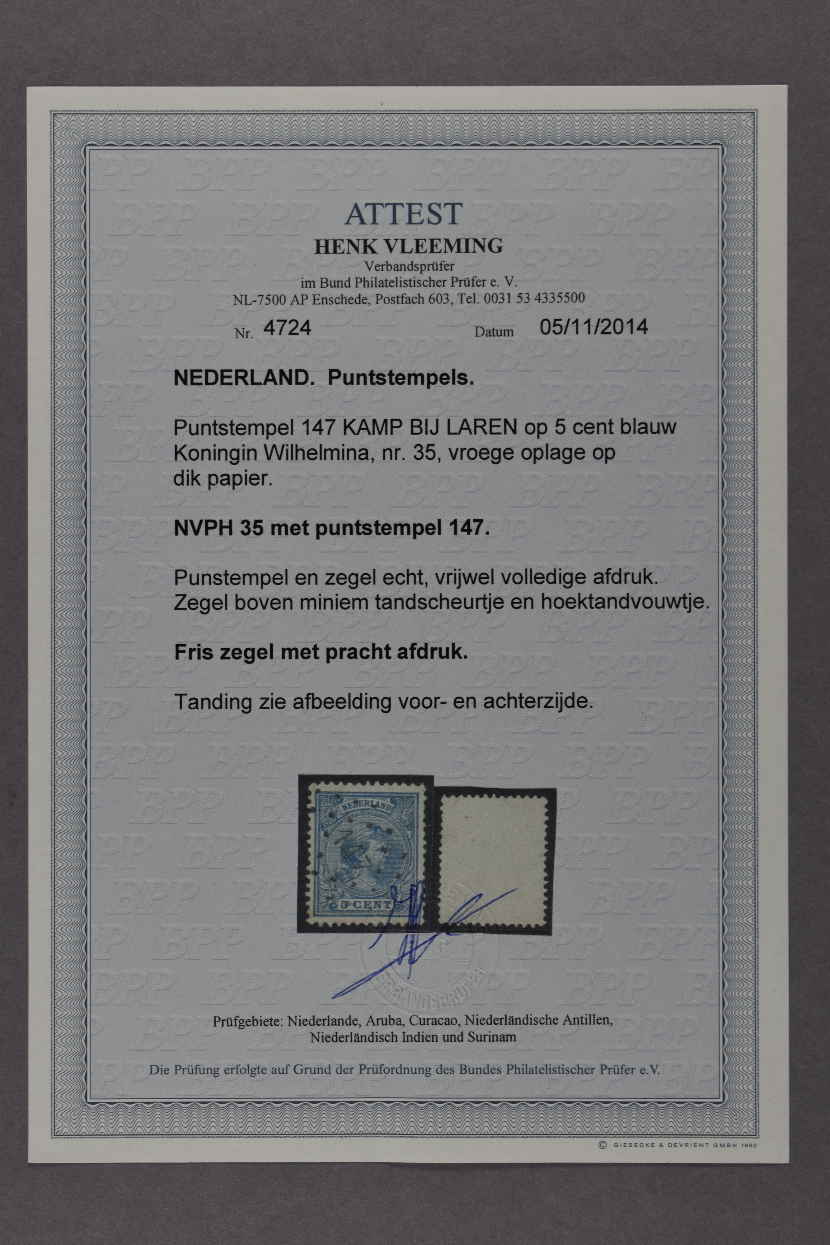 1563 o image147 = Kamp bij Laren op 5 cent blauw nr. 35. Zeer fraai zegel met prachtafdruk van dit buitengewoon zeldzame puntstempel, en met certificaat Vleeming (2019) (Image) (Image2) (All Images)