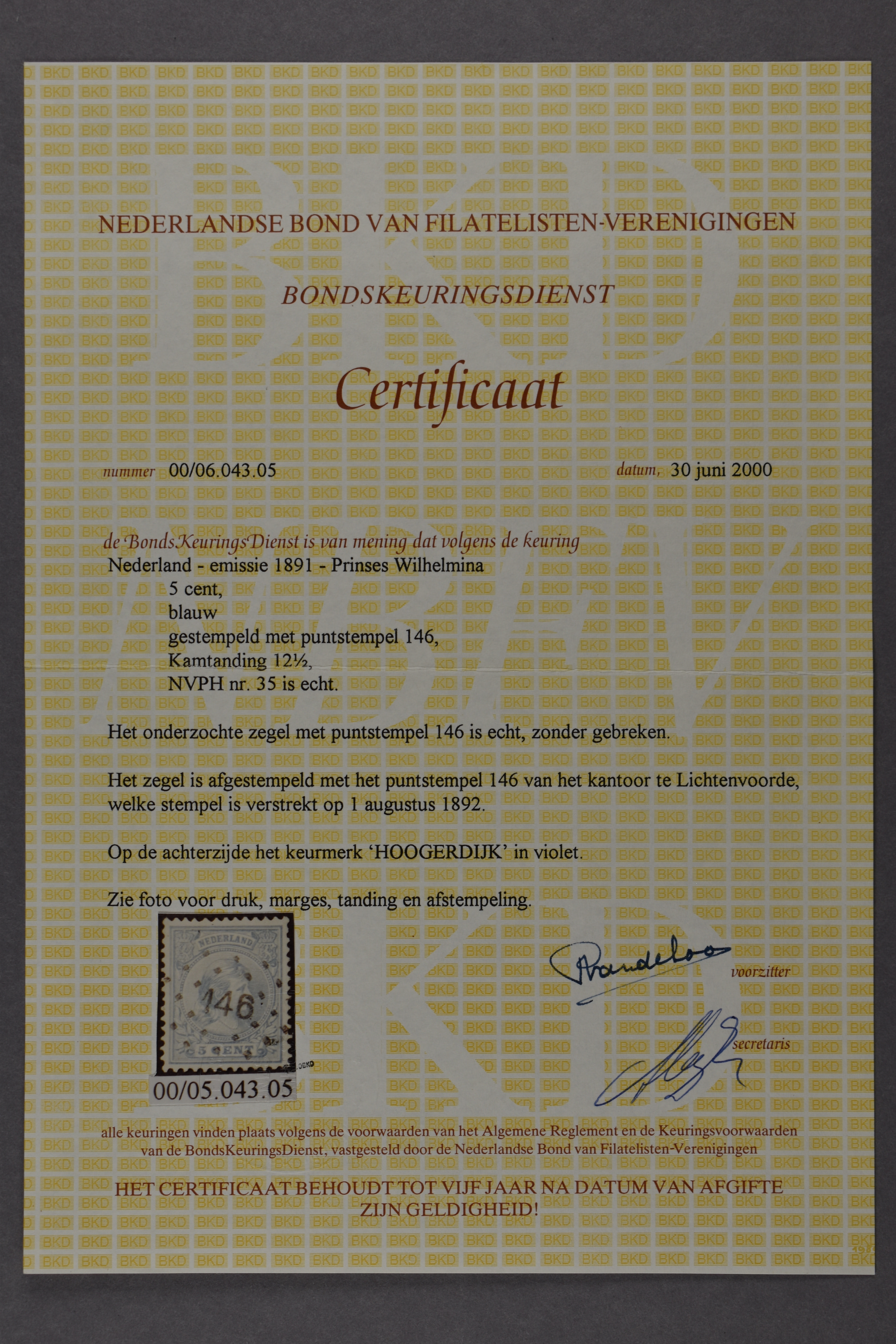 1562 o image146 = Lichtenvoorde op 5 cent blauw nr. 35. Prachtex. met keur Hoogerdijk en certificaat KNBF (2000) € 200 (Image) (Image2) (All Images)