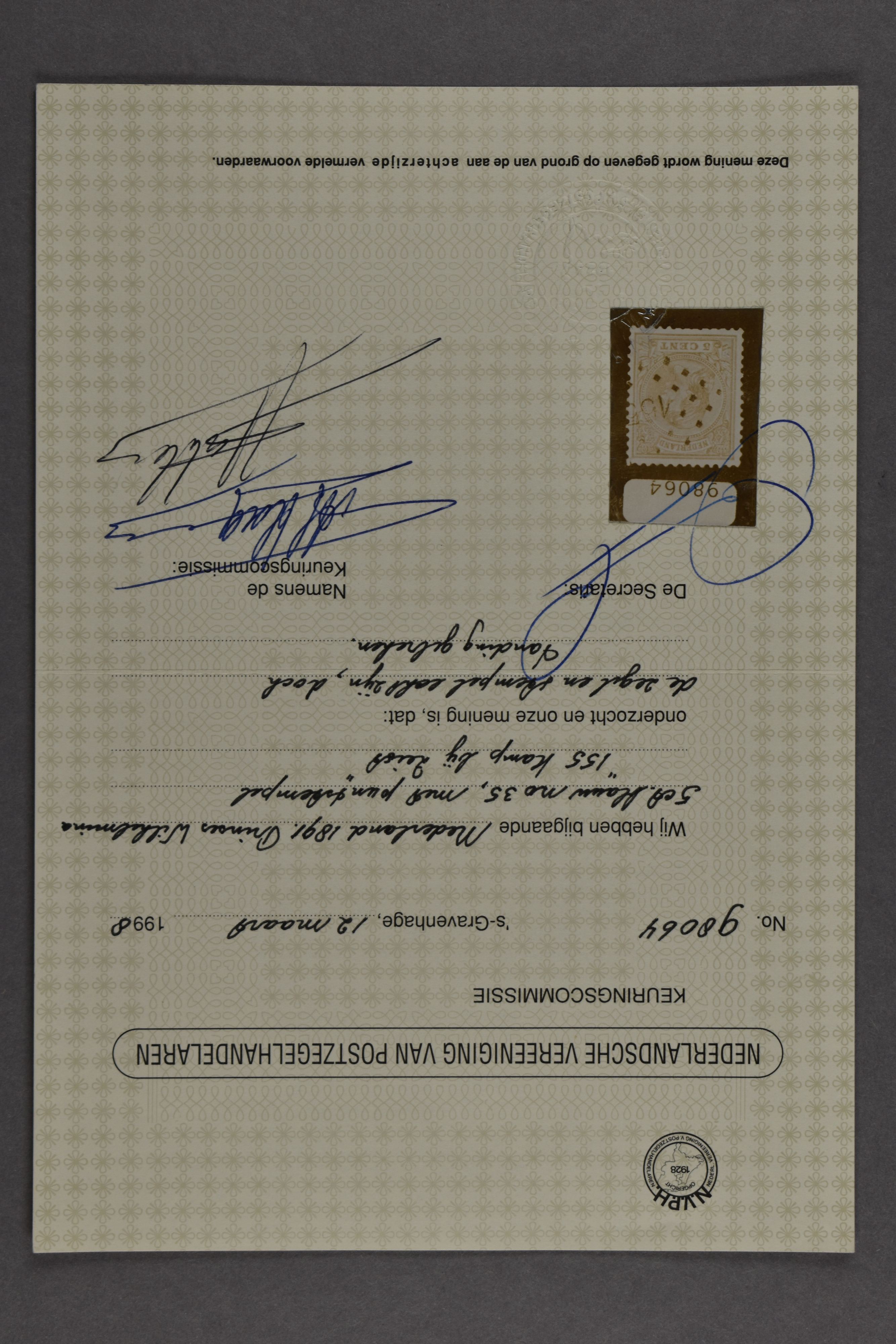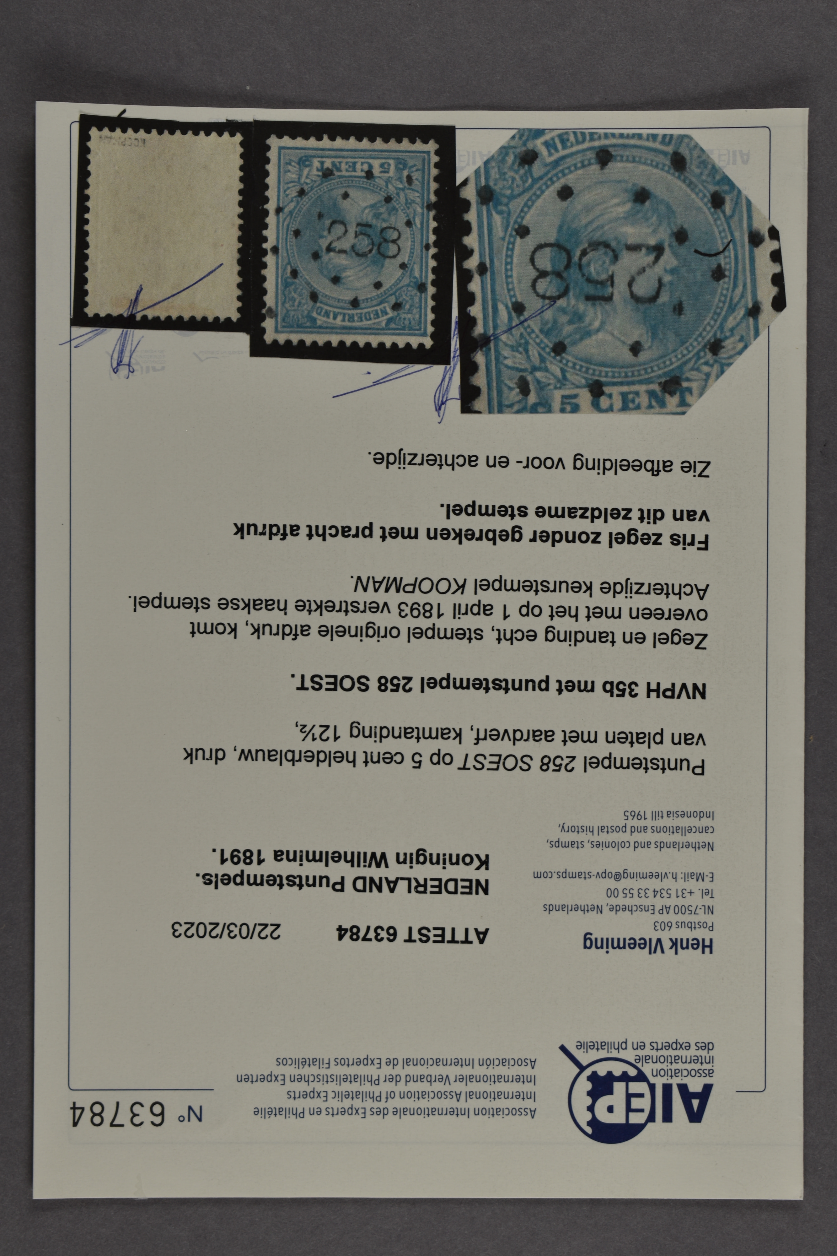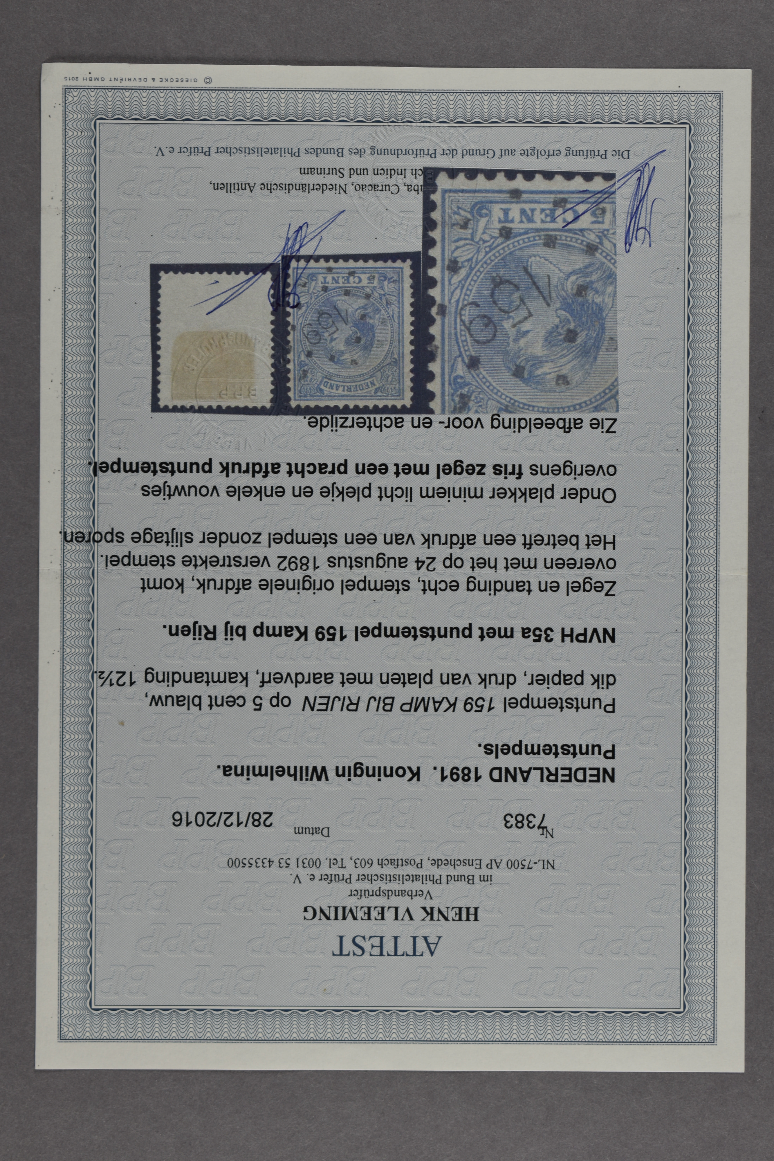 1571 o image258 = Soest op 5 cent blauw nr. 35. Prachtex. met keur Koopman en certificaat Vleeming (2023) € 600 (Image) (Image2) (All Images)