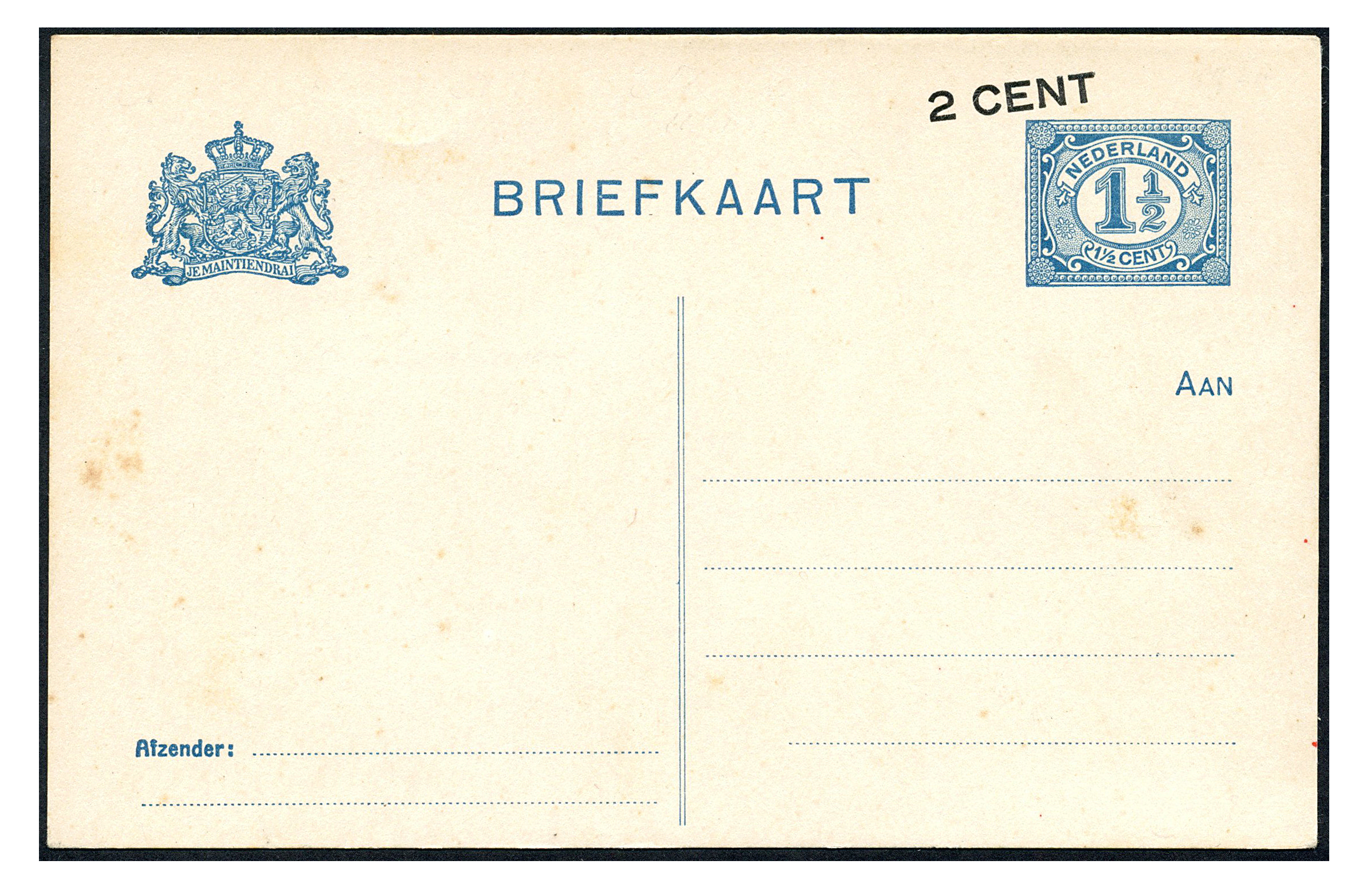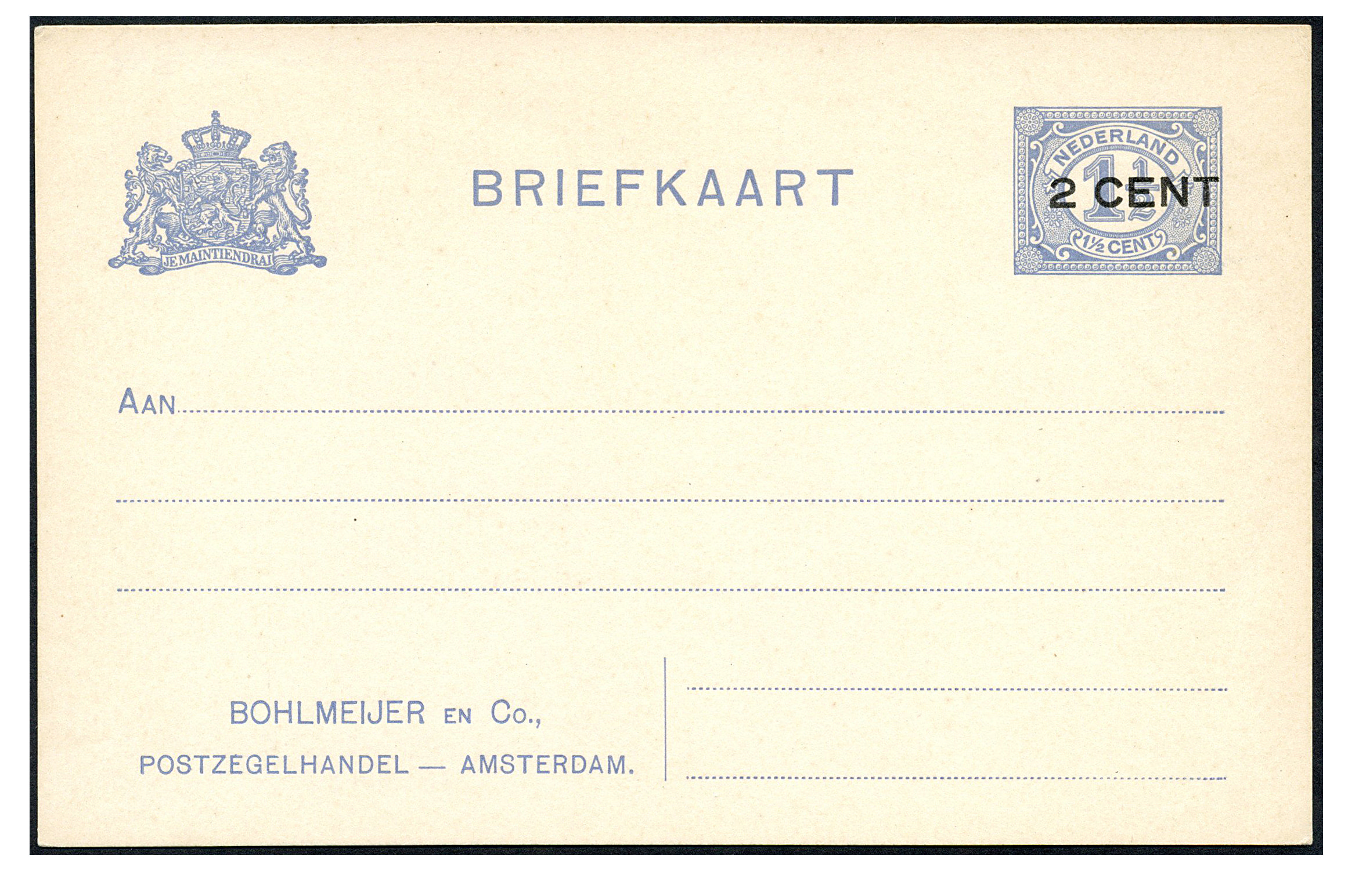 Particuliere briefkaart van 2 cent op 1½ cent P92-II-a, ongebruikte prachtkaart (Image)