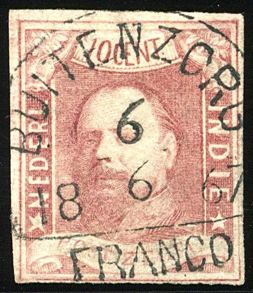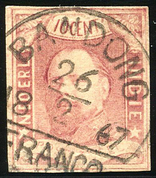 BENKOELEN op nr. 1. Prachtex. met fantastische afdruk van 18-10-1866. Ons slechts 4 afst. op nr. 1 bekend, waarvan dit de vroegst bekende datum van gebruik. V.1250 (Image)