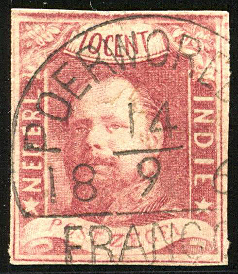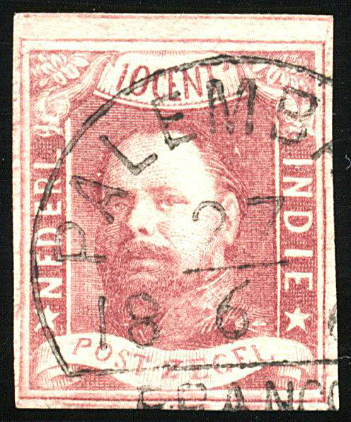 PEKALONGAN op nr. 1. Vrijwel prachtex. met mooie, scherpe afst. van 17-2-1869, de laatst bekende datum van gebruik. V.75 (Image)