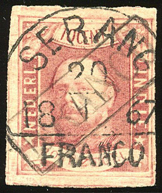 SERANG in combinatie met FRANCO op nr. 1. Aan 3 zijden zeer breed gerand prachtex. met ideale afst. halfrond-franco. V.225+ (Image)