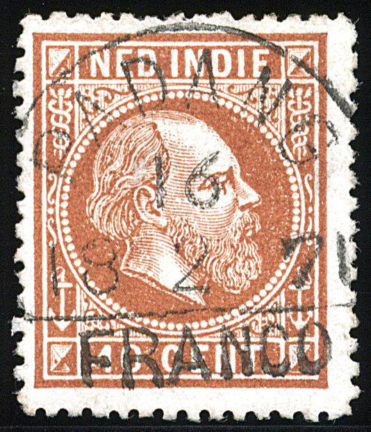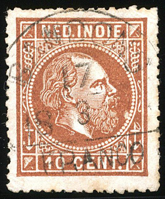 SERANG op 10 cent nr. 9A. Zeer fraaie zegel met ideale afst. van 21-1-1873. Slechts weinig afst. bekend. V.1000 (Image)