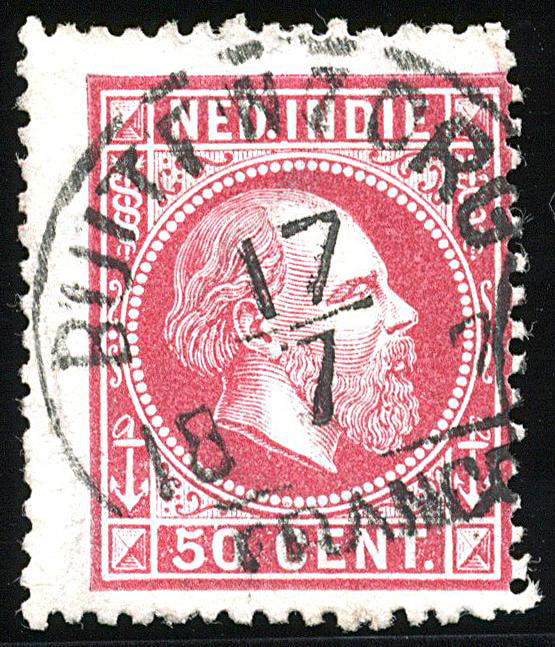 BUITENZORG op 50 cent nr. 15A. Prachtex. met nagenoeg ideale afst. van 17-7-187... (jaarcijfer staat net niet op de zegel). V.200 (Image)