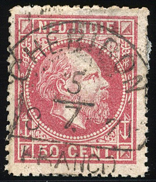 BANDJERMASIN op 50 cent nr. 15A. Prachtex. met grootste gedeelte van de afst. van 3-12-1871. Mogelijk slechts 3 ex. bekend op emissie 1870. V.500+