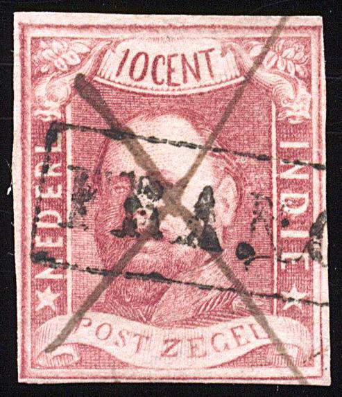 Penvernietiging. Met de pen een kruis over de zegel getrokken, tevens FRANCO op nr. 1 (prachtex.) (Image)