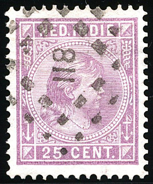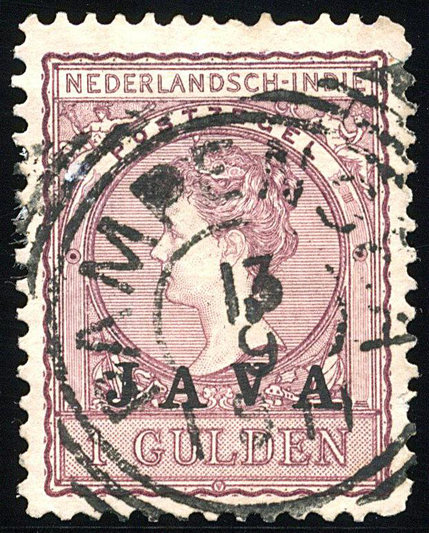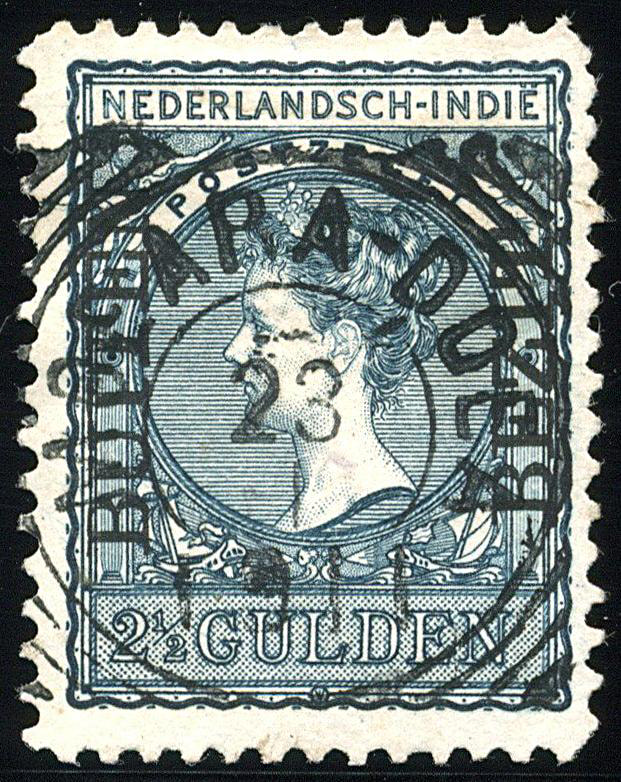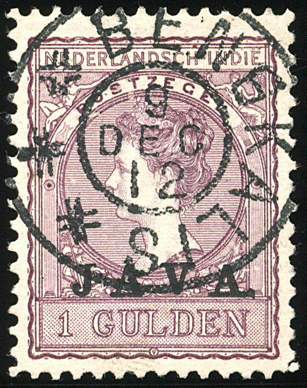 Grootrond BENGKALIS (op Sumatra) met kwartslag gedraaide datum op 1 gld Java. Luxe! (Image)