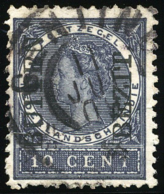 Grootrond GENTING met datum 11-7-1909 op 10 cent nr. 48. Prachtex. met sublieme afdruk van dit uiterst zeldzame stempel van het fungerend hulppostkantoor, waarvan ons maar twee afdrukken bekend zijn, waar dit de vroegste van is. Zie: